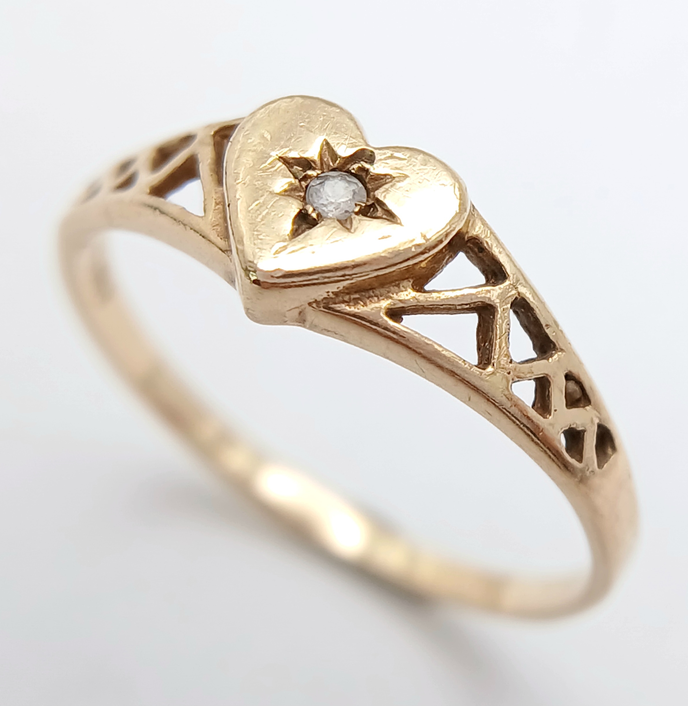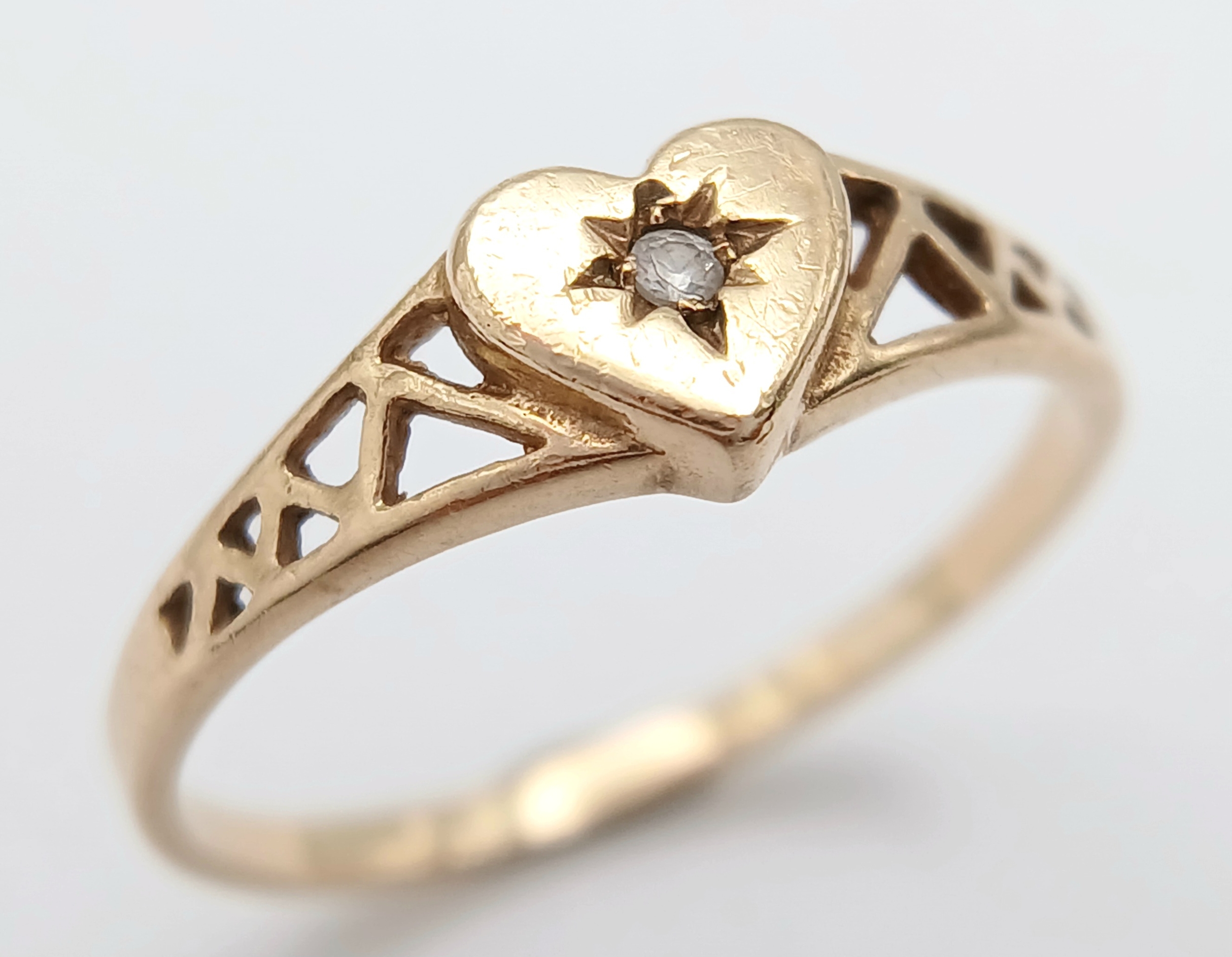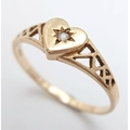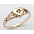 A 9K YELLOW GOLD DIAMOND SET HEART RING. TOTAL WEIGHT 1.2G, SIZE M. SC 9069