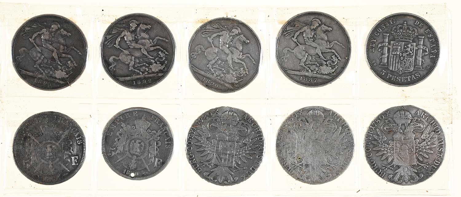 Silver Coins. United Kingdom and foreign, to include Crown 1887, 1890, 1892 and 1893 (10)