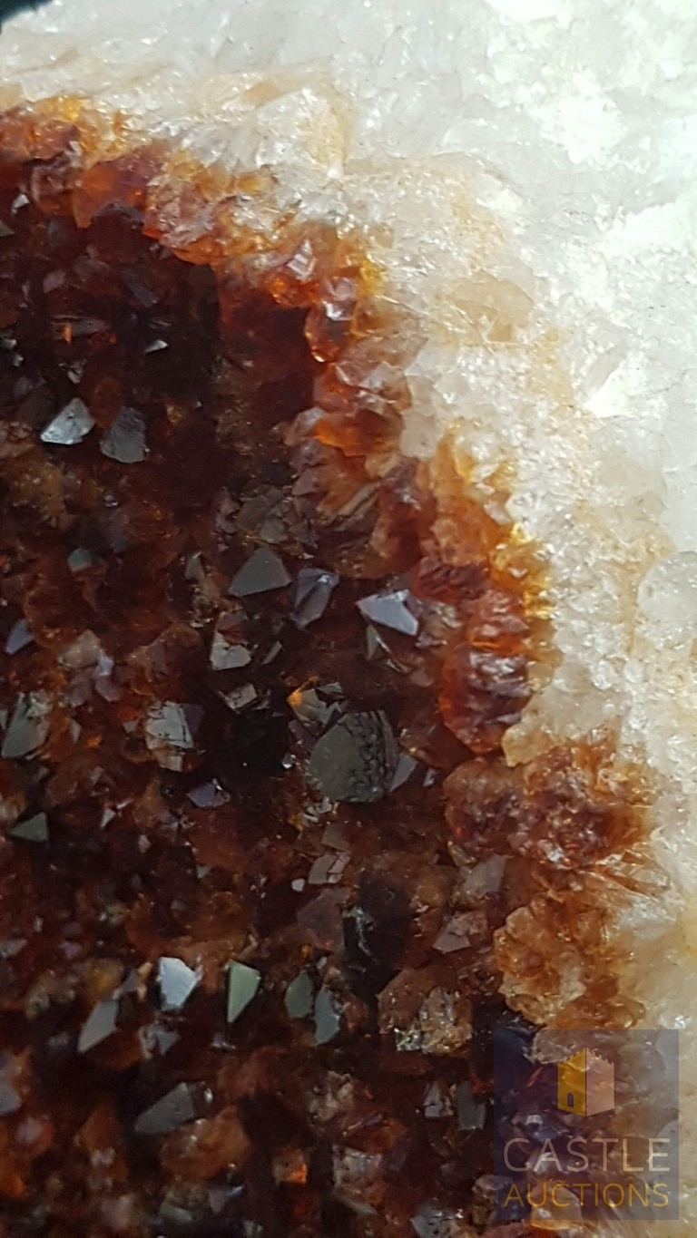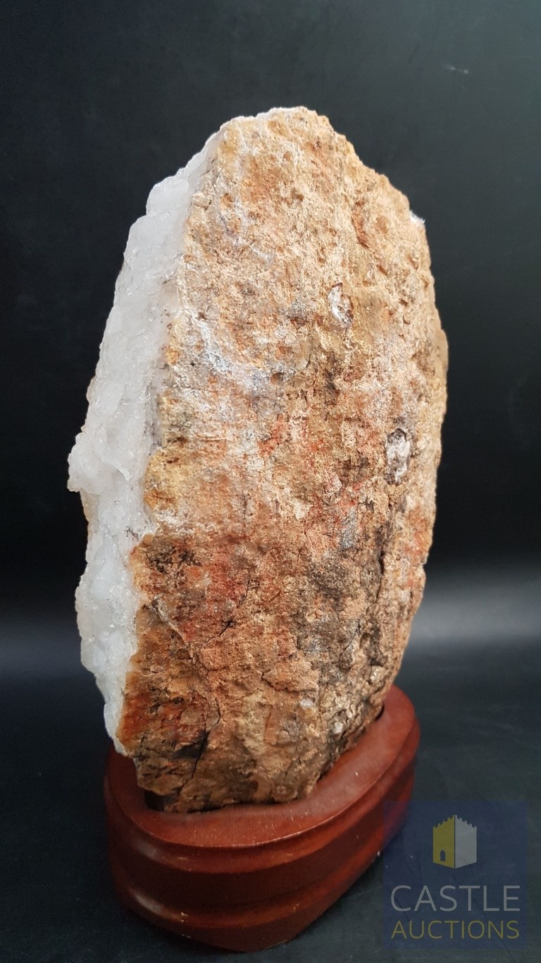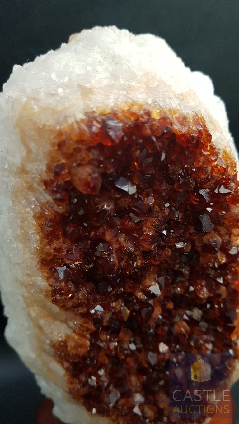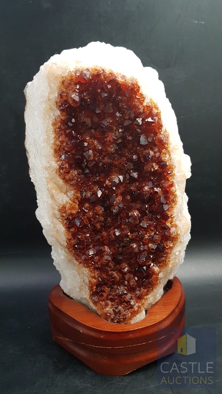 Rare Decorative Collectible Citrine Quartz Crystal on Wooden Base (Approx. 21.5cm x 11.5cm).