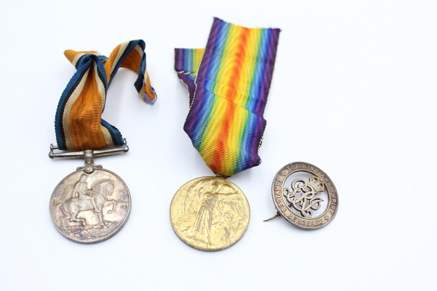 WW1 Medal Pair w/ Original Ribbons & .925 Sterling Silver War Badge