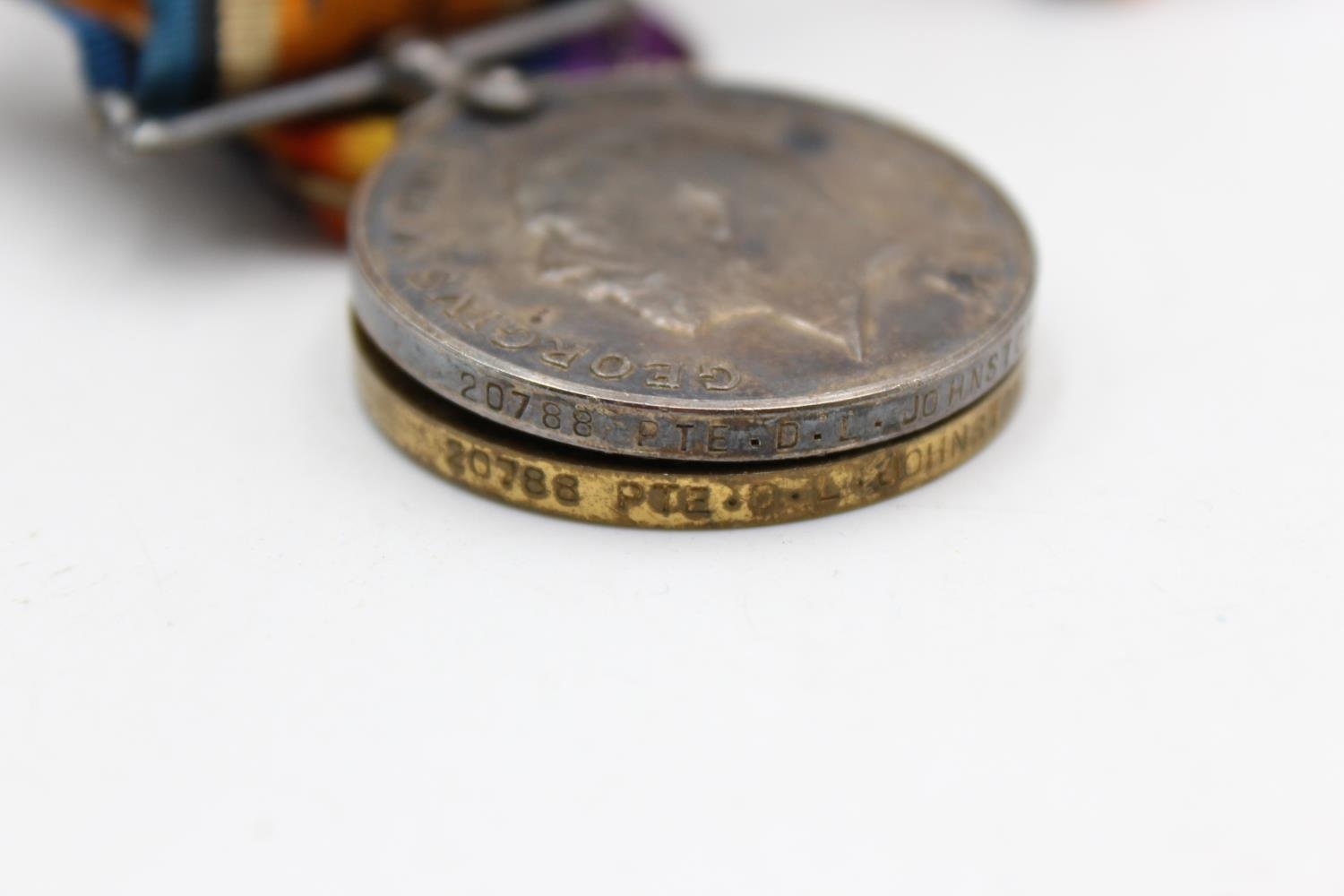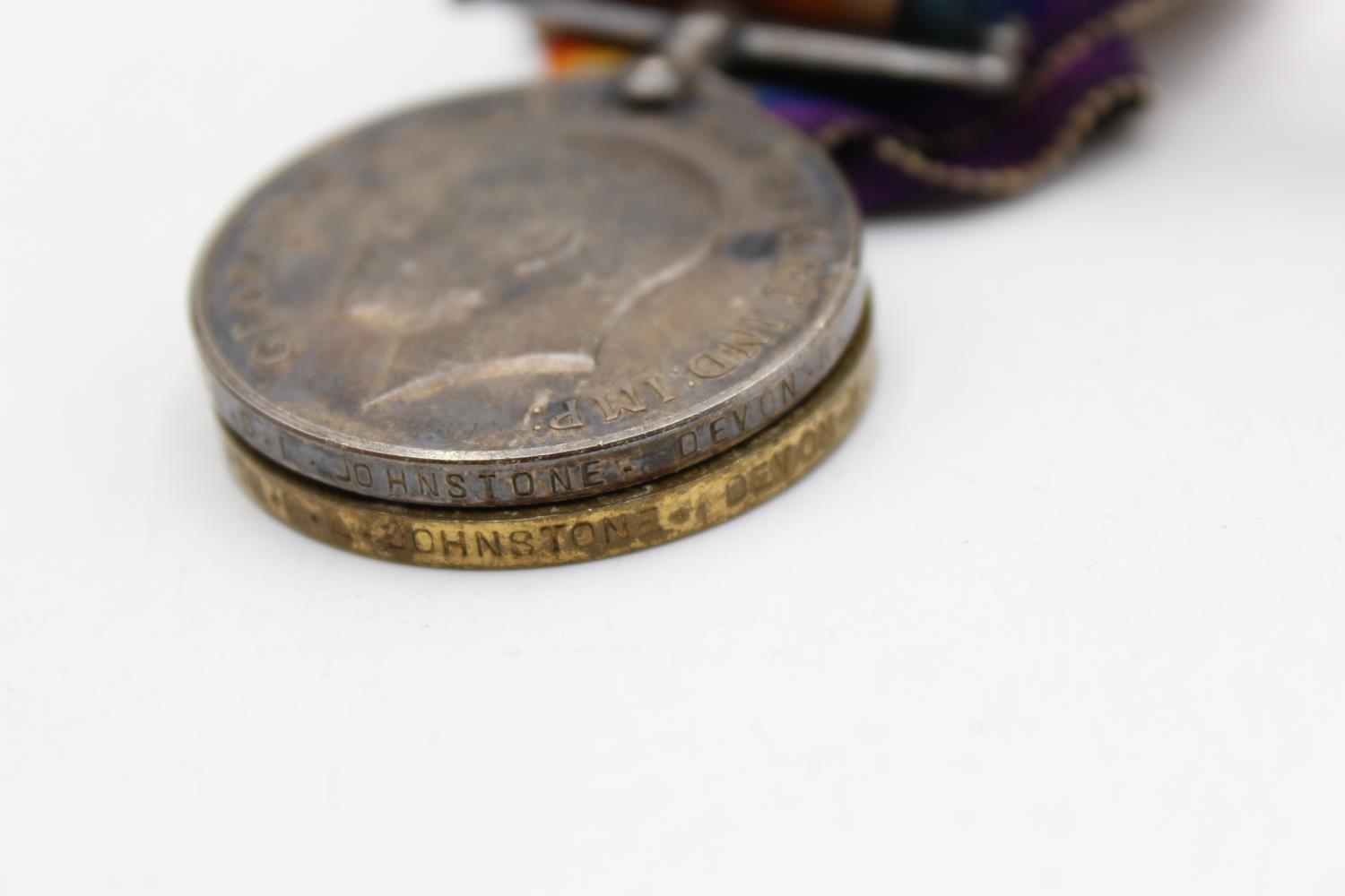 Inc Badge No.495421, Medals To 20788 Pte D.L Johnstone - Devon Regt In vintage condition Signs of use & age Please see photographs
