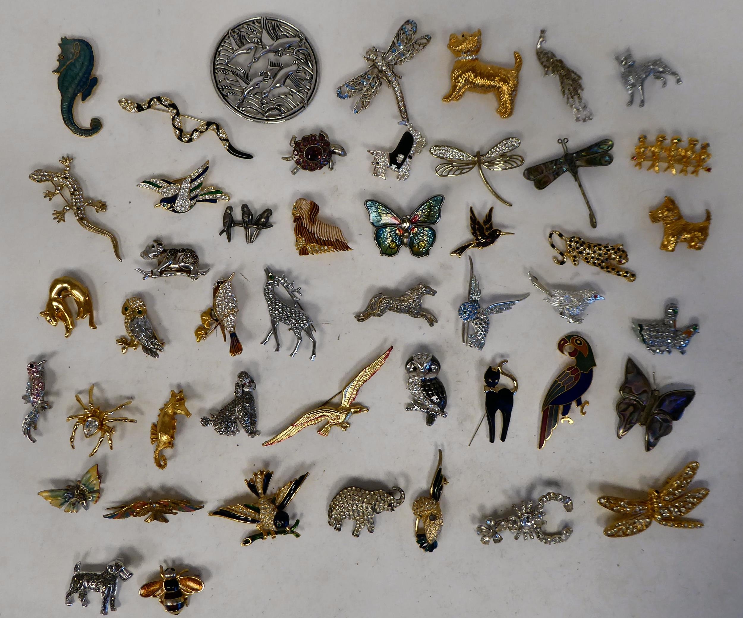 Jewellery: animal brooches, set with various coloured stones