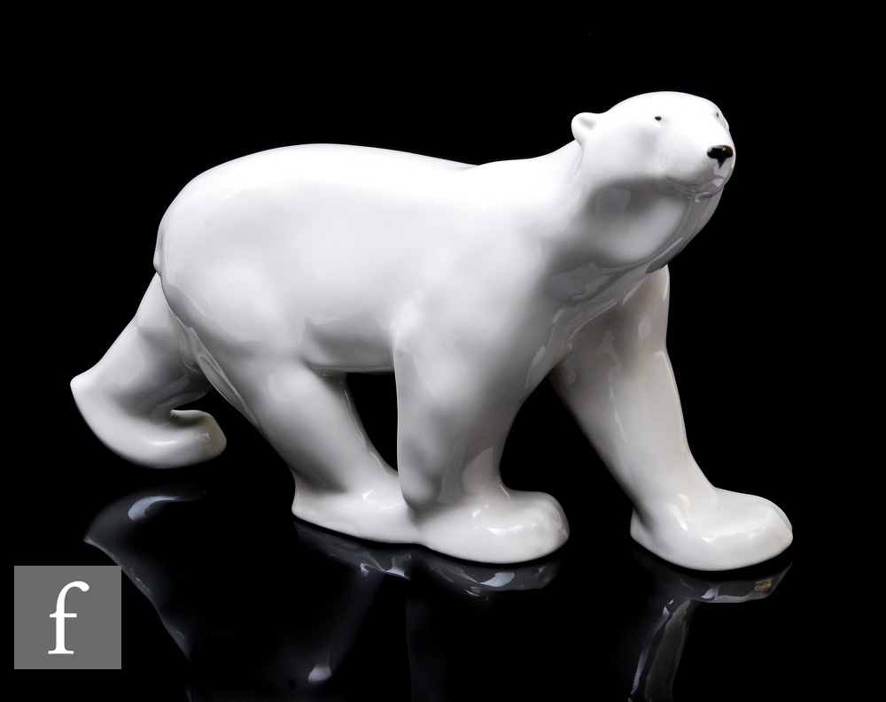 Lomonosov - A large post war USSR Russian ceramic figure of a walking polar bear, printed marks to the base, height 24cm.