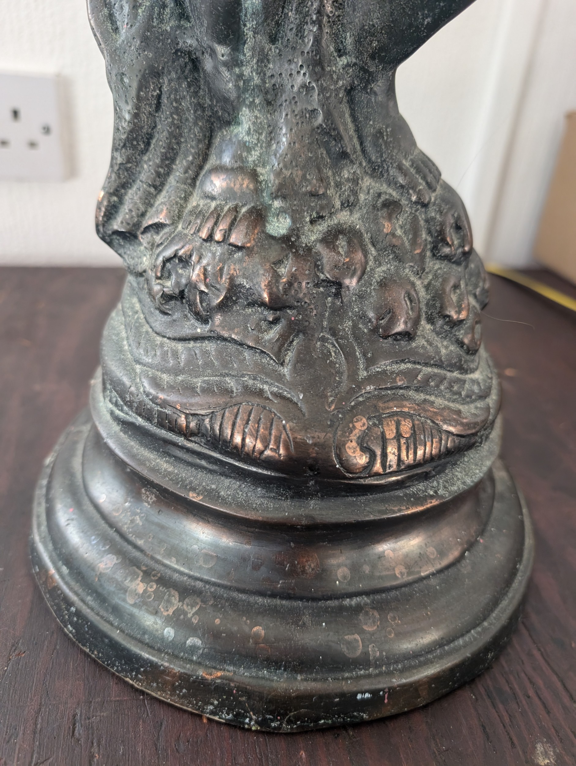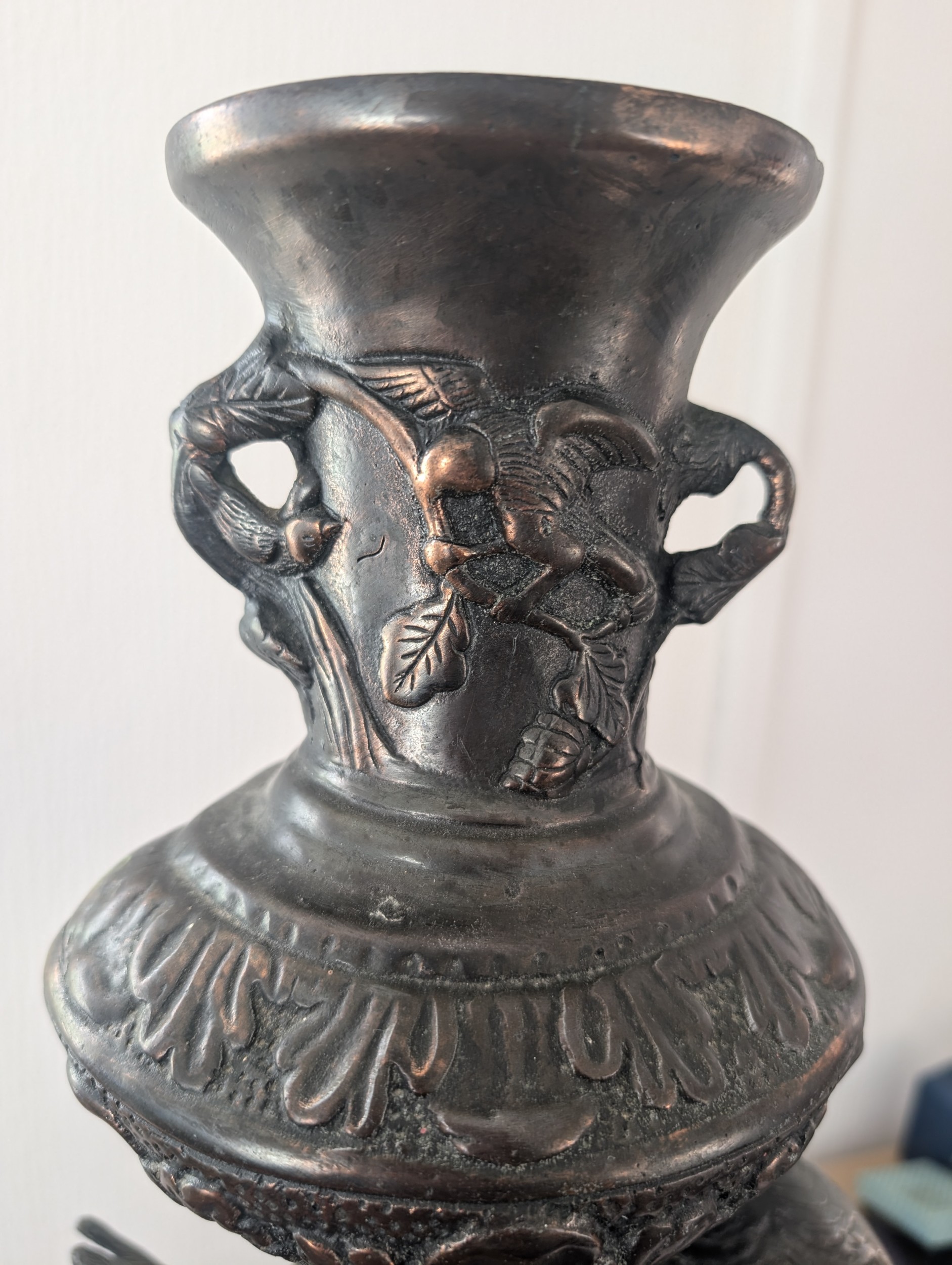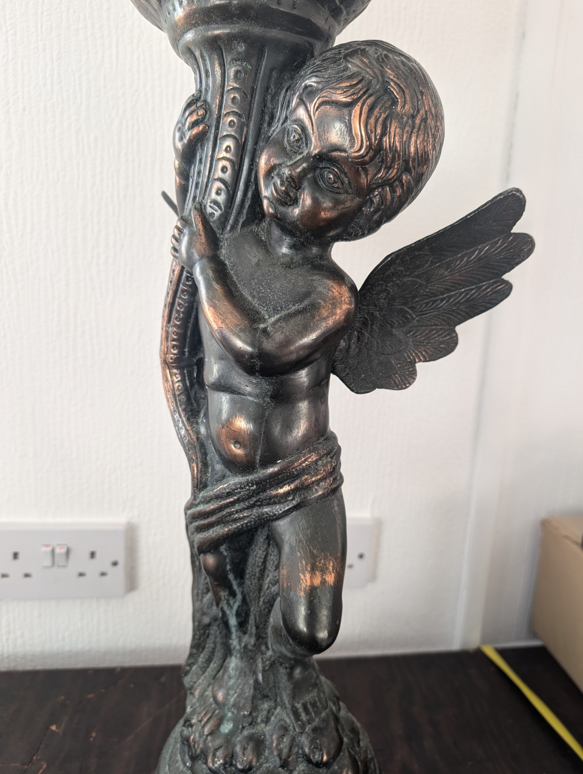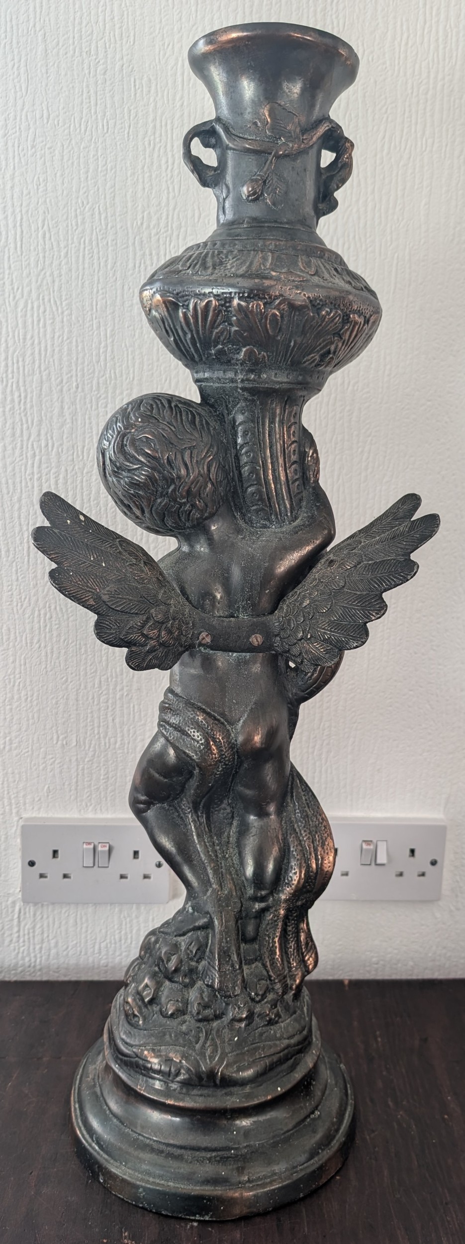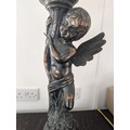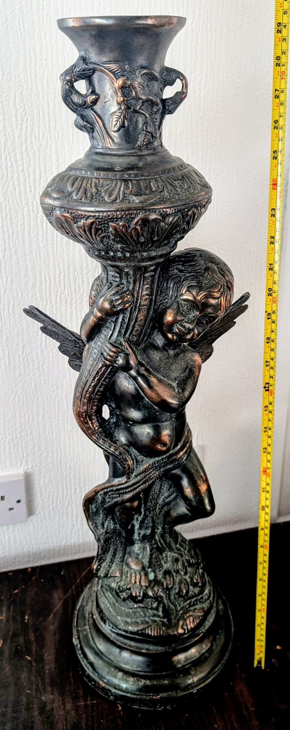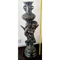 29.5" Substantial Neoclassical Style Bronze-Patinated Cast Metal Cherub Pedestal Vase