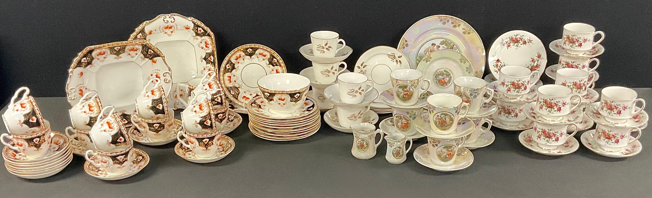 Table wares - A Royal Standard Minuet pattern 12 setting tea set, (missing one cup); Victorian golden wheat pattern part tea set, Warwick and Sons Edwardian tea set etc qty
