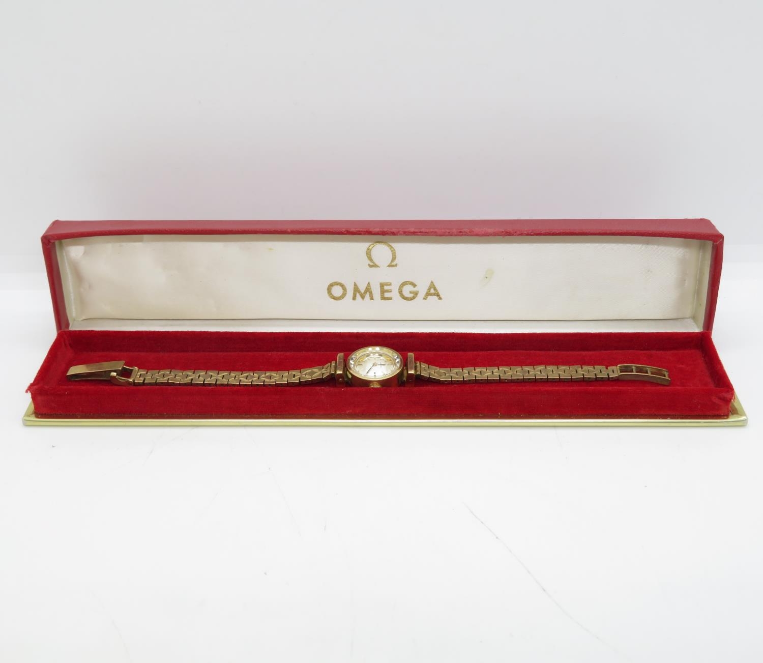 Boxed 14ct ladies Omega watch with 9ct bracelet working total weight 22.6g