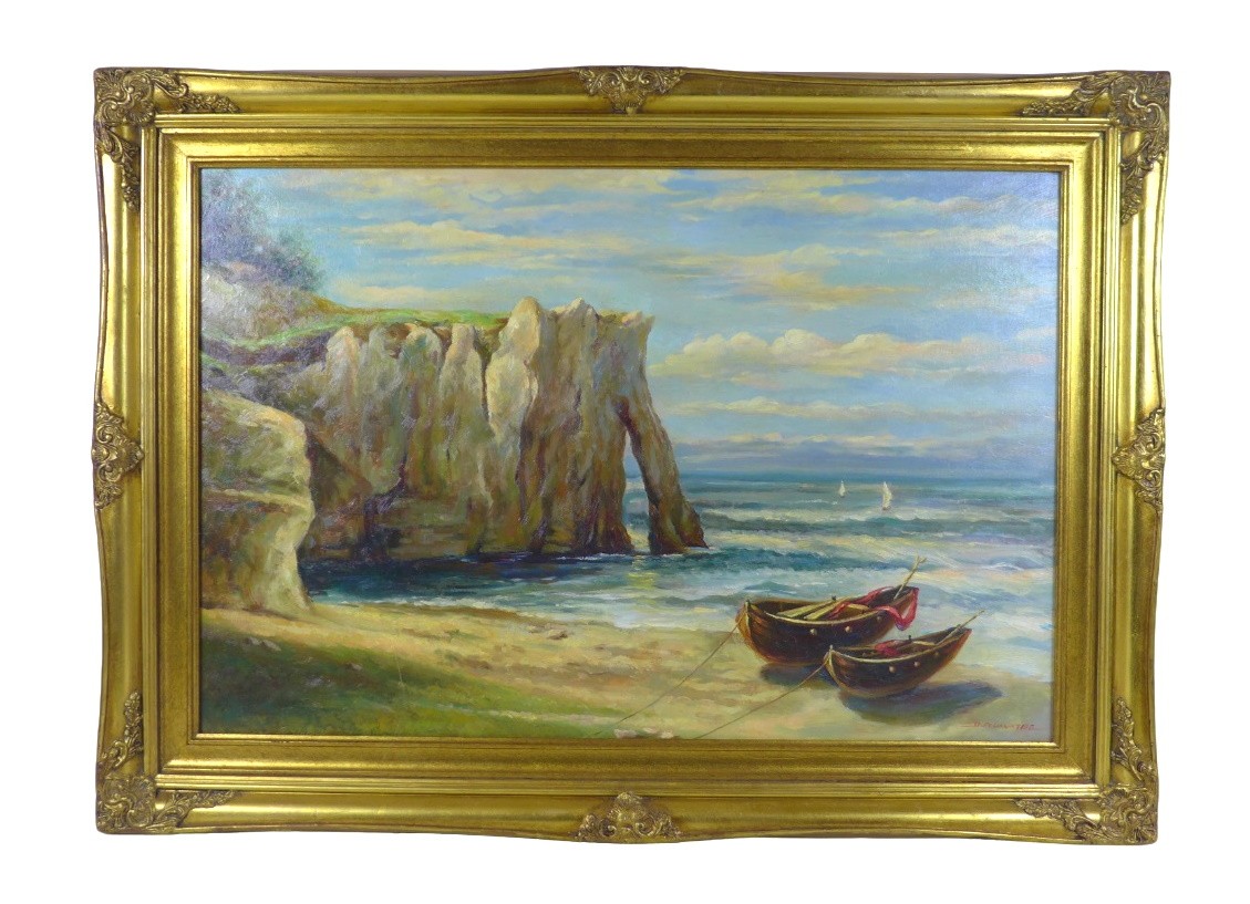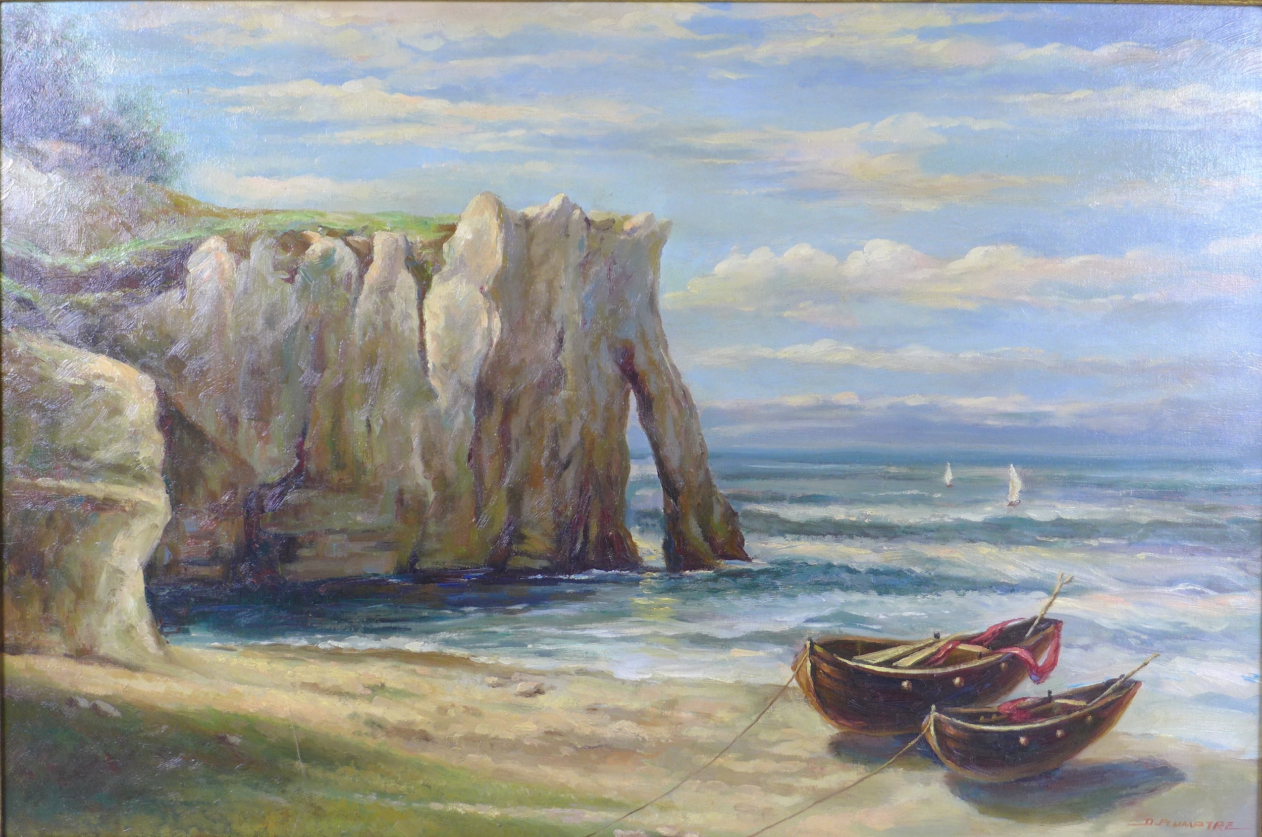 D. Plumptre (20th century): The Jurassic Coast, Dorset, oil on canvas, 60 by 90cm, gilt framed, 79.5 by 110cm.