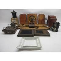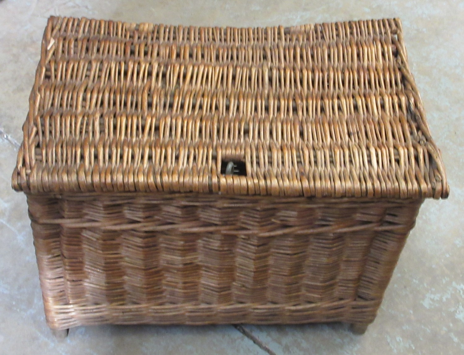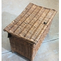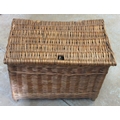 Large vintage rectangular fishing basket, with hinged top and carry strap, W57cm D39cm H43cm