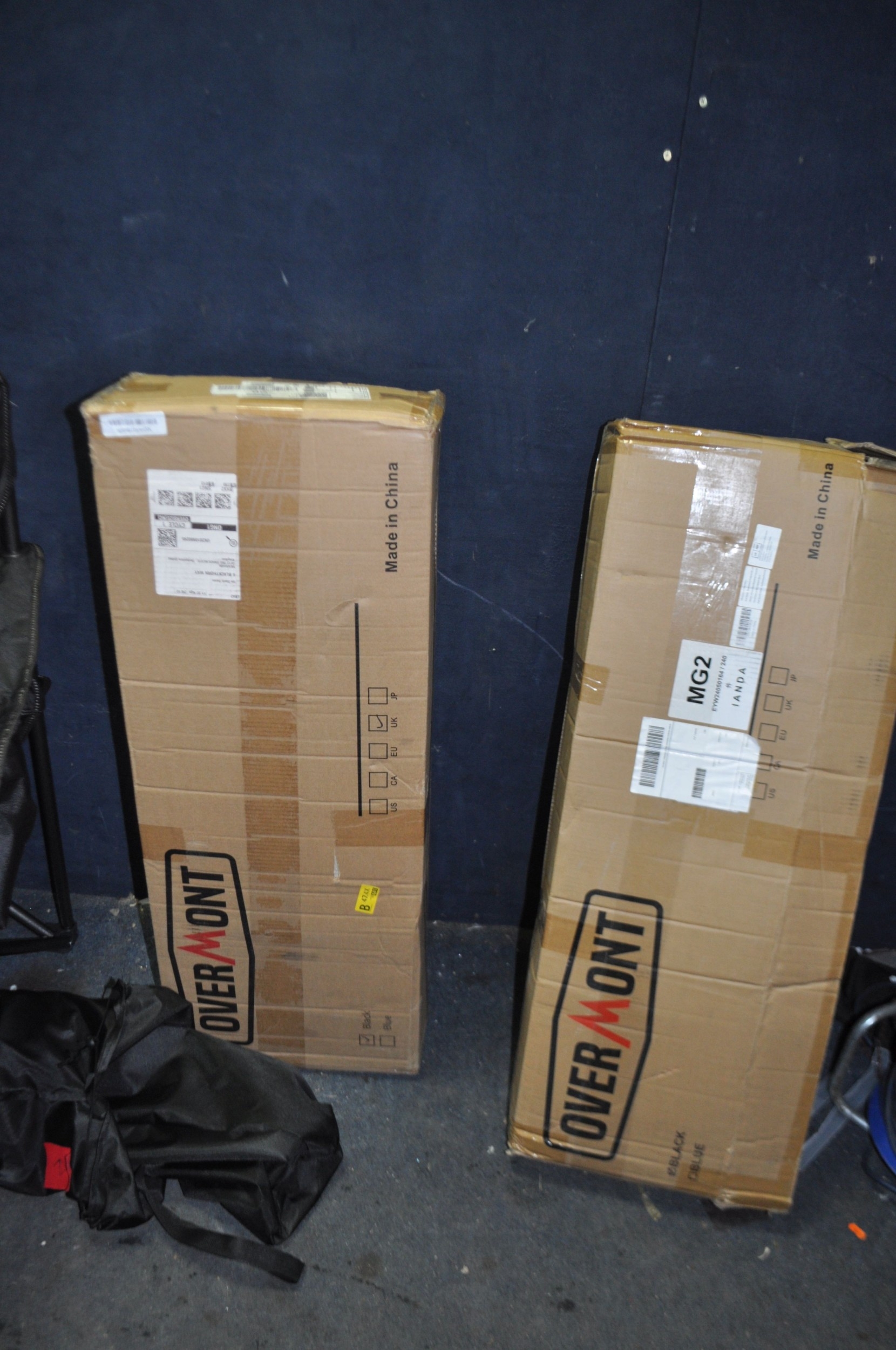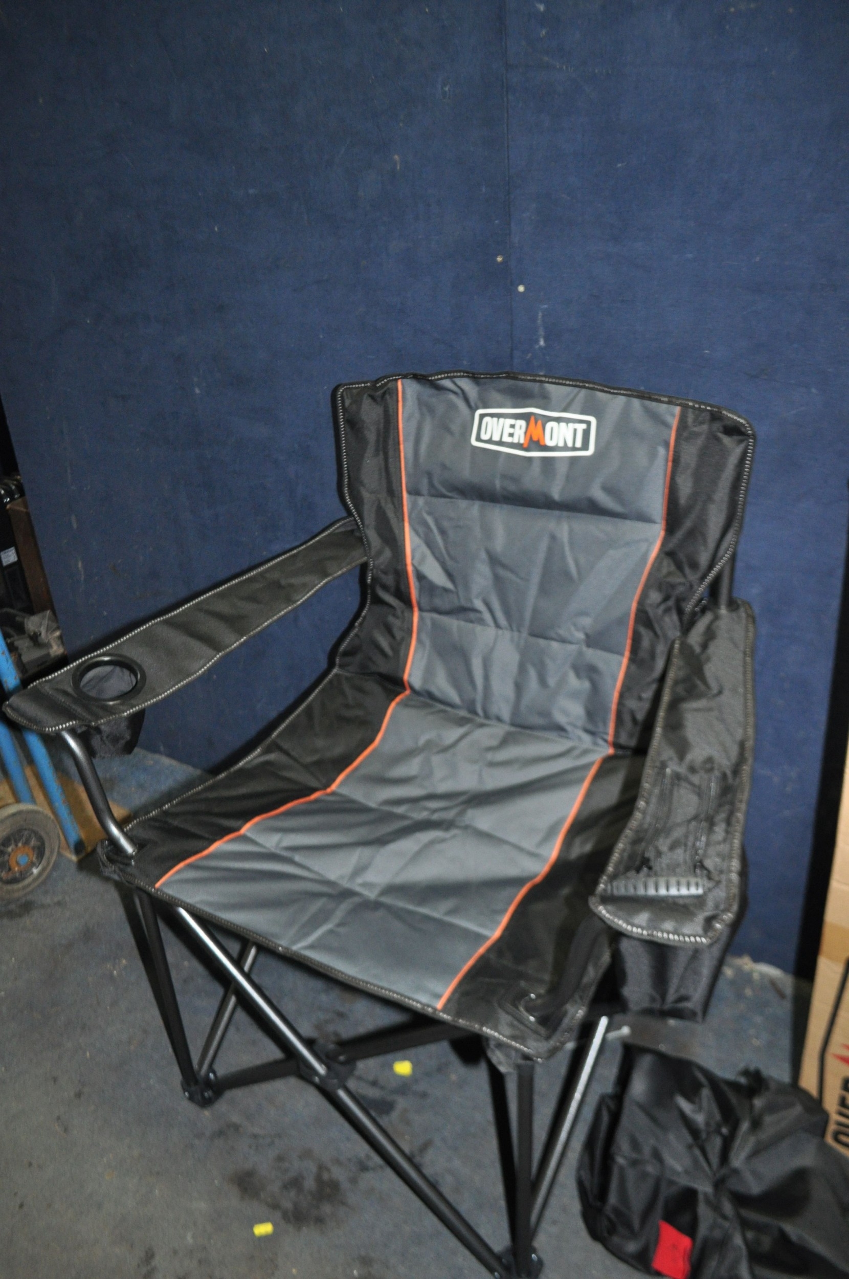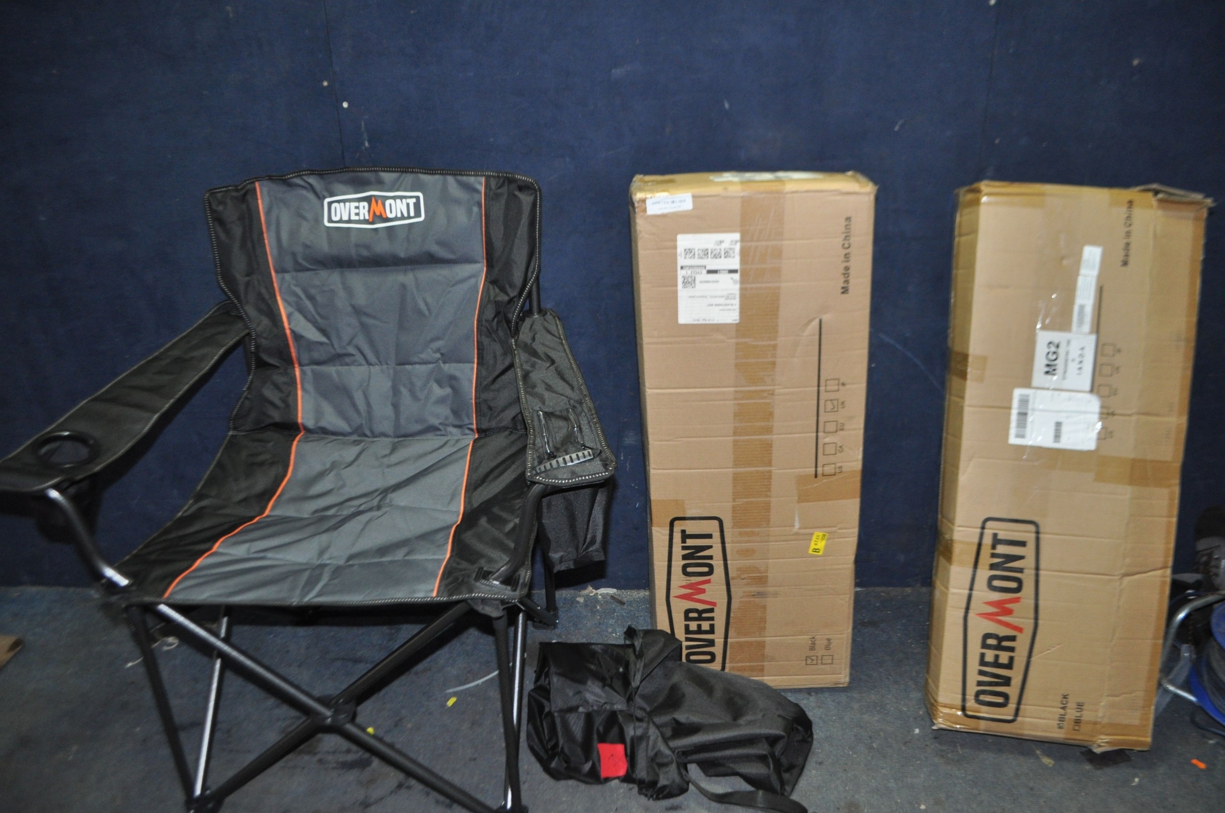 TWO BOXES OF TWO OVER MOUNT FOLDING CAMPING CHAIRS (one chair removed from packaging for photographic purposes)