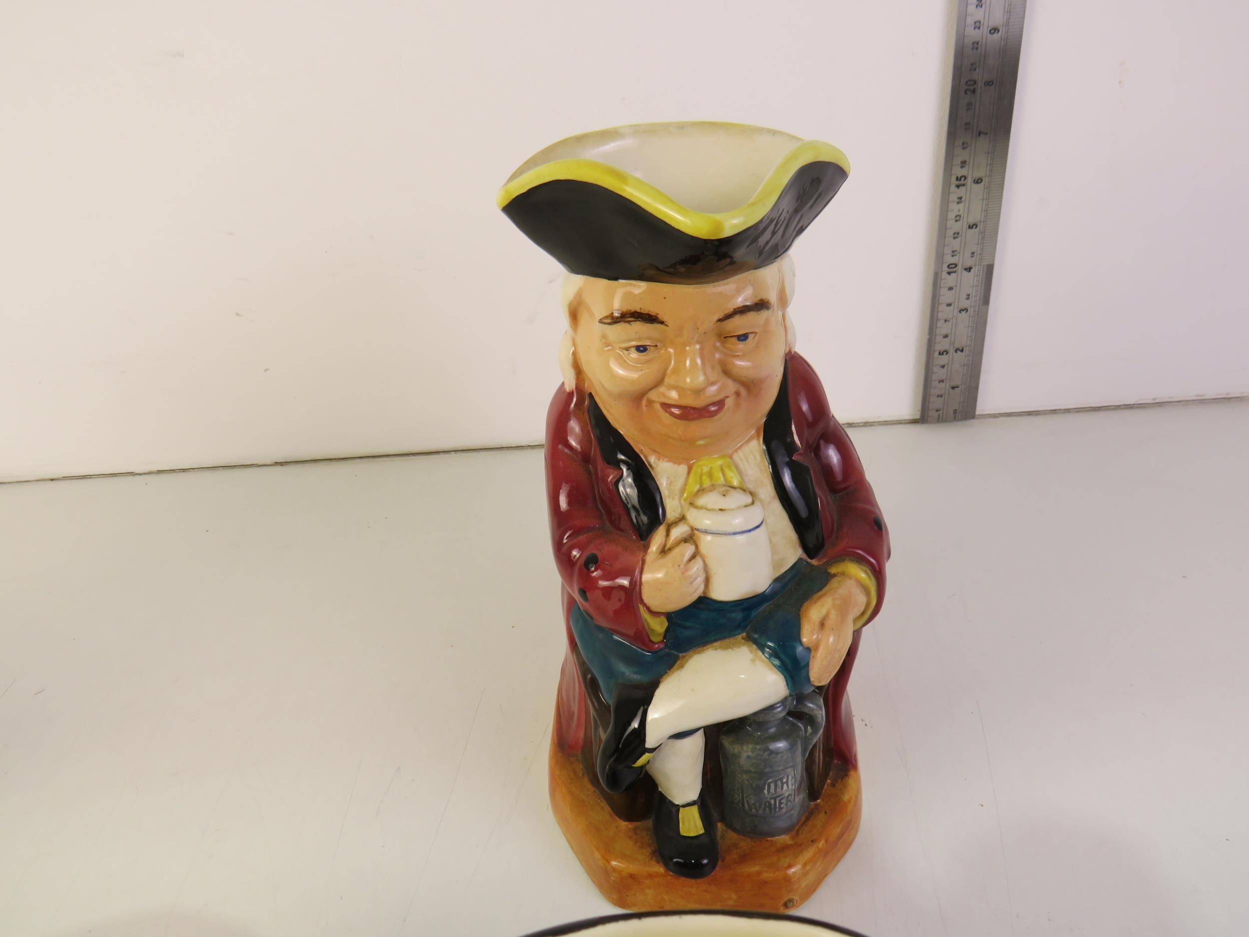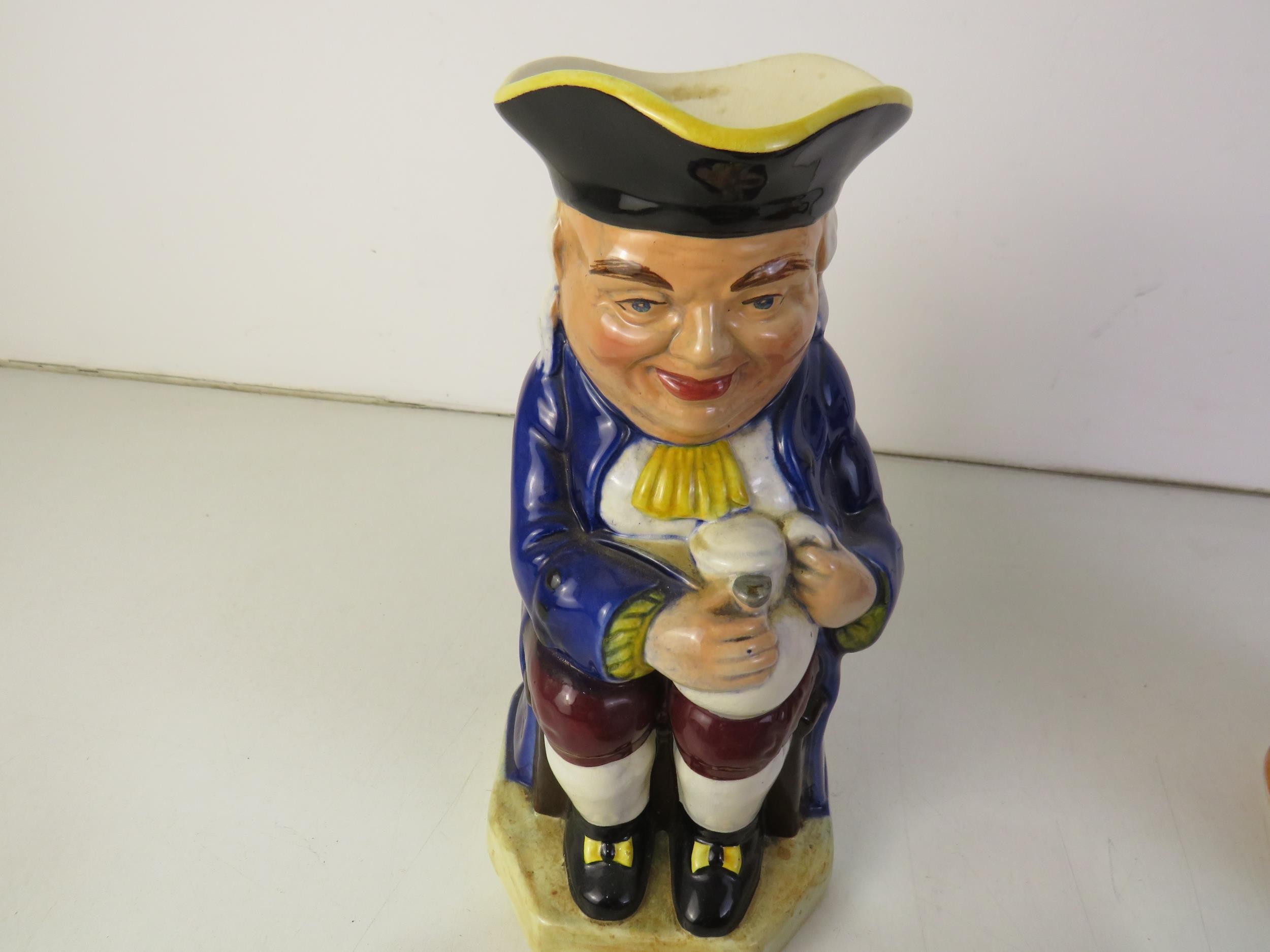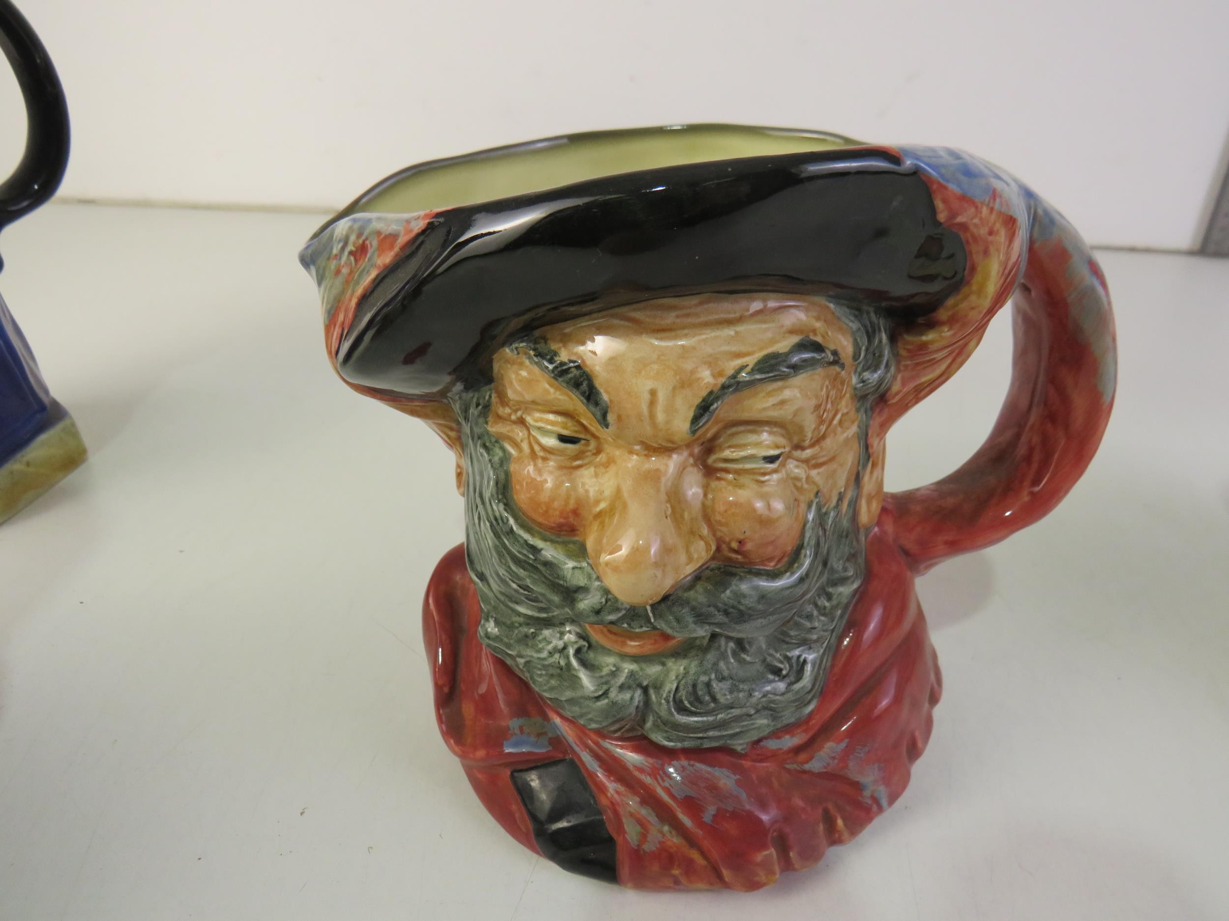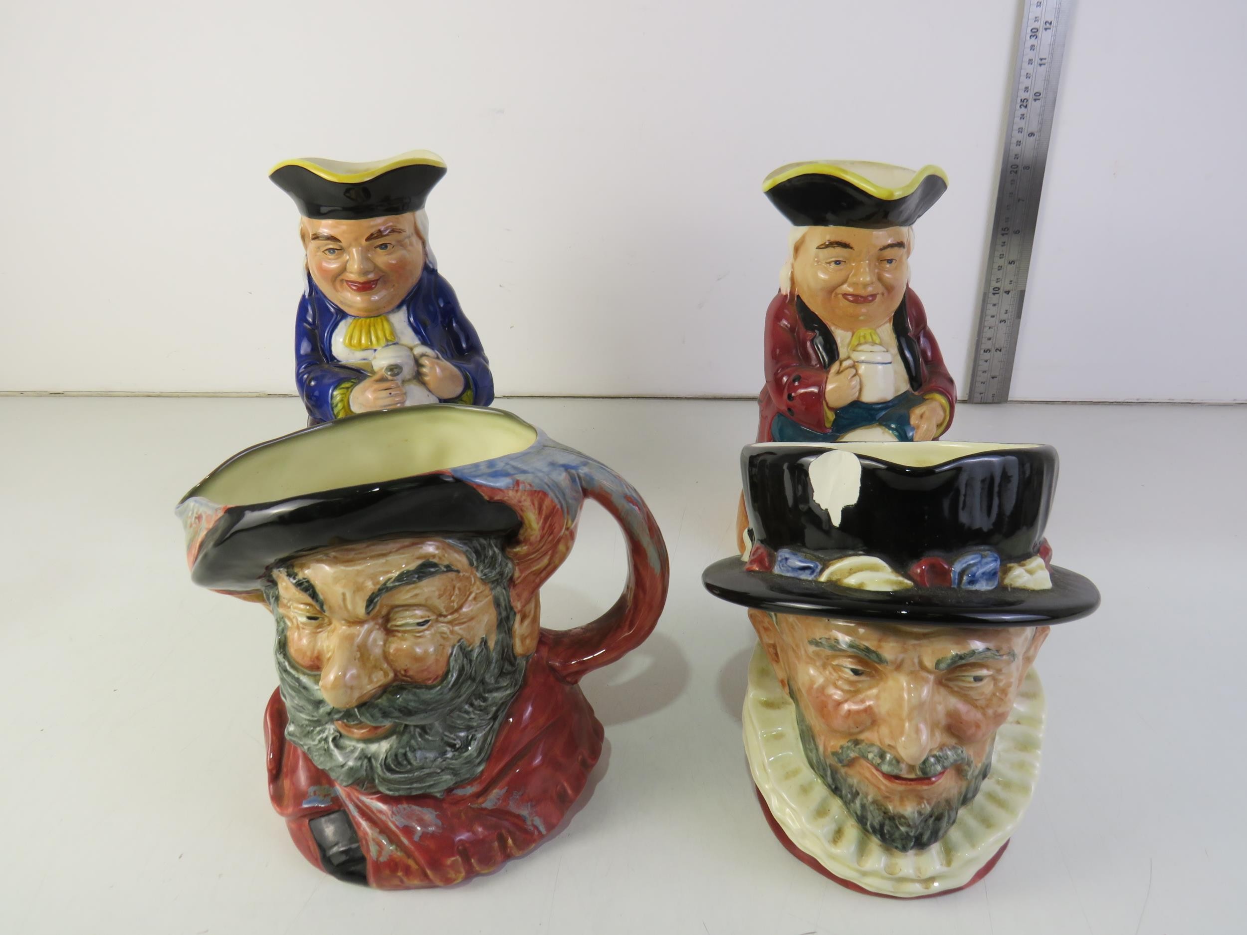 Four toby jugs including two Burlington ware and Royal Doulton Beefeaters and Falstaff