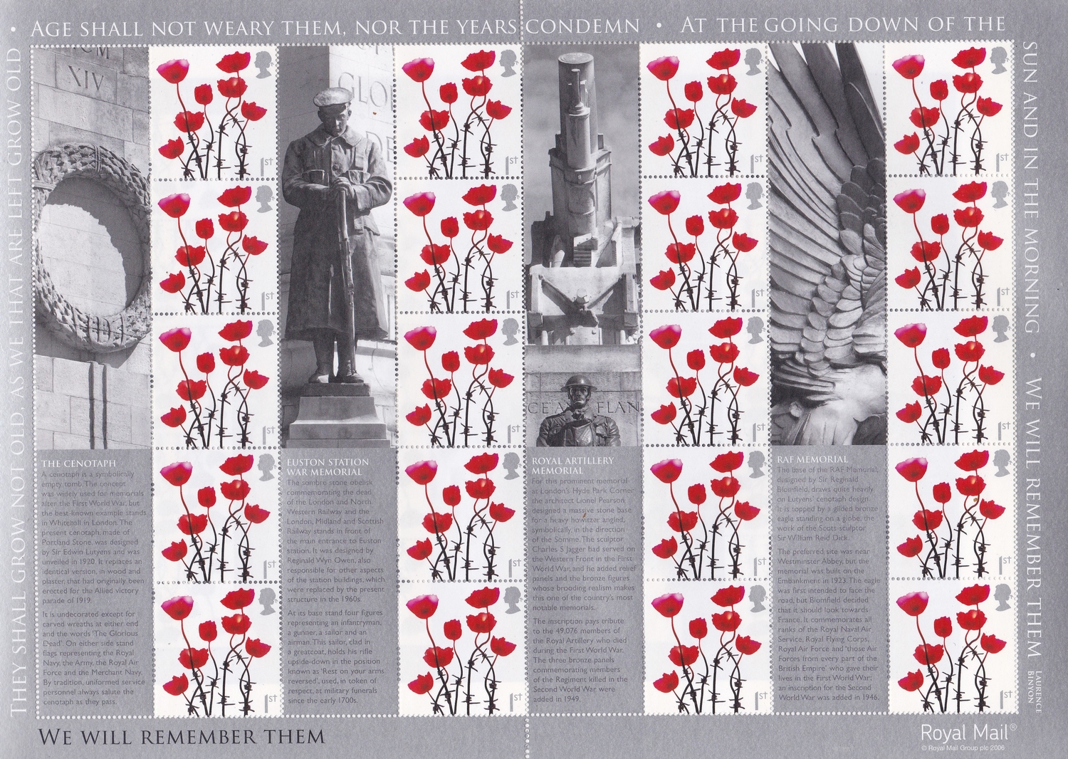 Great Britain 2006 We will Remember them 'Poppies' Royal Mail Smilers Sheet