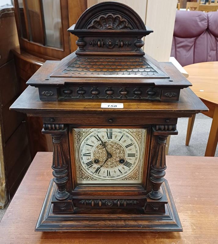 JUNGHANS MAHOGANY MANTLE CLOCK WITH ENAMEL DIAL, SIGNED TO DIAL & WORKS