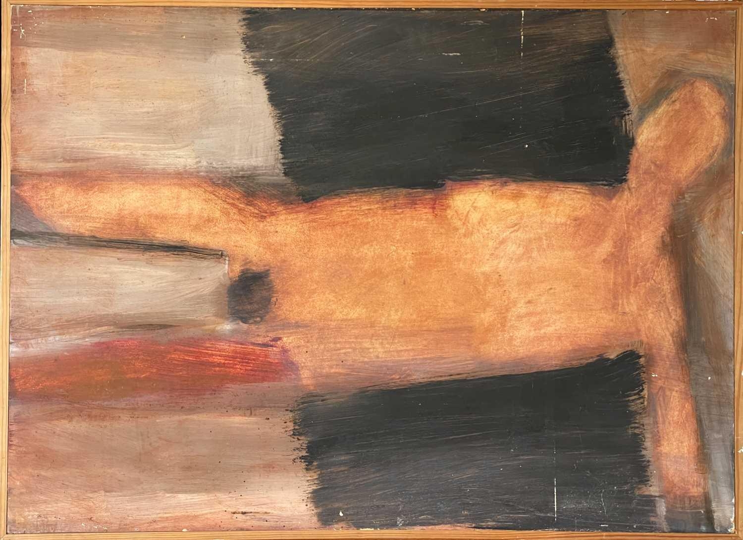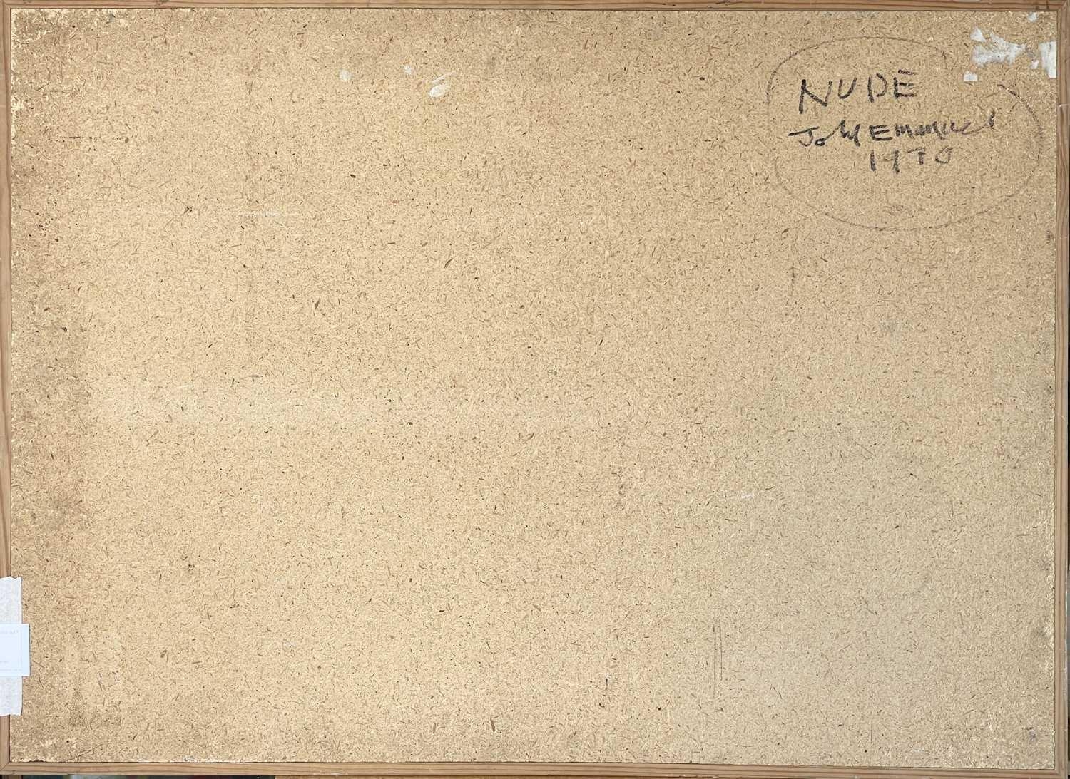 John EMANUEL (1930) Nude (1970) Oil on board, signed, inscribed and dated 1970 to verso, 80 x 110cm. Frame size 83 x 114cm.