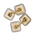 A pair of 18ct gold blue chalcedony cabochon cufflinks, with square-shape sapphire central highlight inset, French assay marks, length of cufflink face 1.1cm, 6.1g