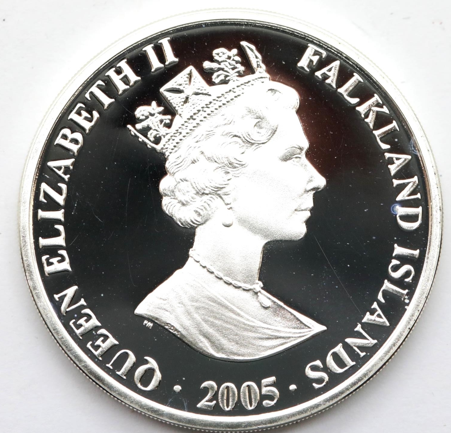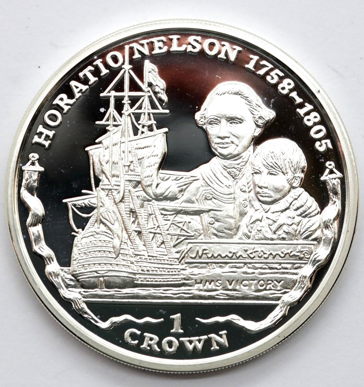 2005 Falkland Islands sterling silver Horatio Nelson one crown coin. P&P Group 1 (£14+VAT for the first lot and £1+VAT for subsequent lots)