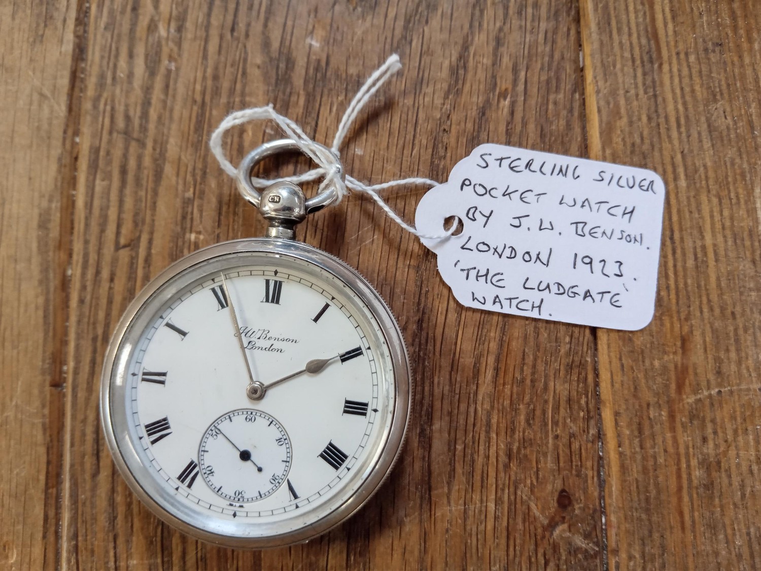 Sterling silver pocket watch by J.W Benson , london 1923 'The Ludgate Watch'