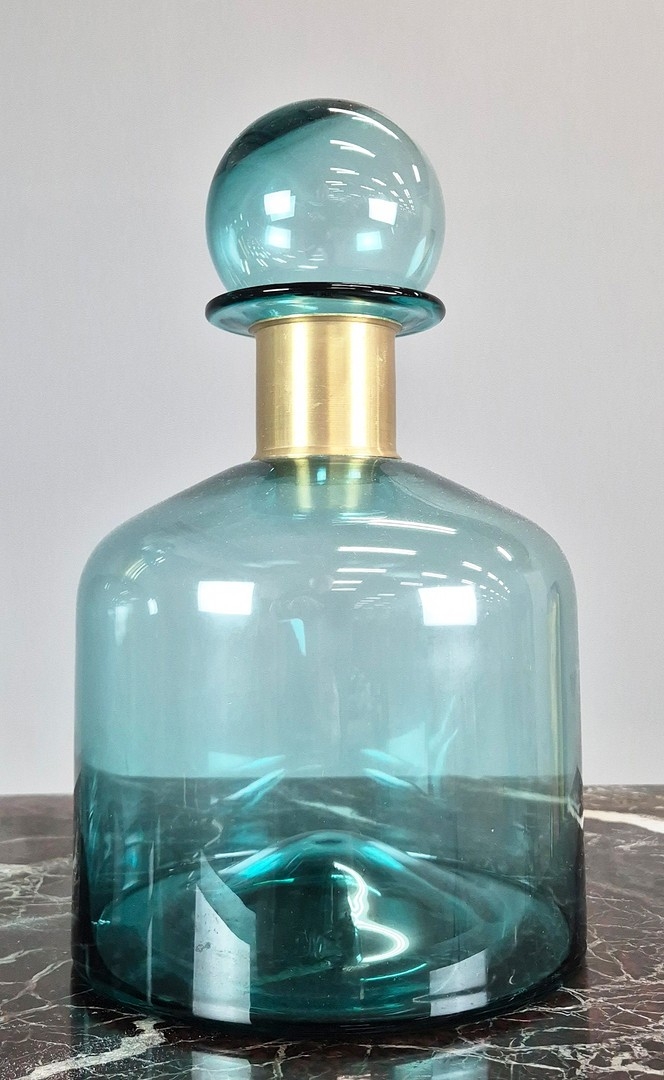 PAIR OF TURQUOISE GLASS CHEMIST BOTTLES. 36cm H x 25cm W.
