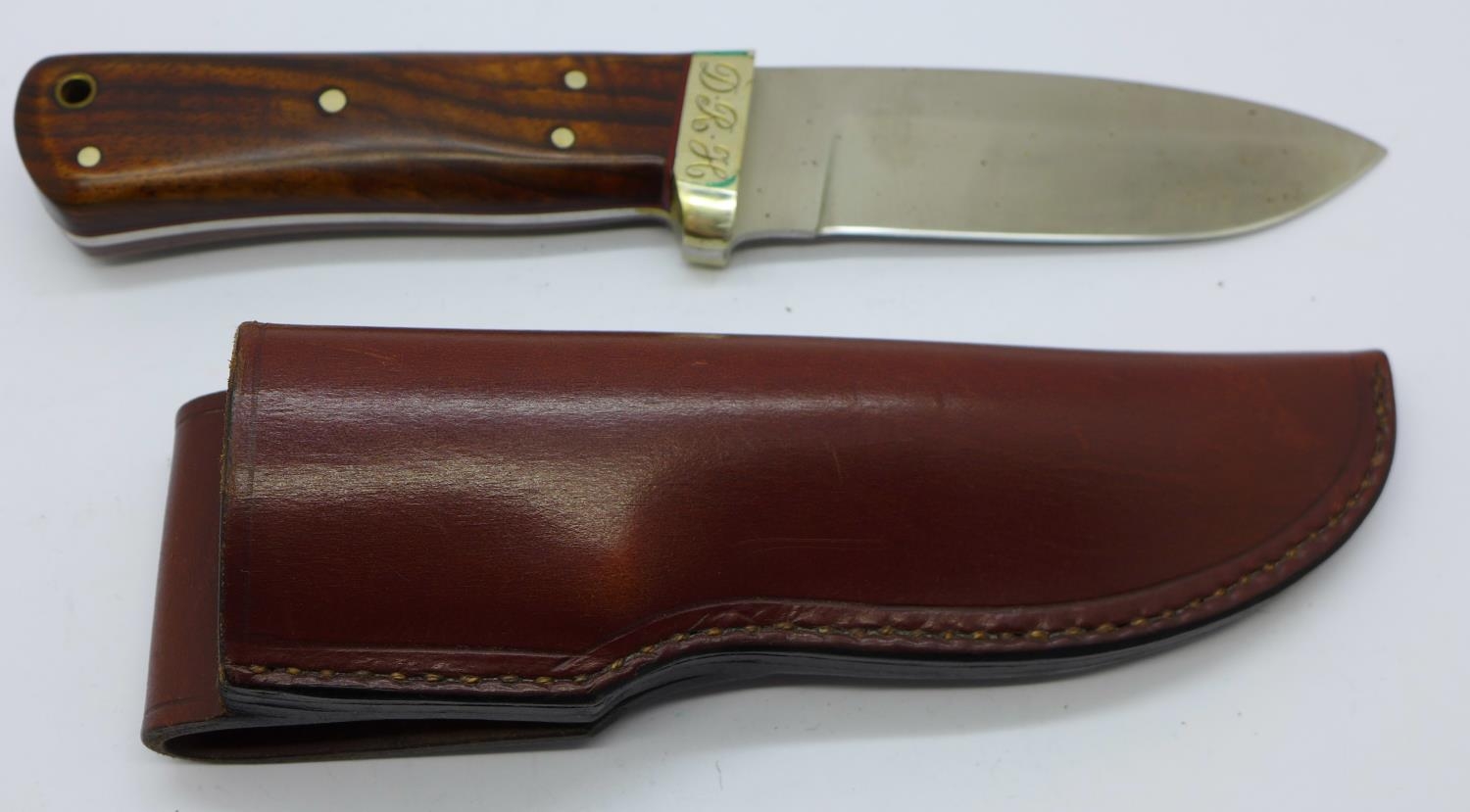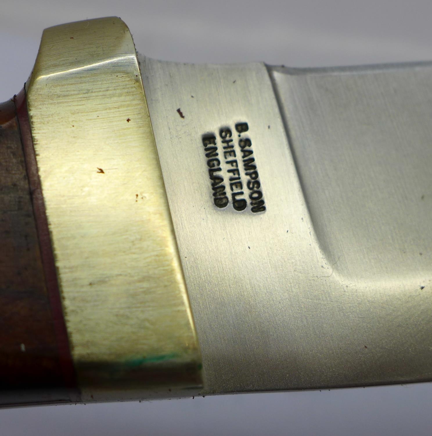 A B. Sampson of Sheffield hunting knife, with leather scabbard