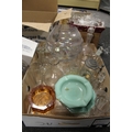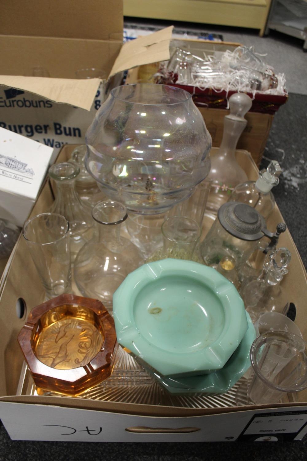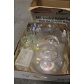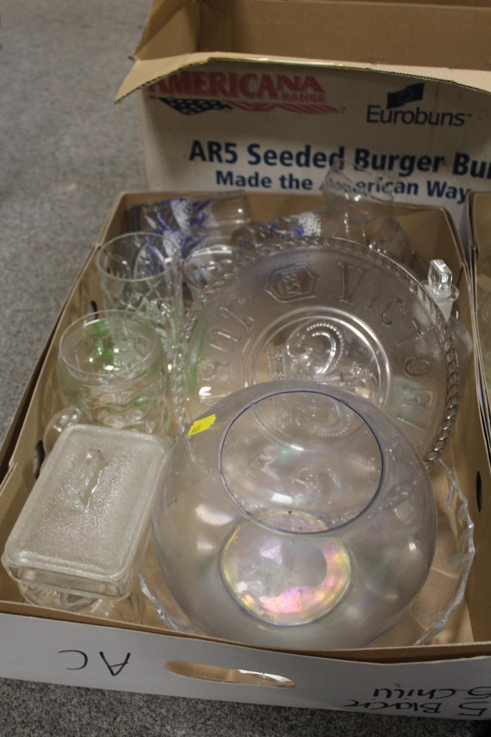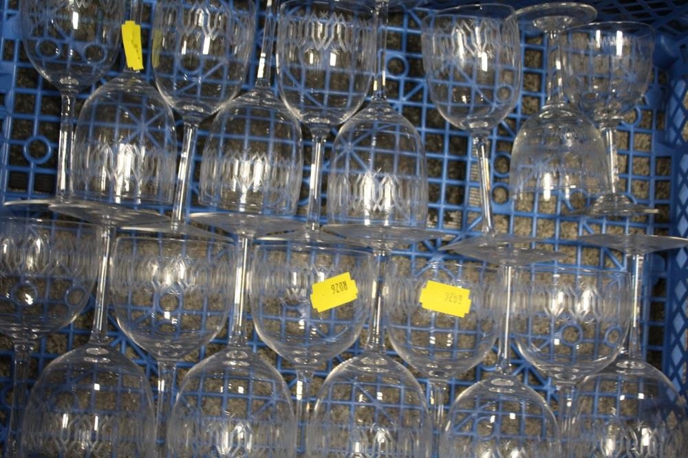 A LARGE QUANTITY OF ASSORTED DRINKING GLASSES ETC., to include a pewter tolled etched glass tankard, hand painted examples etc. (8 boxes in total)