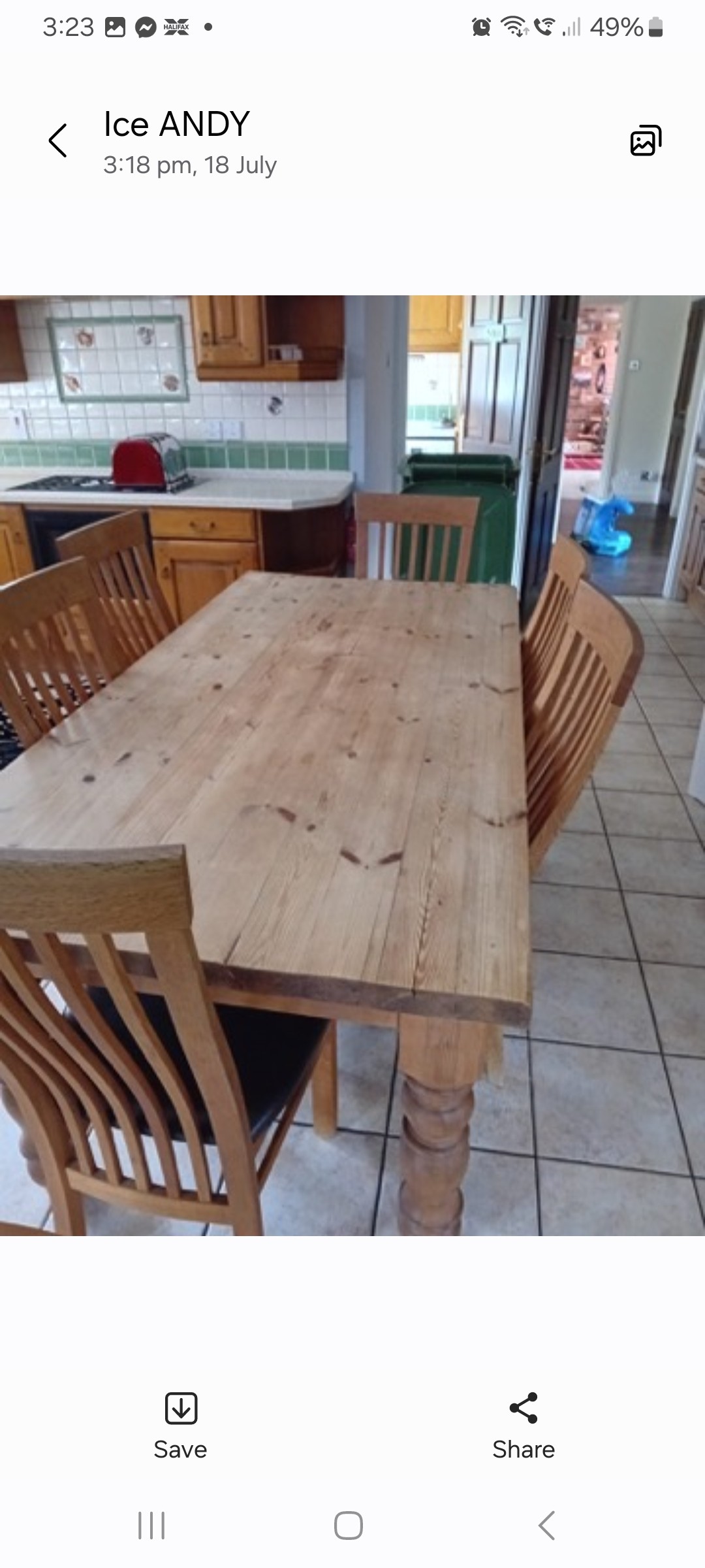 pine farm house table with 6 chairs