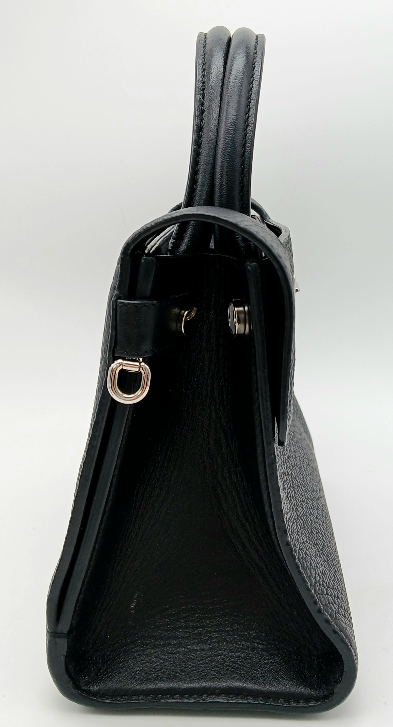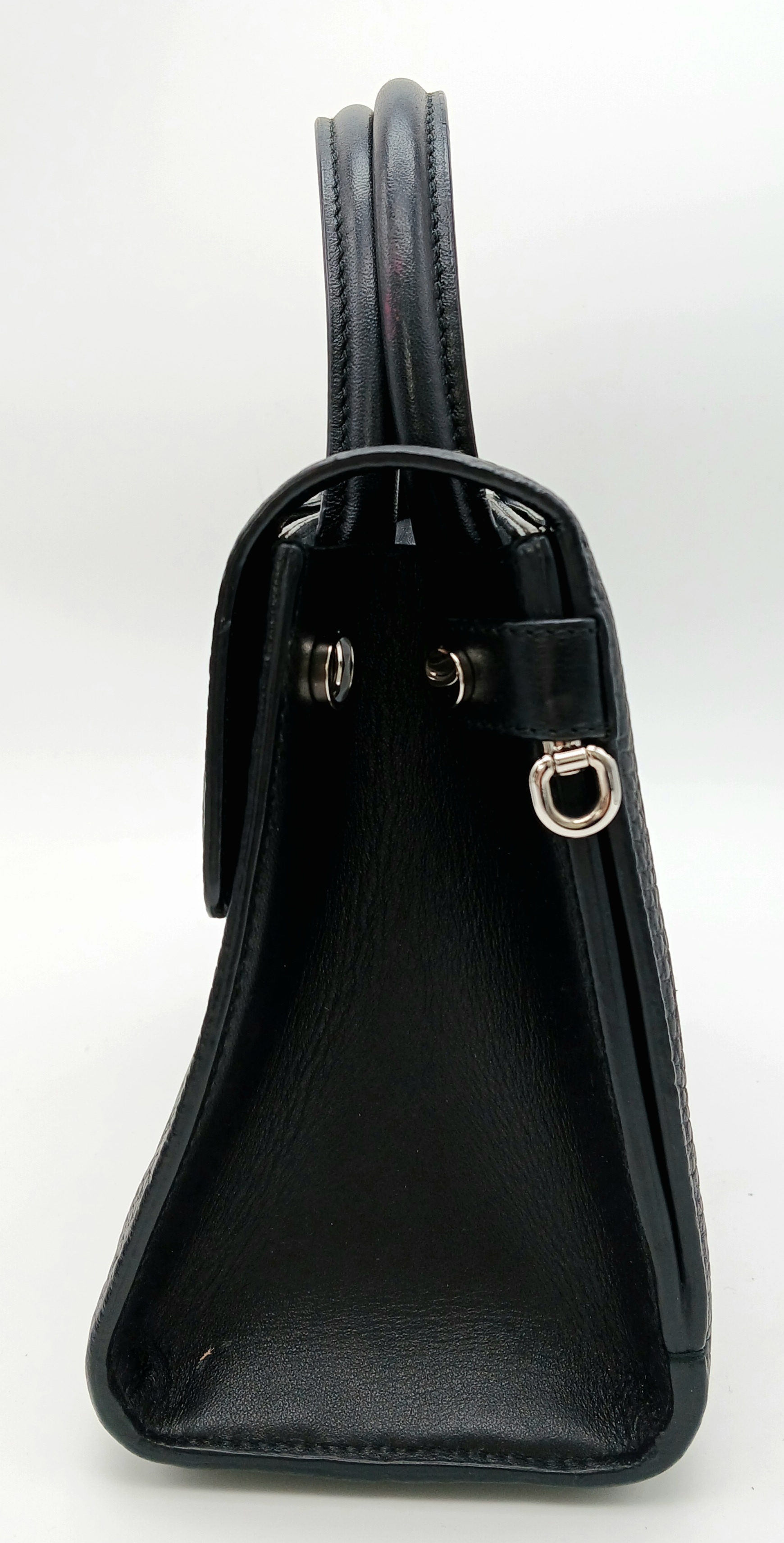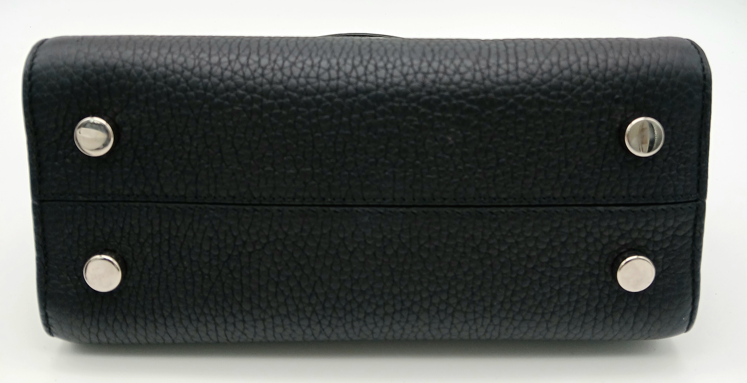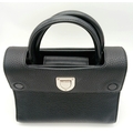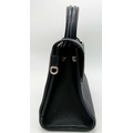 A Christian Dior Black Diorever Handbag. Leather exterior with silver-toned hardware, two rolled leather handles, four protective base studs, press stud closure expandable wings, and magnetic and push clasp closure. Black leather interior with two open side pockets. Approximately 21cm length x 15cm height. A few light stains to exterior, some signs of wear and light stains to interior - please see photos for conditions or request a condition report. Ref: 22969