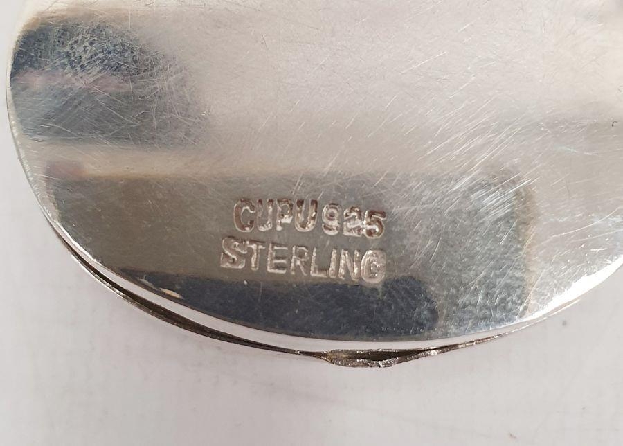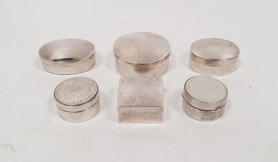 Six various silver trinket boxes marked 'silver', 'sterling' or '925' and a 1939 two shilling coin (7)