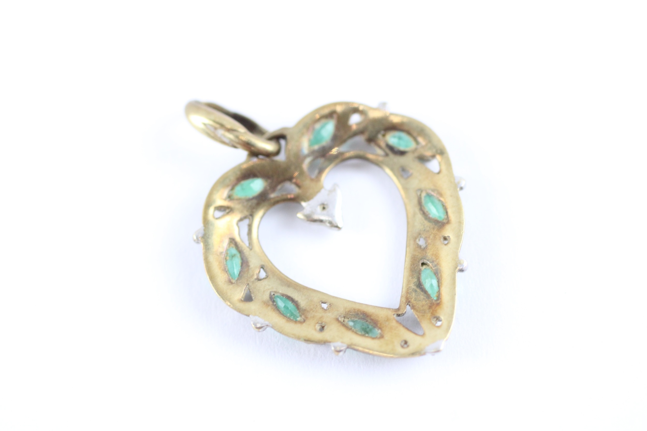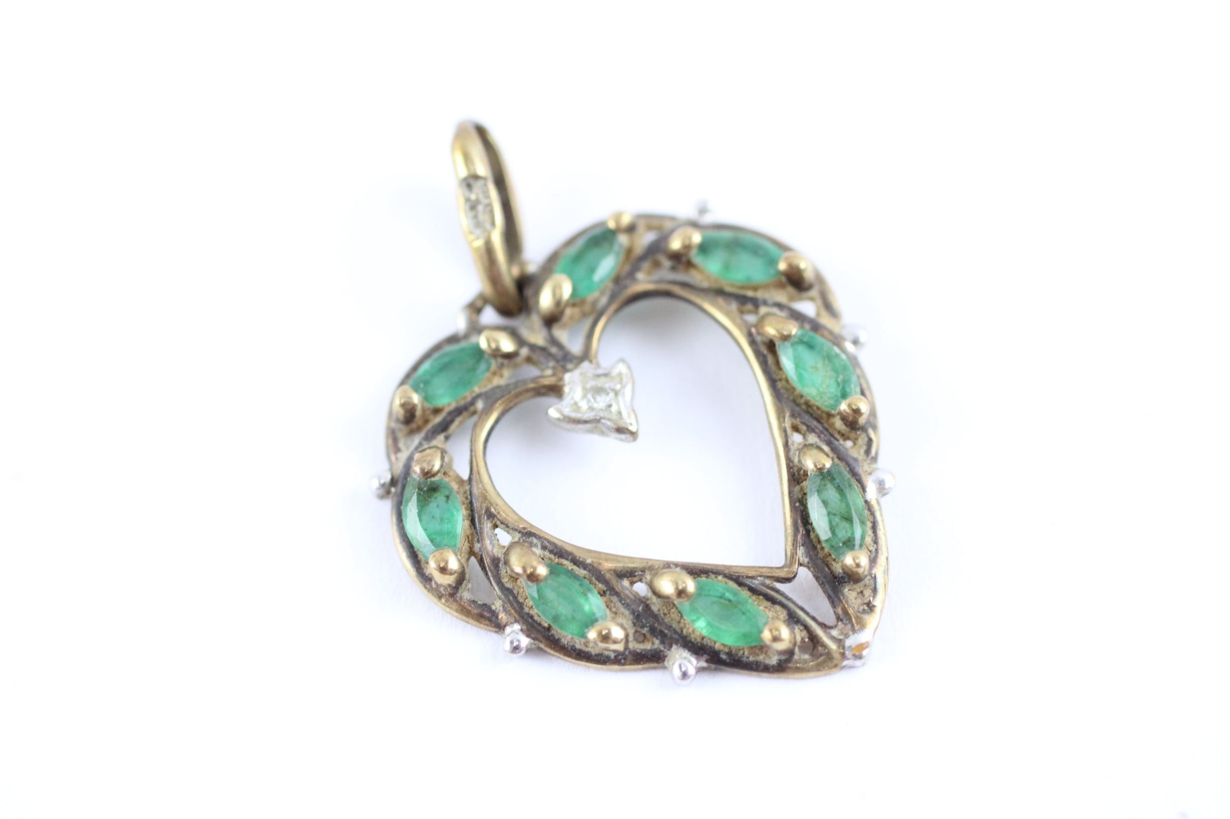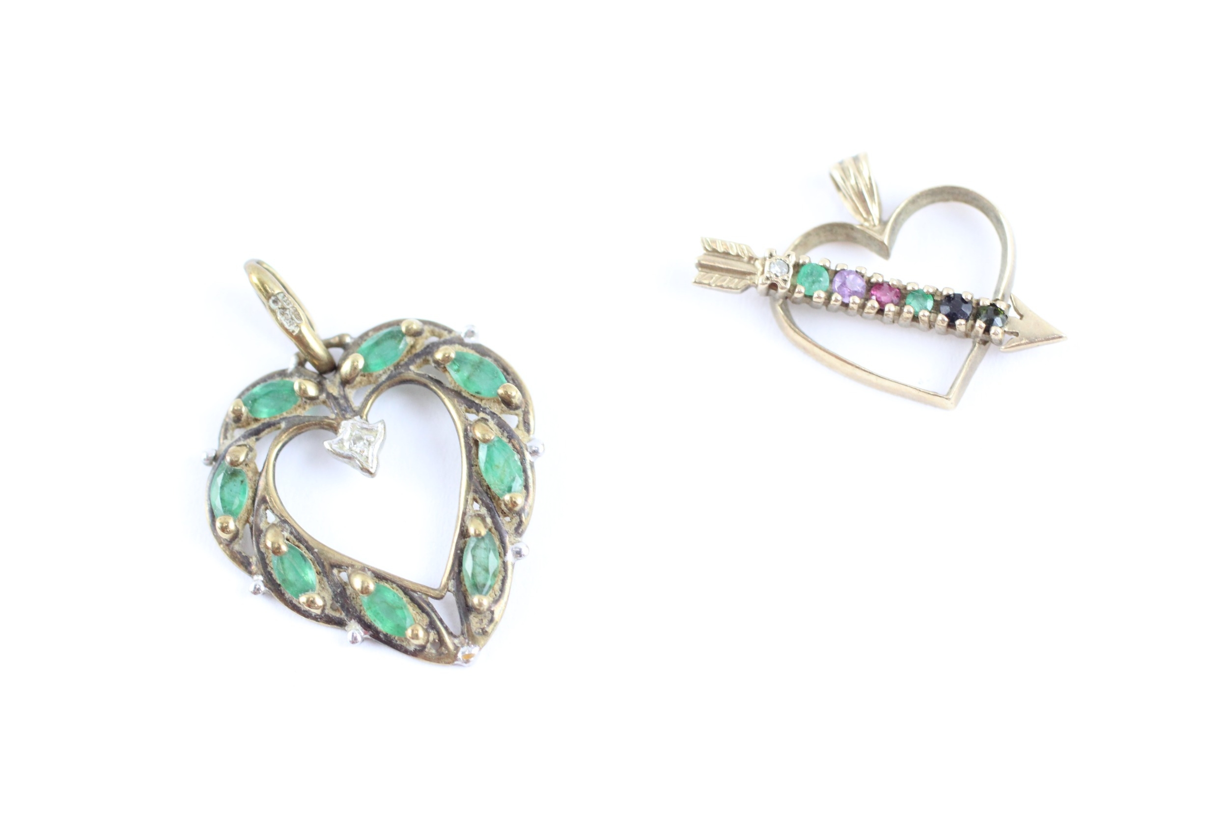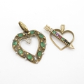 2x 9ct gold acrostic 'DEAREST' emerald diamond heart pendants (2.6g)