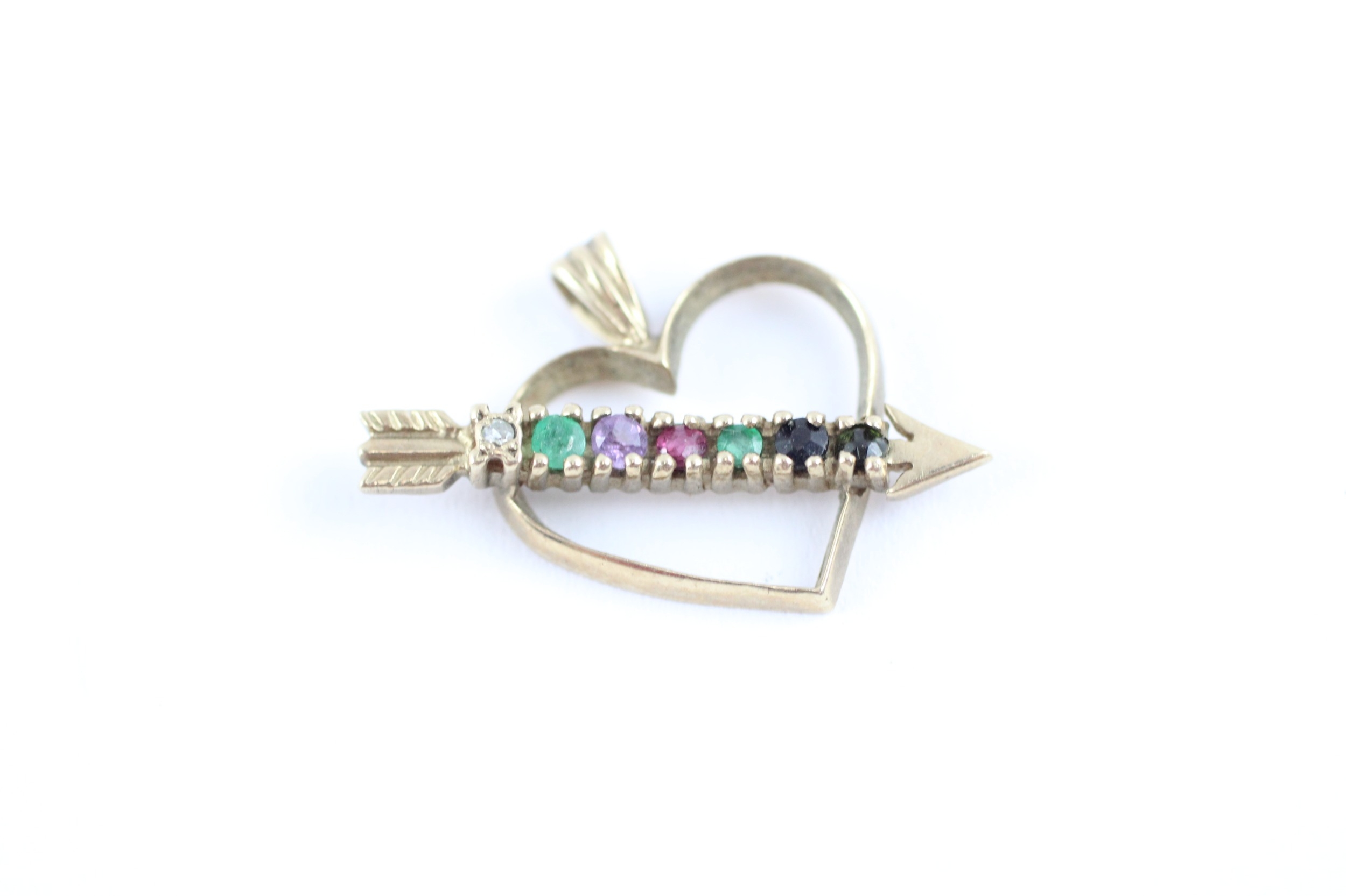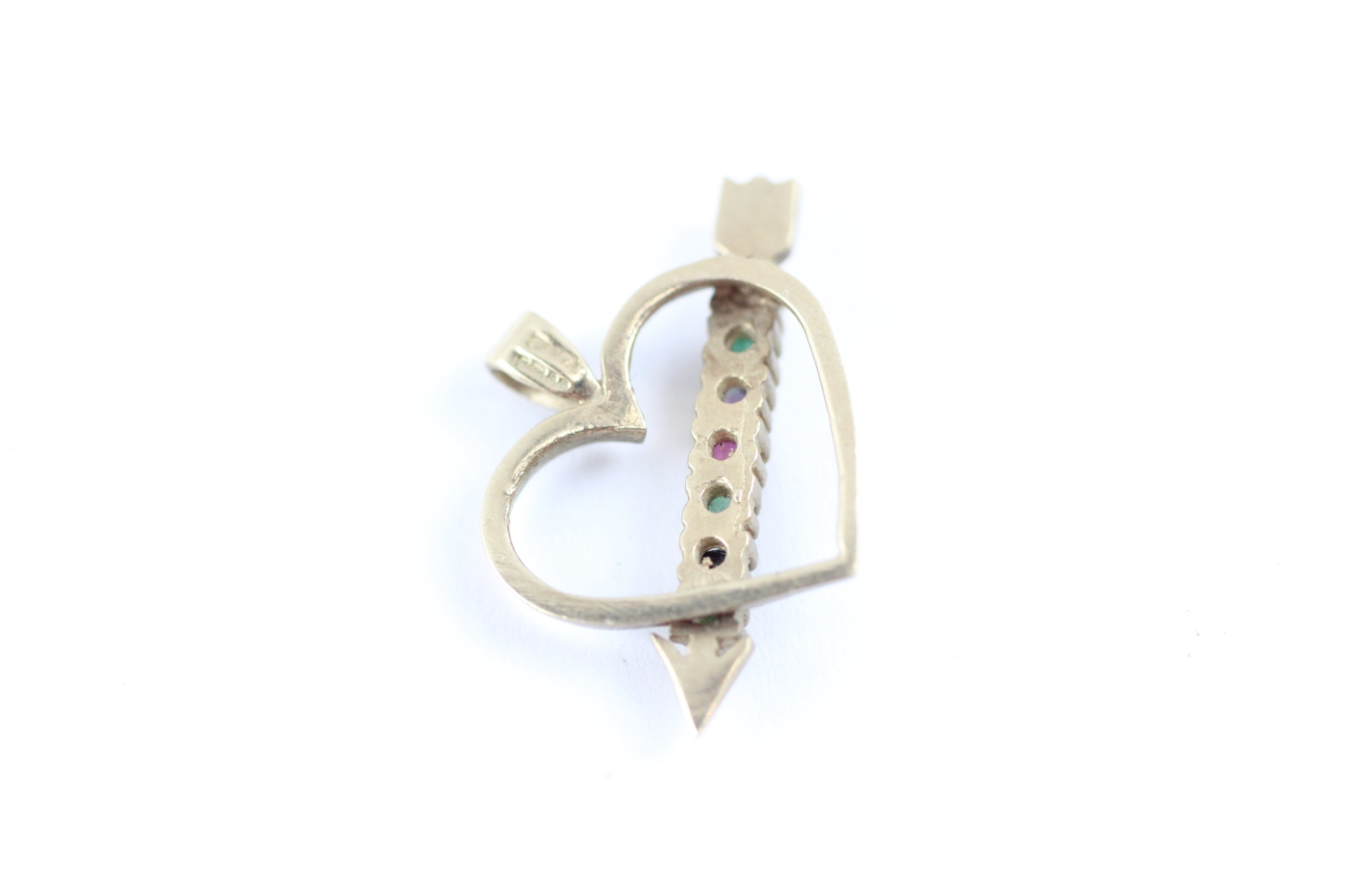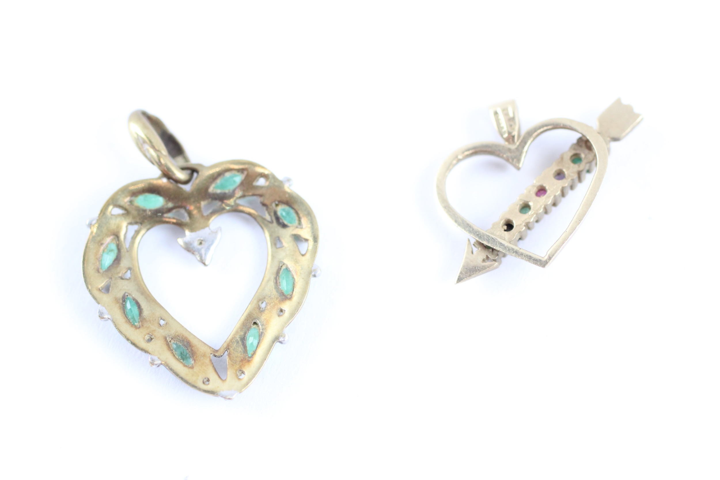 2x 9ct gold acrostic 'DEAREST' emerald diamond heart pendants (2.6g)