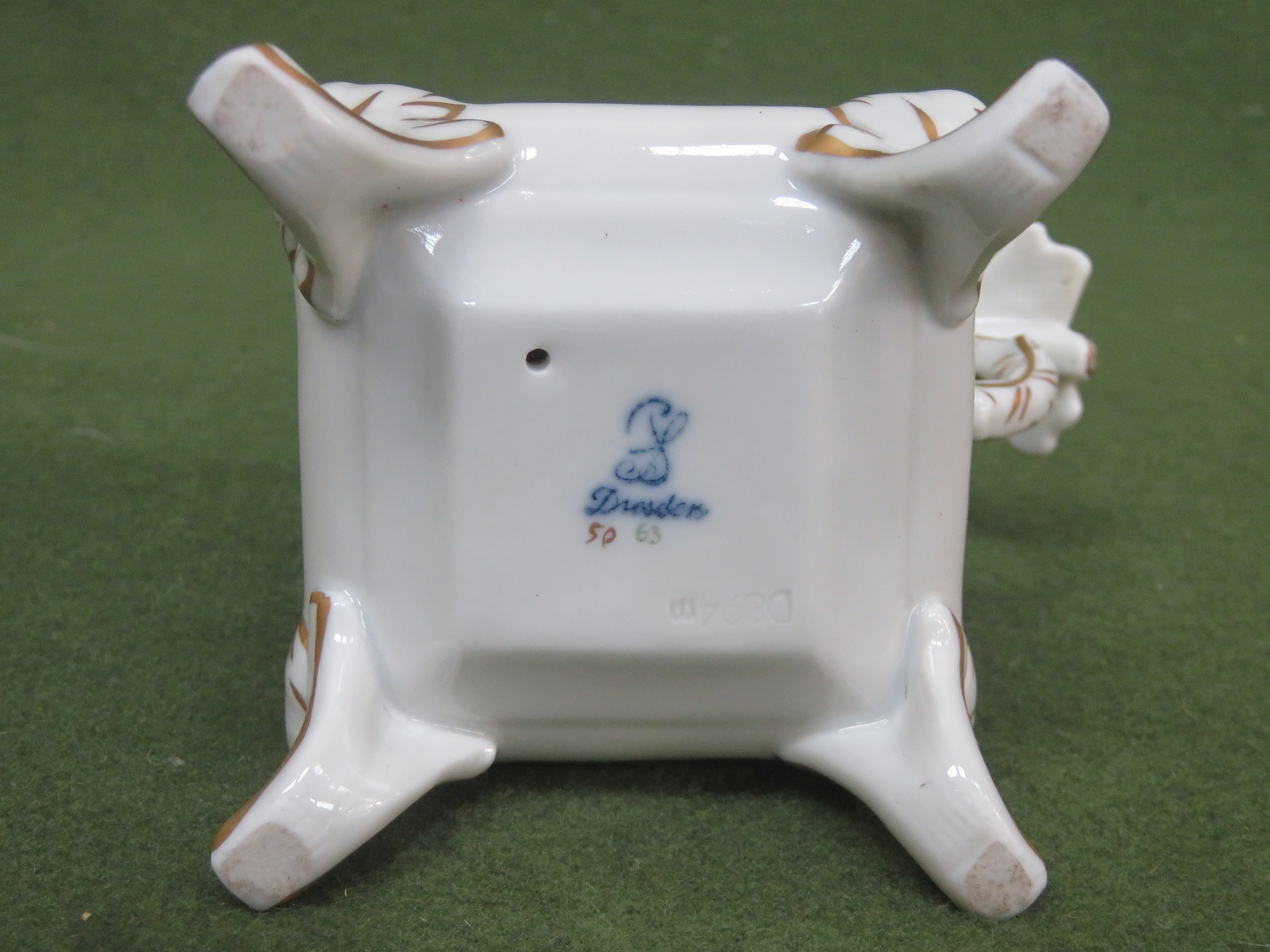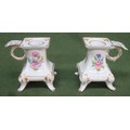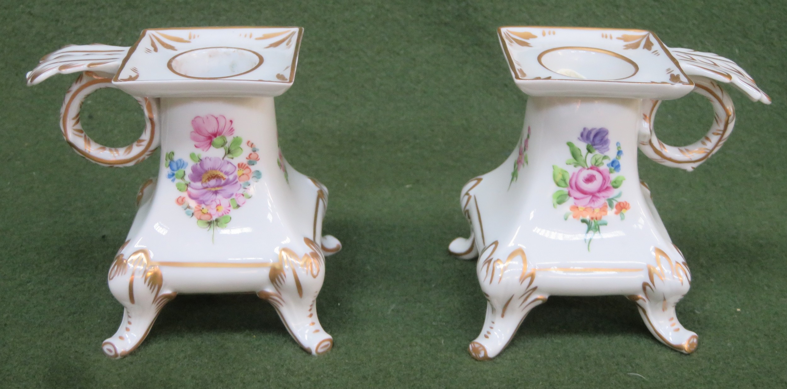 Pair of Dresden hand painted and gilded floral decorated ceramic candle holders. Approx. 9cms High