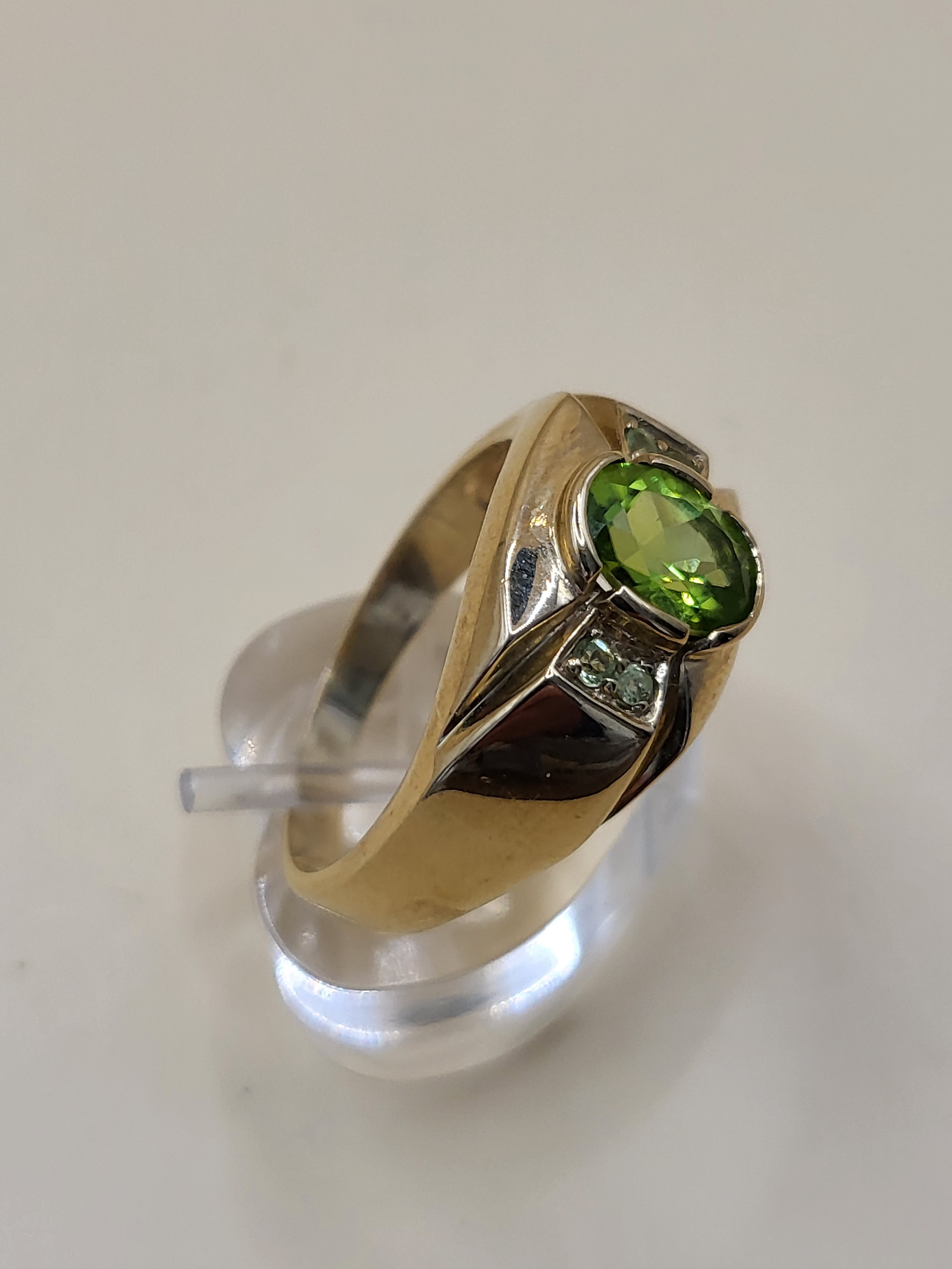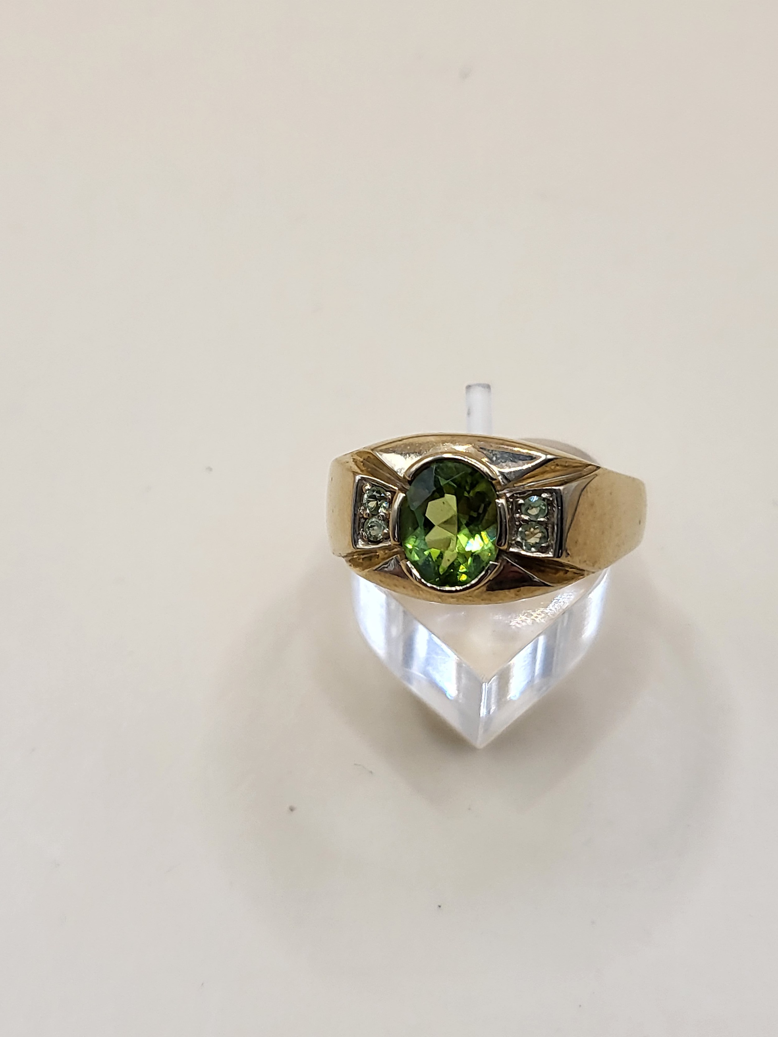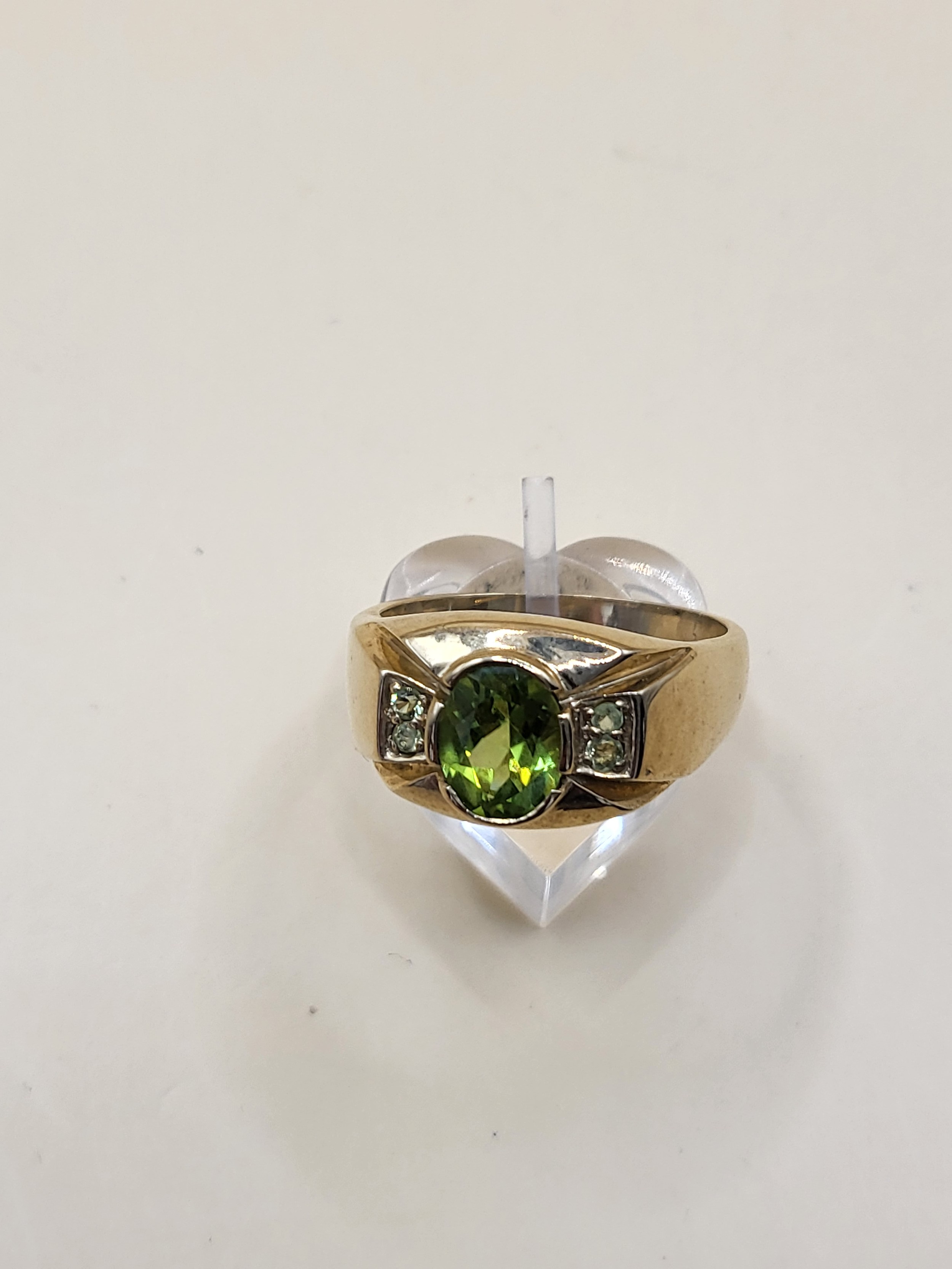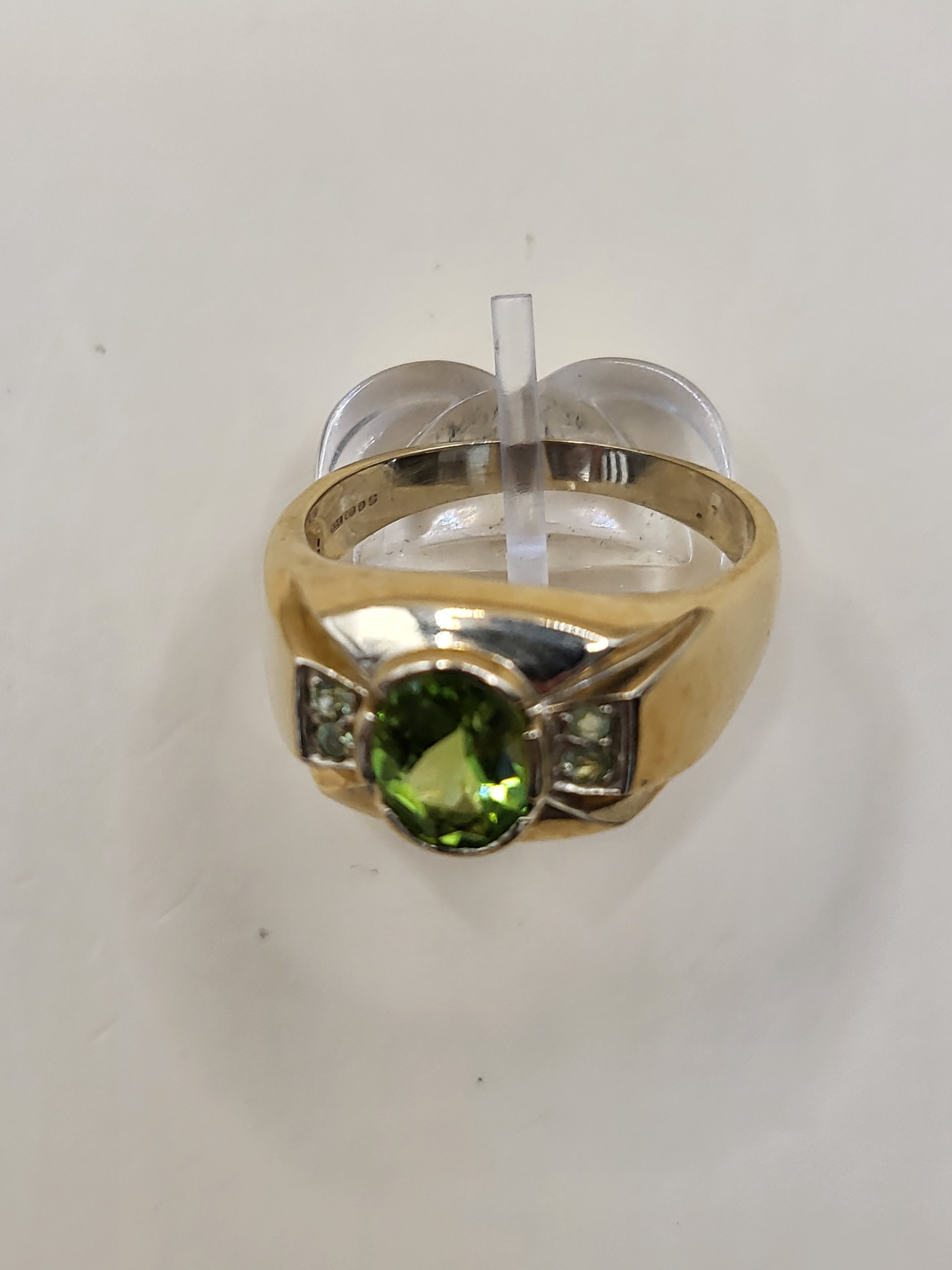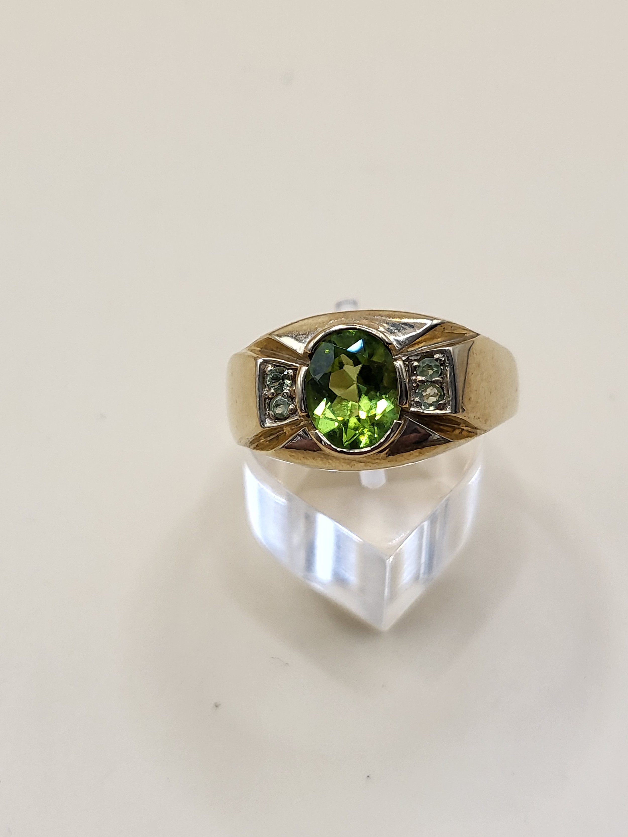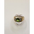 9ct Gold Gent's Peridot Stone Ring Size X Weighs 9.4g Fully Hallmarked Nice Condition