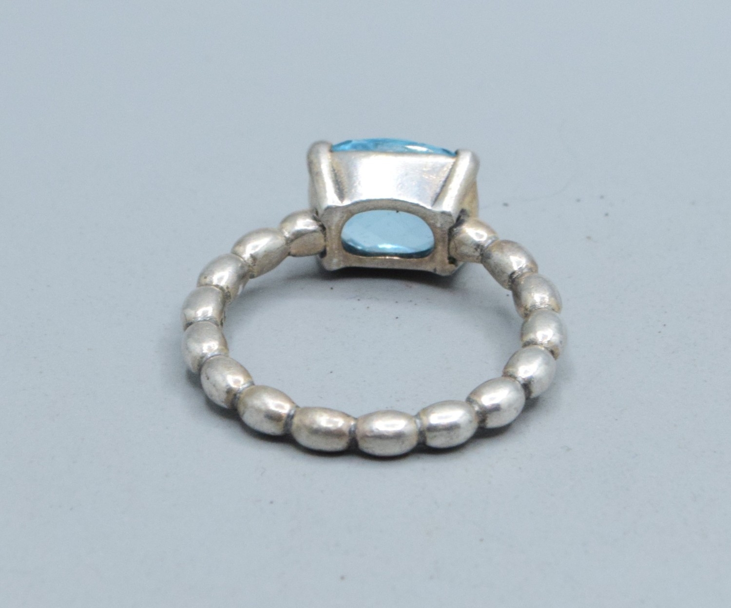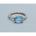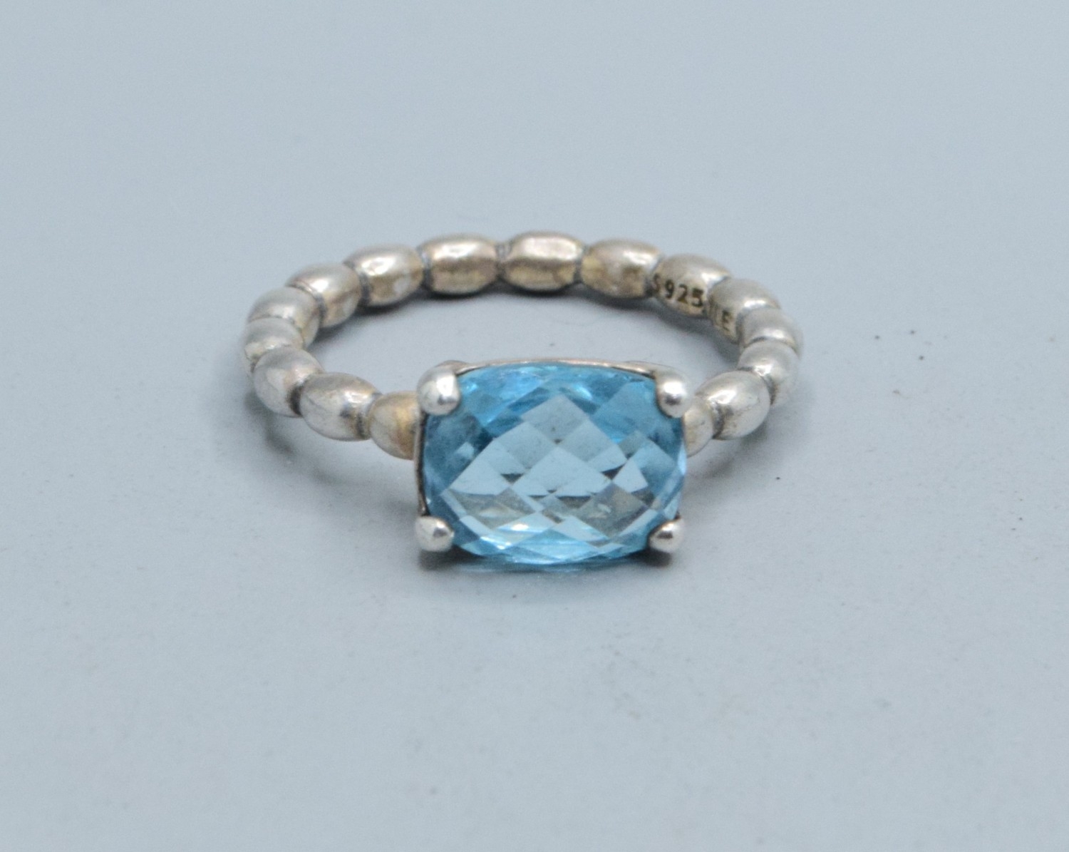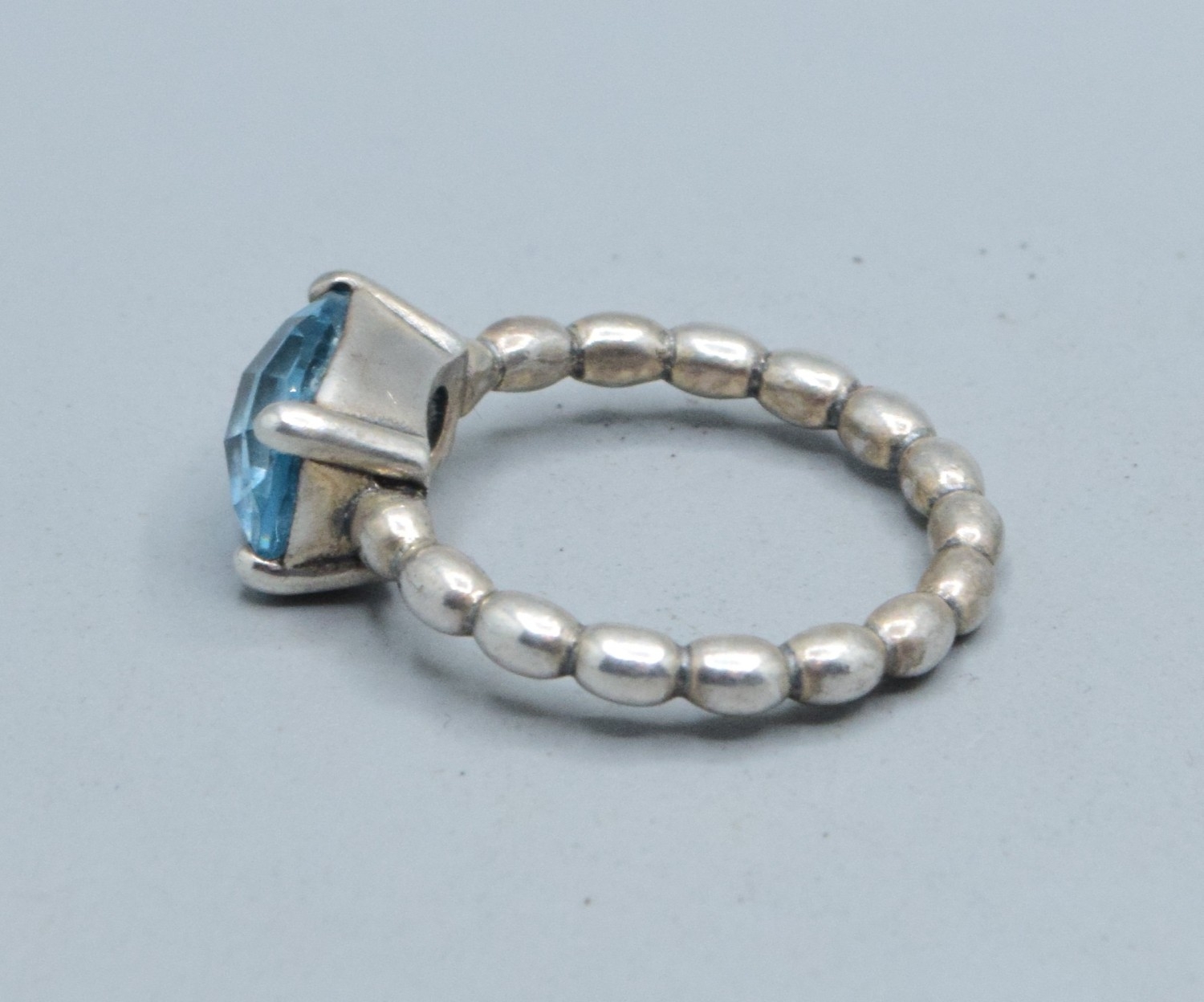 Pandora 925 silver ALE blue Topaz facetted solitaire ring size N