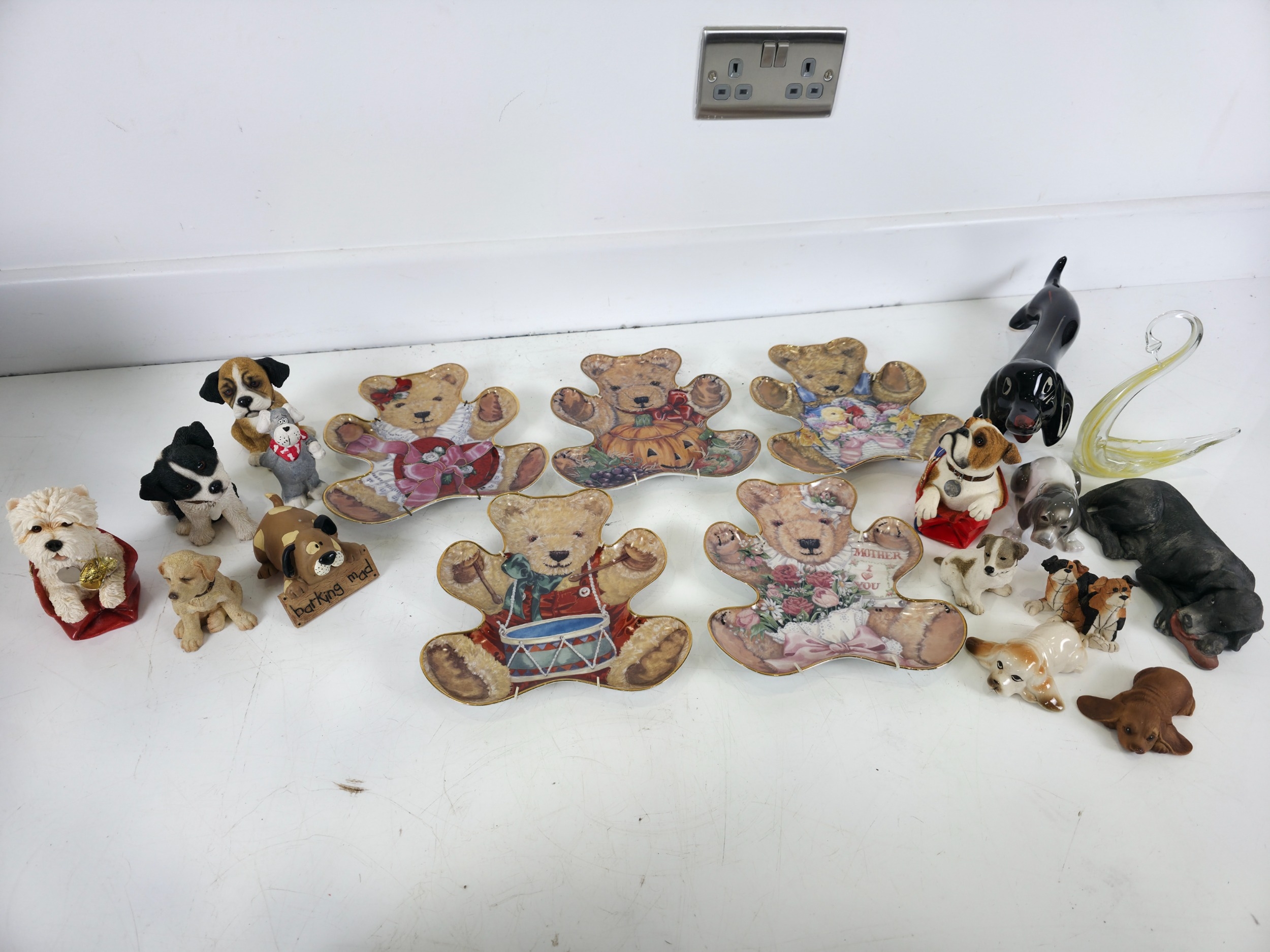 Collection of Decorative Dog & Teddy Bear Ornaments / Wall Plaques and decorative glassware (Likely murano)