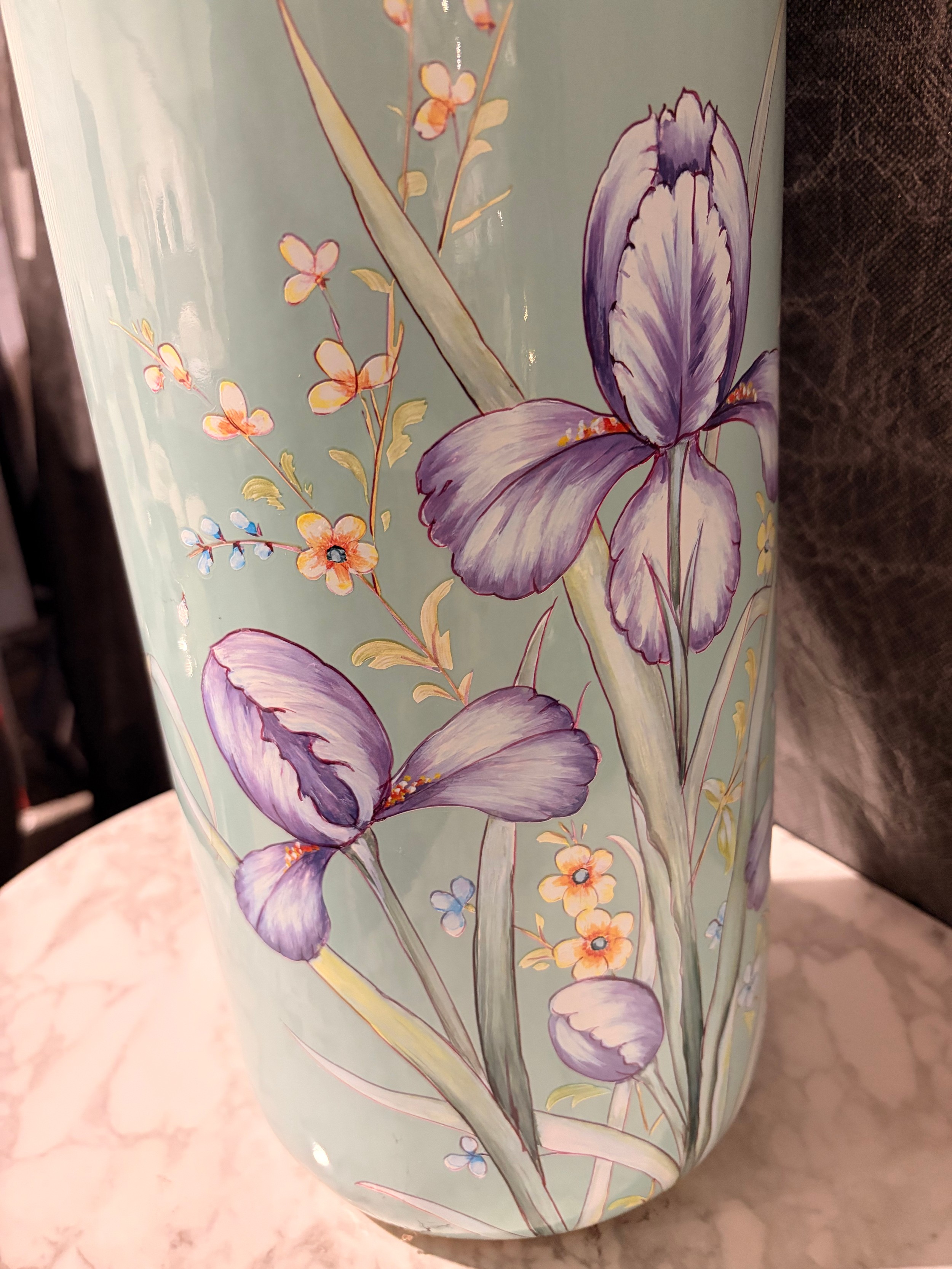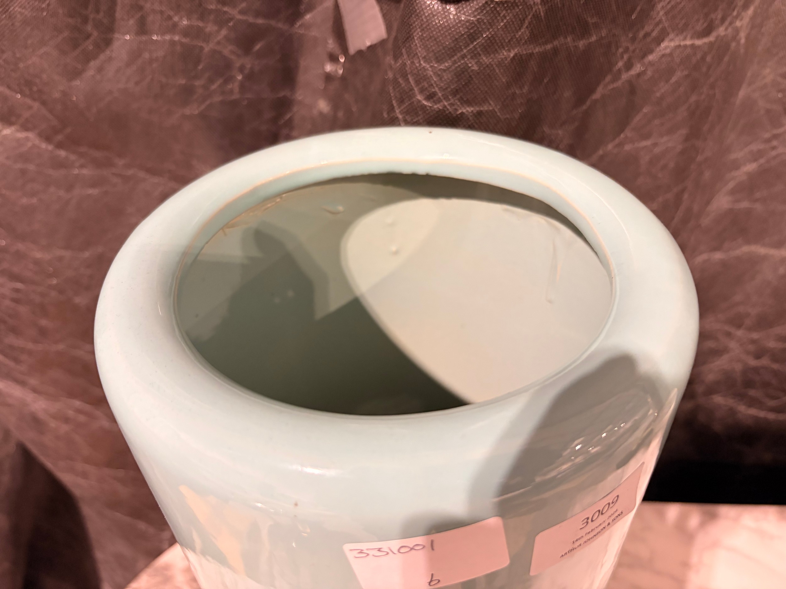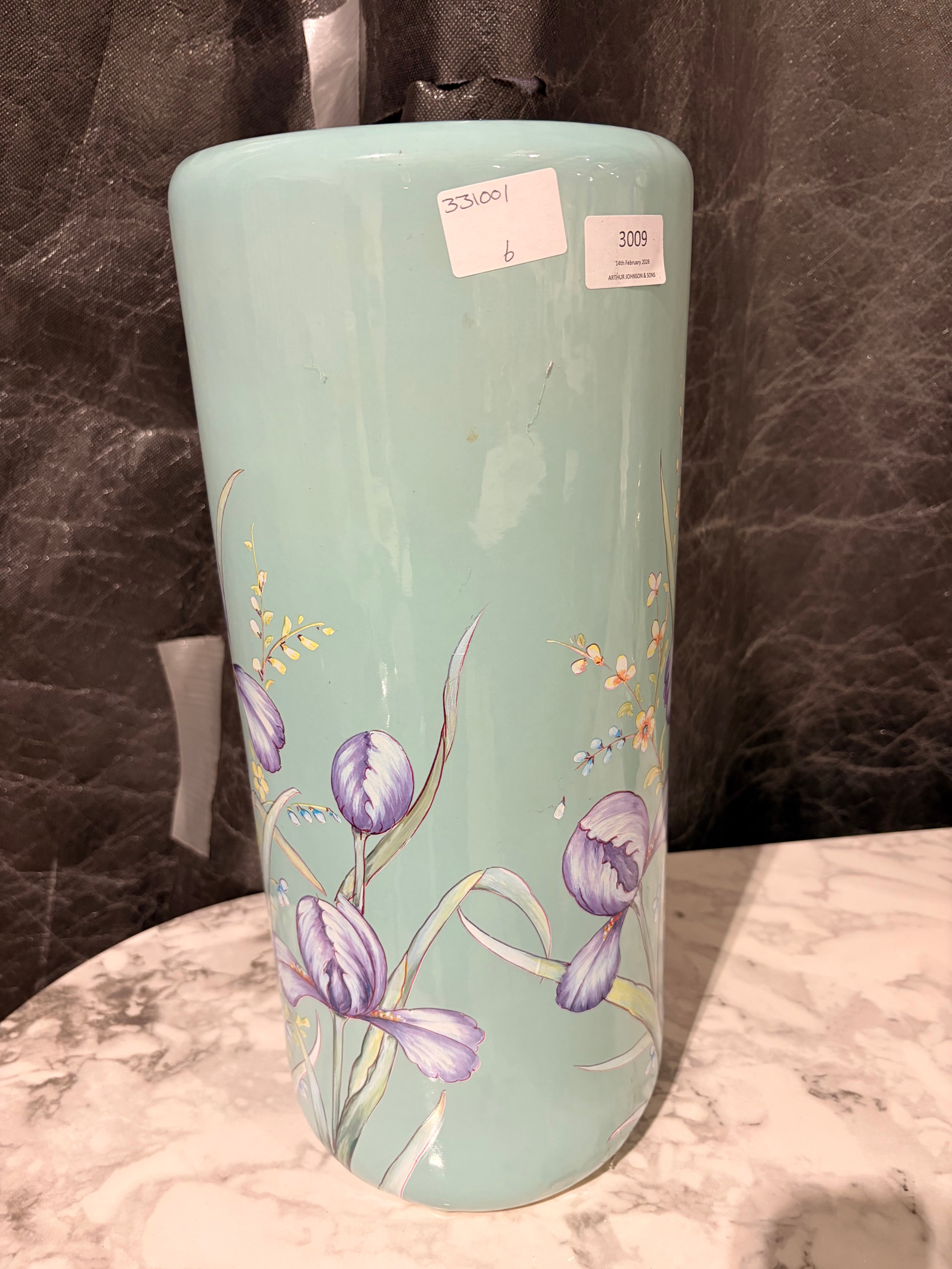 A duck egg blue floral patterned umbrella stand