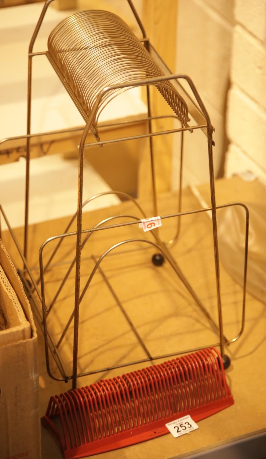 1970s wire LP rack and similar 45RPM rack. This lot is not available for in-house P&P.