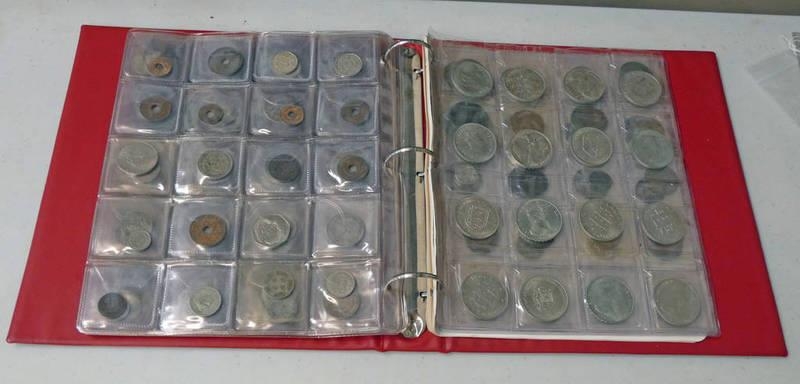 COIN ALBUM CONTAINING MOSTLY 20TH CENTURY, MAINLY SILVER WORLDWIDE COINS TO INCLUDE 1970 NETHERLANDS 10 GULDEN, PEACE BE WITHIN THY WALLS ISRAEL MEDAL, 1868 BELGIAN 5 FRANCS, 1881 VICTORIA HALF CROWN, PAGE OF VARIOUS COMMONWEALTH CROWNS, ETC