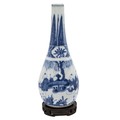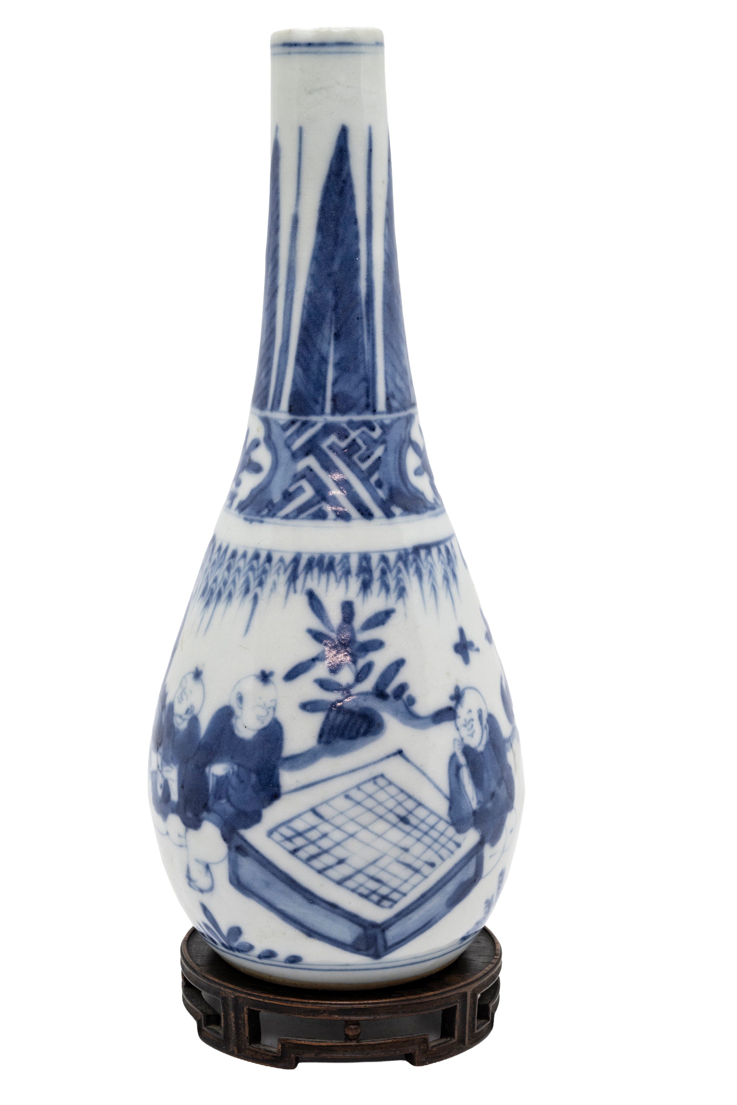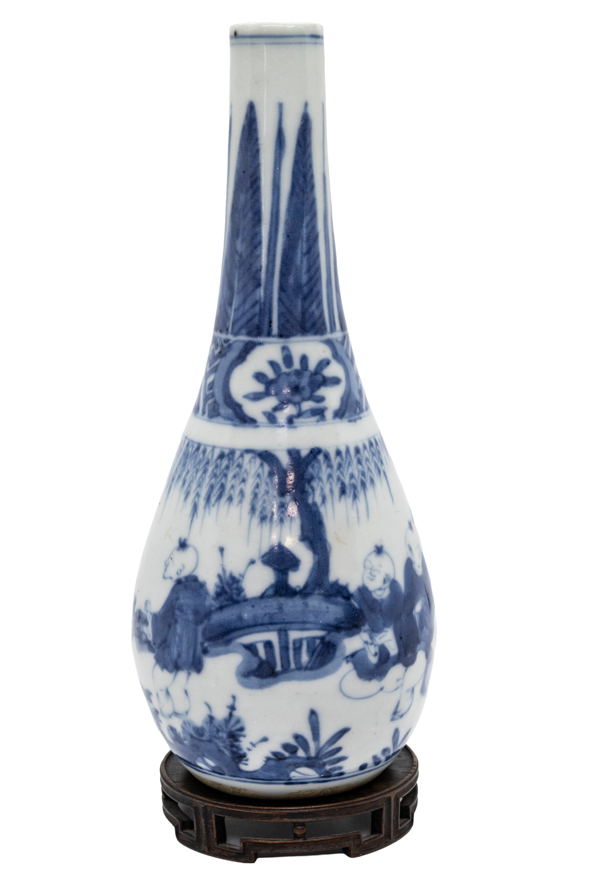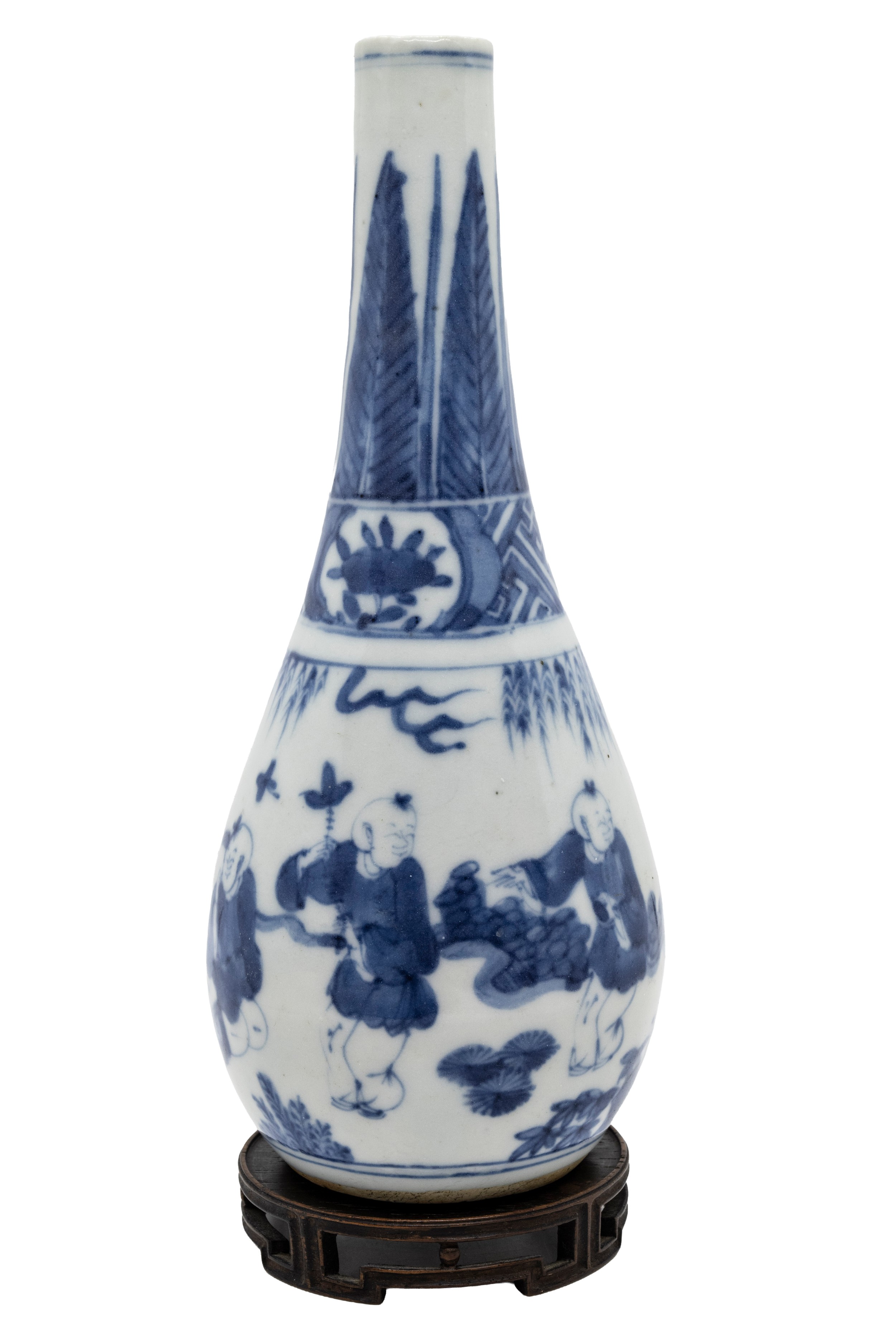A TRANSITIONAL-STYLE BLUE AND WHITE BOTTLE VASE
