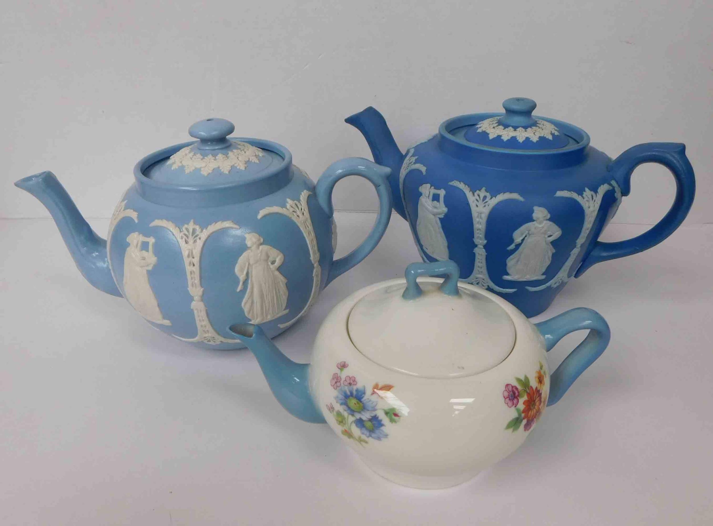 Three tea pots - including Staffordshire pottery