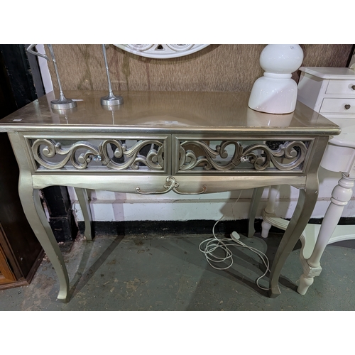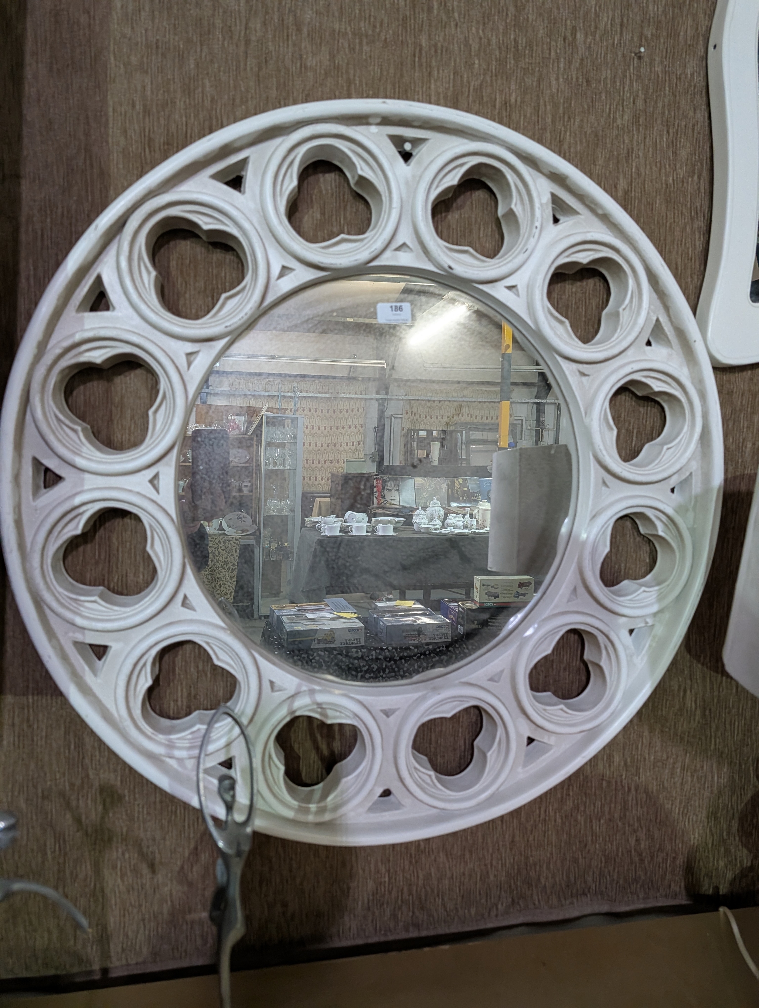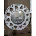 Large round vintage mirror white molded frame with a detailed, gothic design. 32" diameter