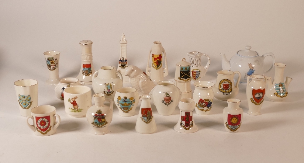 A collection of miniature crested china including Peter Rabbit Teapot etc