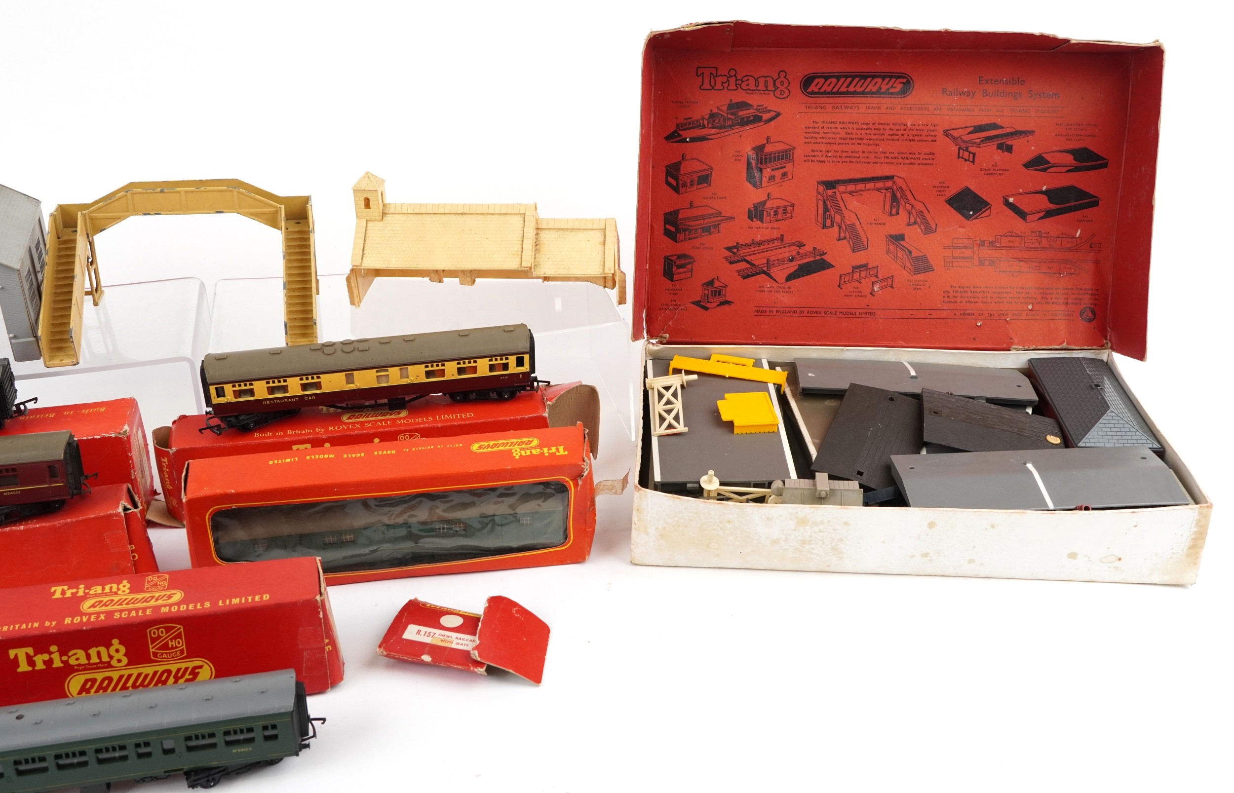 Tri-ang OO gauge model railway carriages, buildings and acce...
