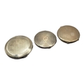 All being of circular form and double sided engine turned decoration, hallmarked Crisford & Norris Ltd, Birmingham, 1935 and Joseph Gloster Ltd, Birmingham, 1939.