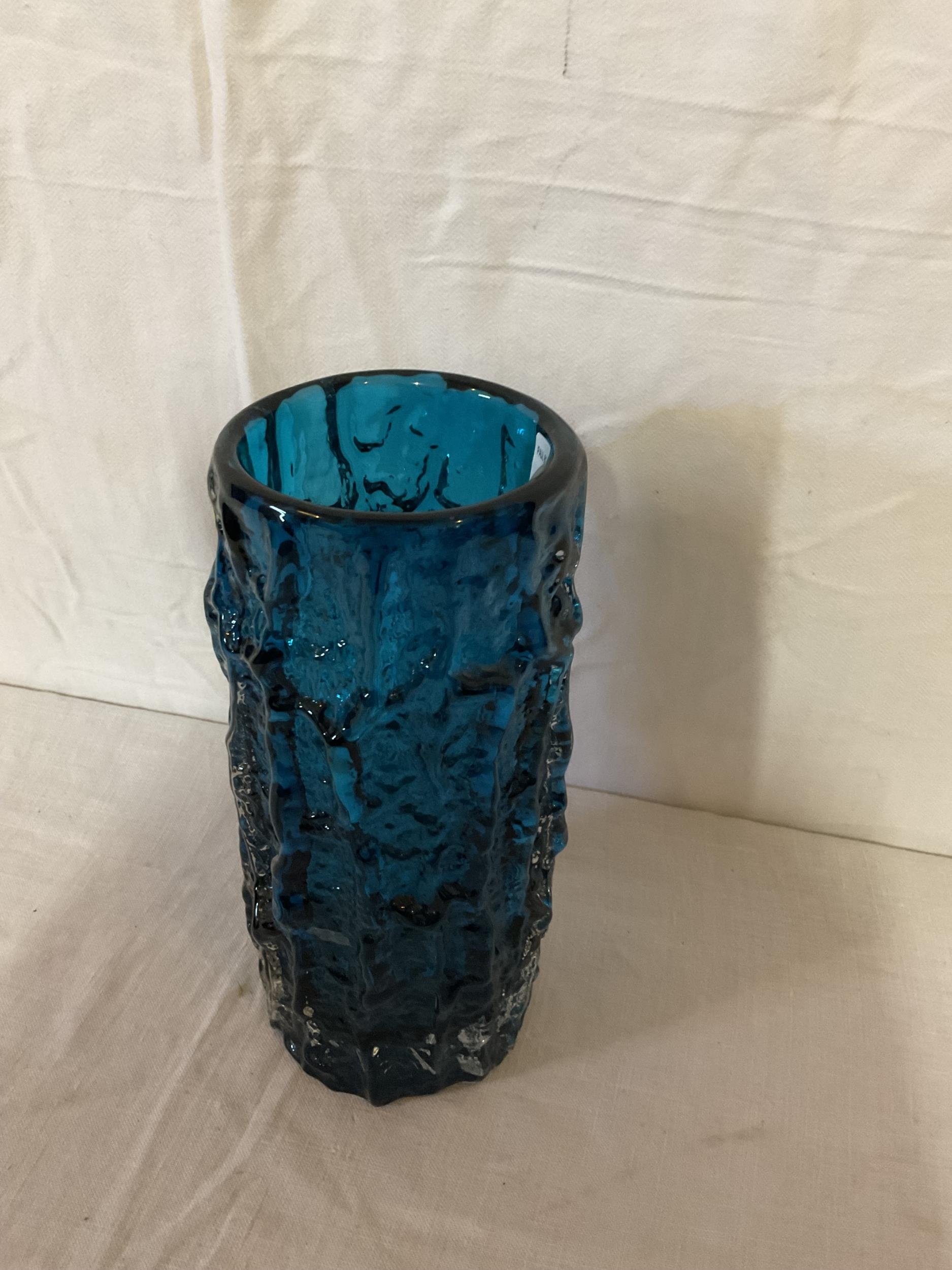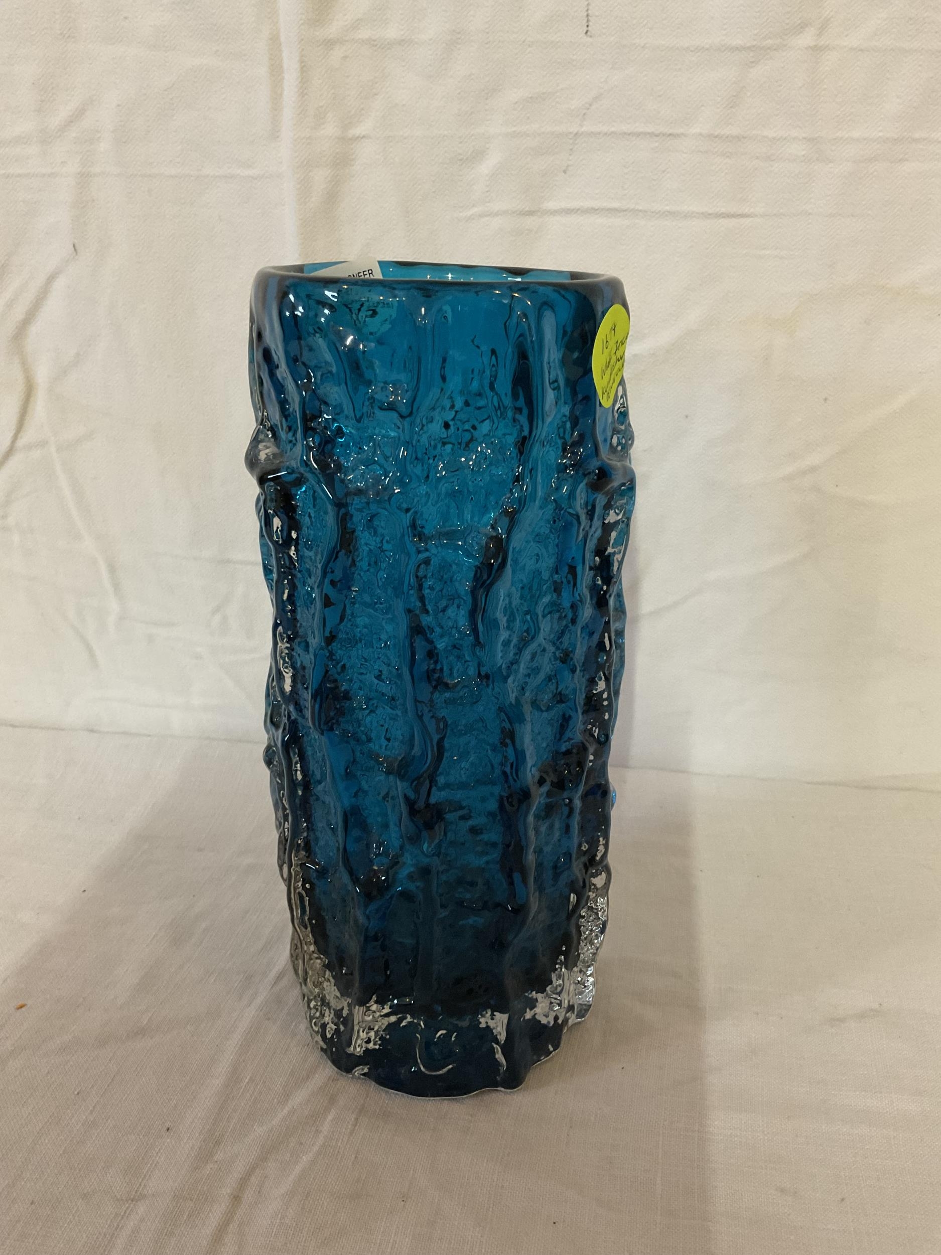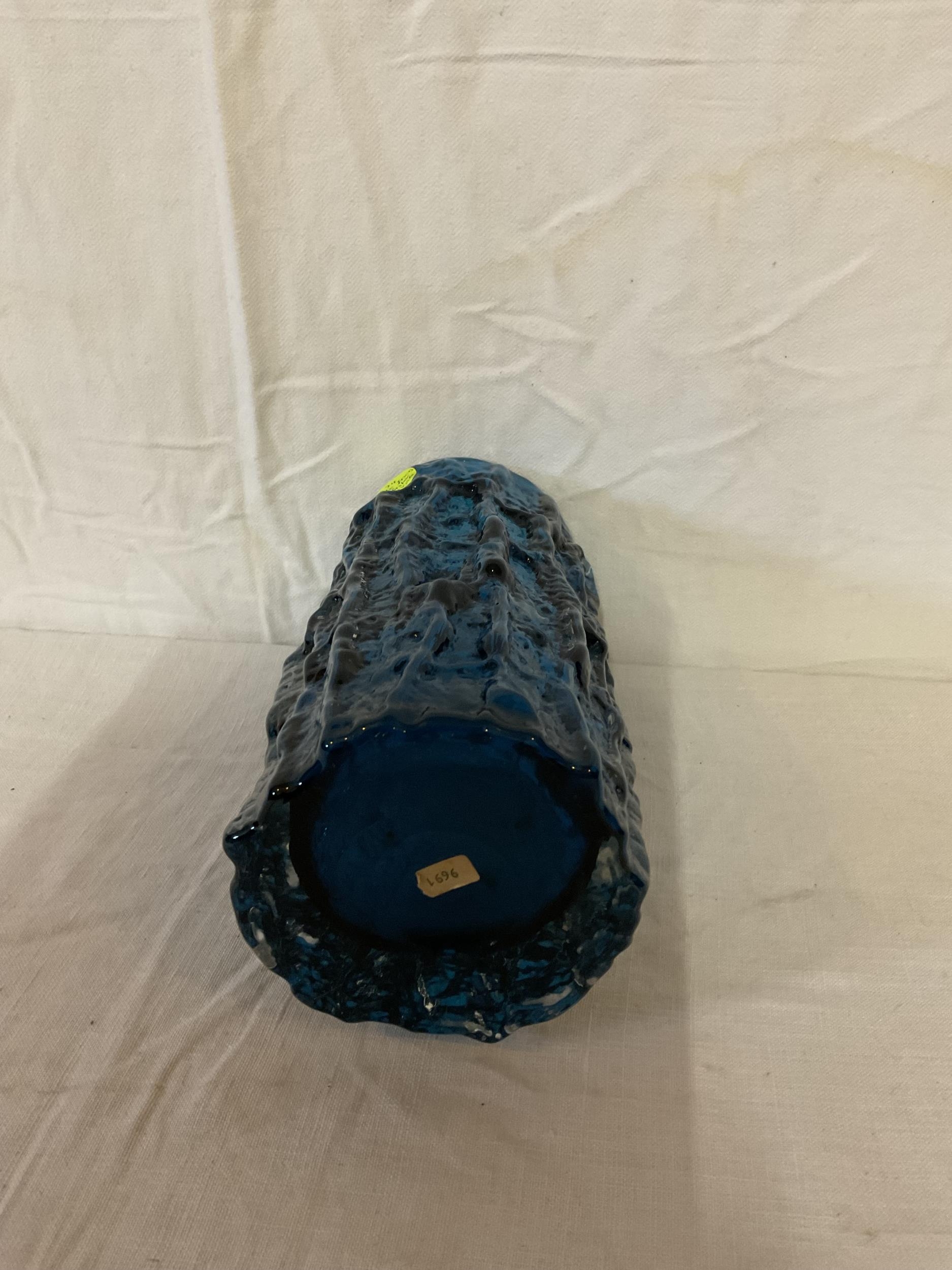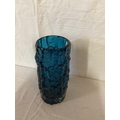 VINTAGE WHITE FRYERS BLUE GLASS VASEH 9"