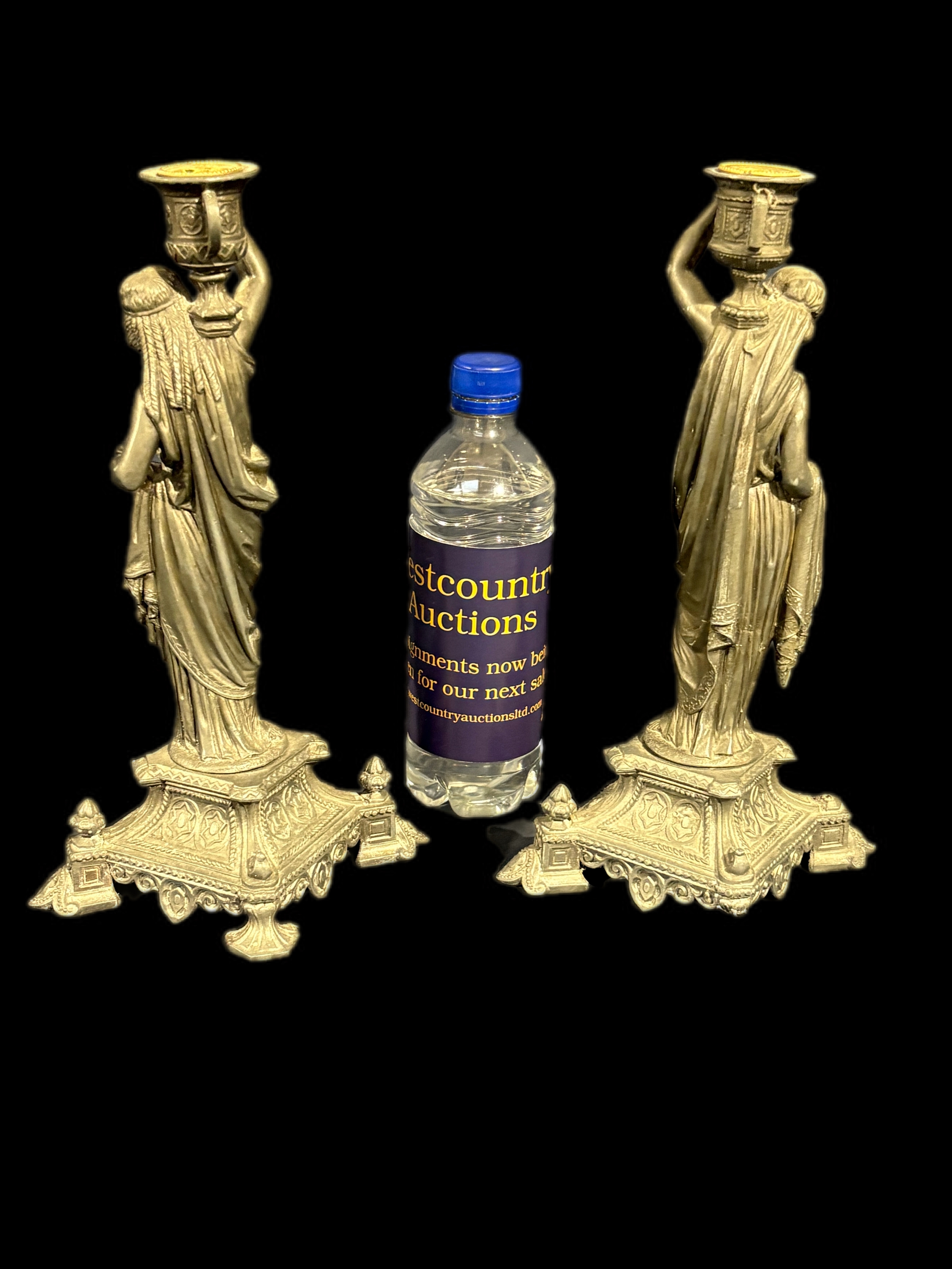 2 pewter candle sticks foot missing