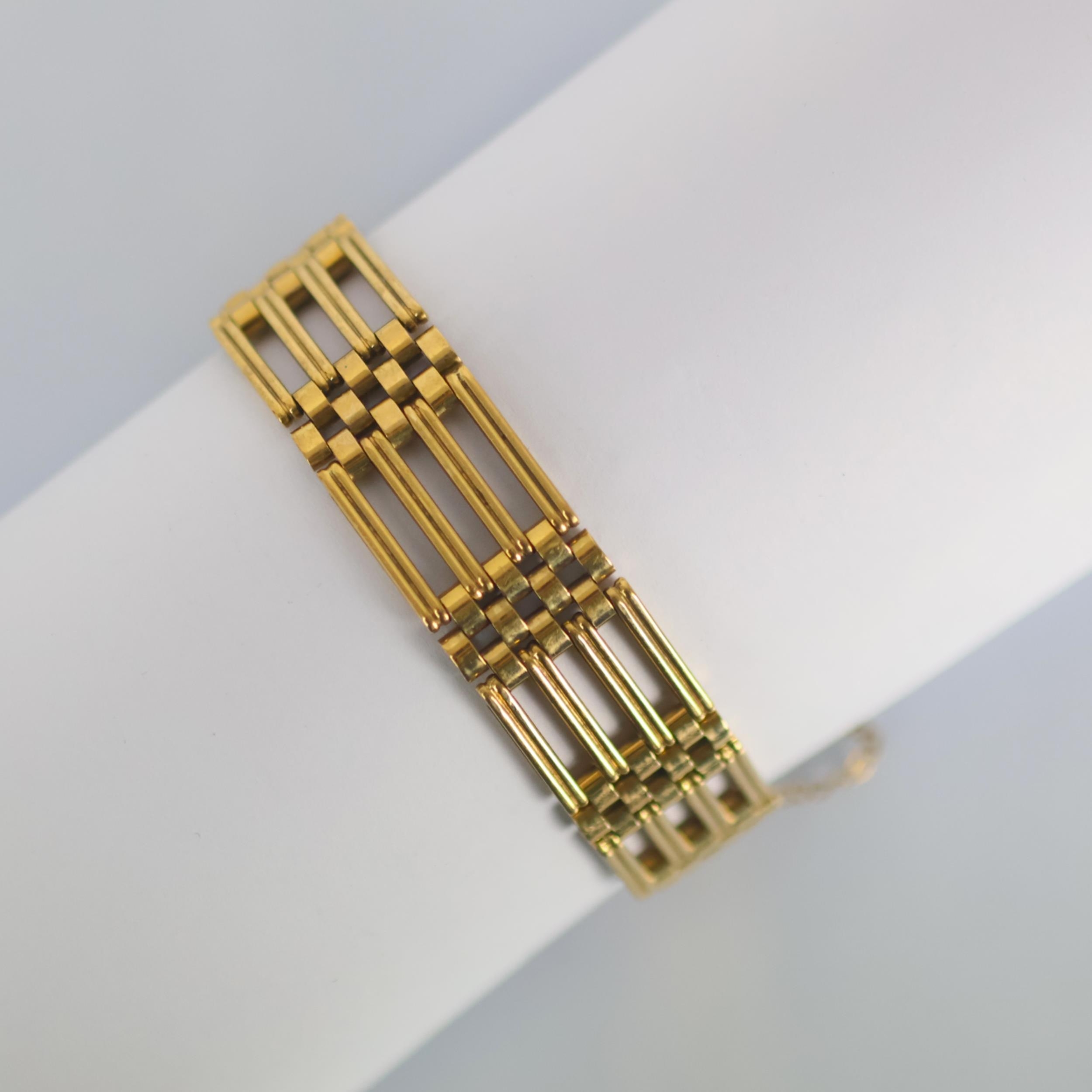 A late 20th century 9ct gold bracelet, the stylised gate link bracelet suspending a heart shaped padlock fastener, hallmarked for Birmingham, possibly 1978, 25.6gms