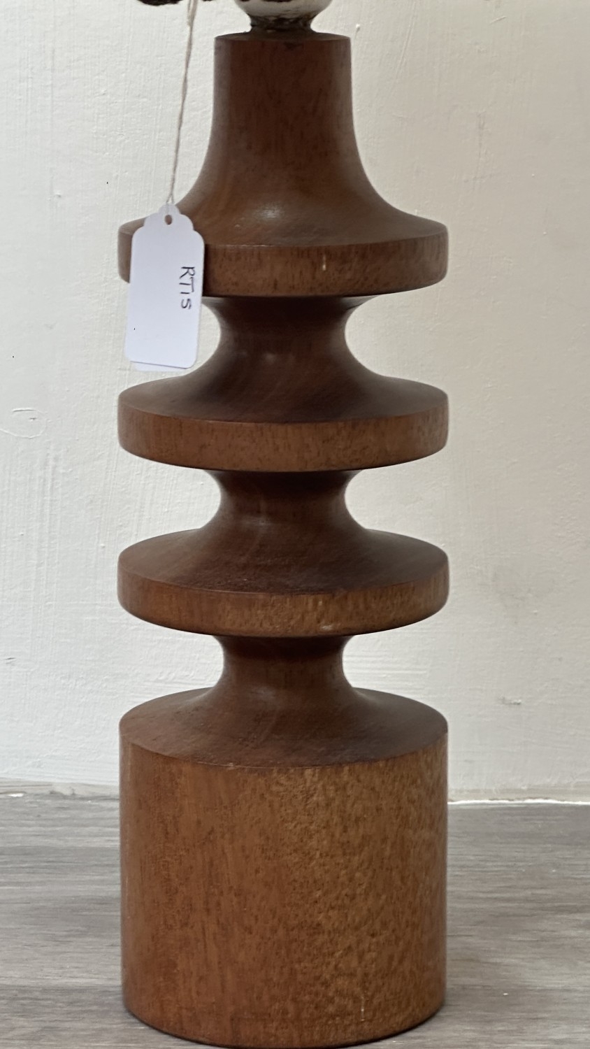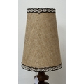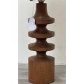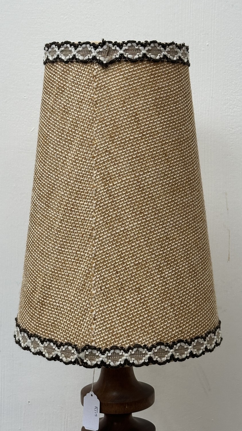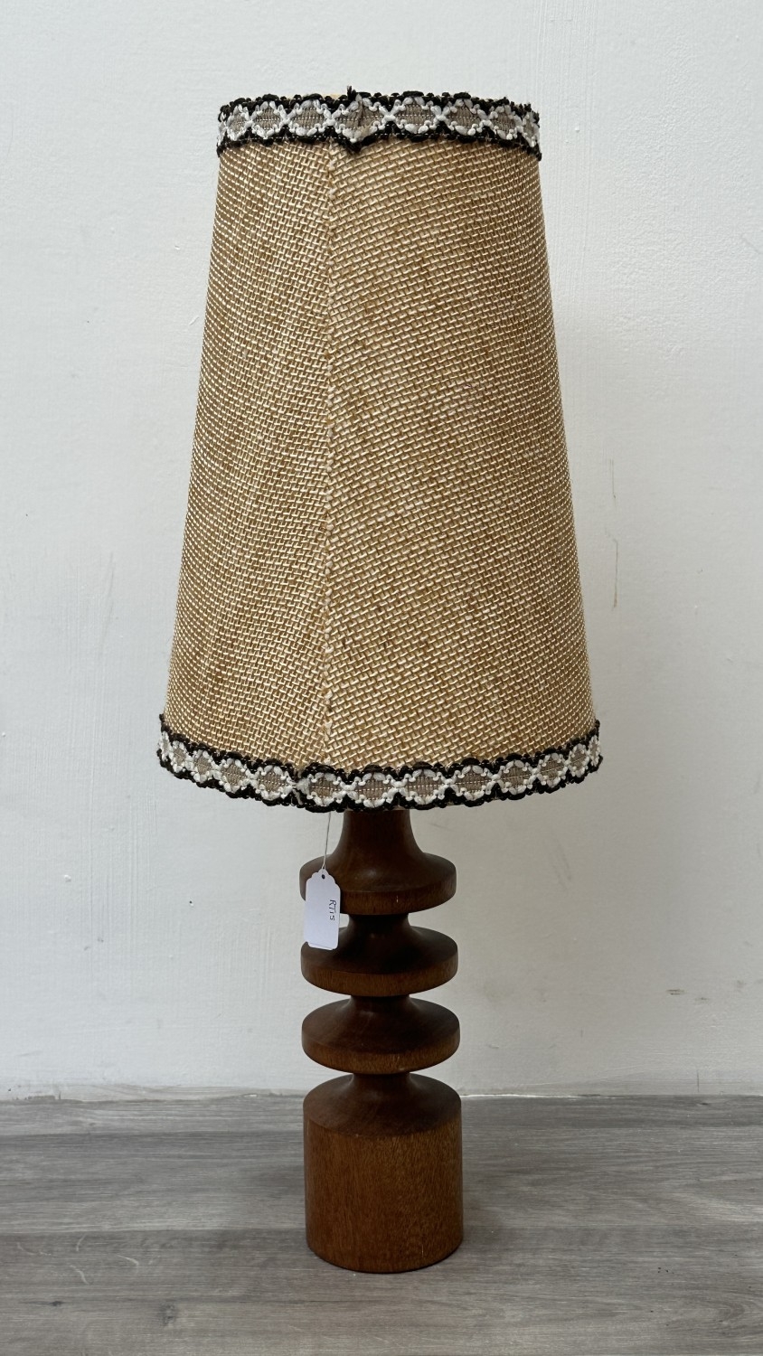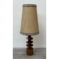 A mid 20th century teak table lamp with brown and beige fabric shade - approx. 66cm high including shade