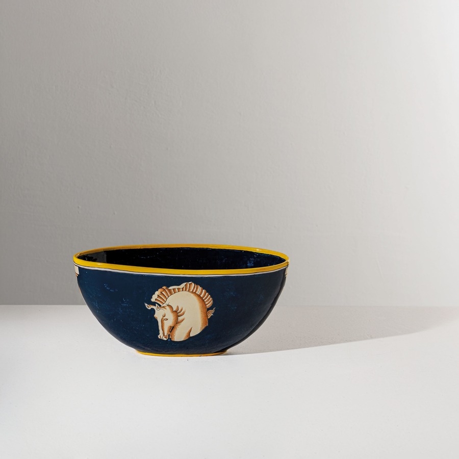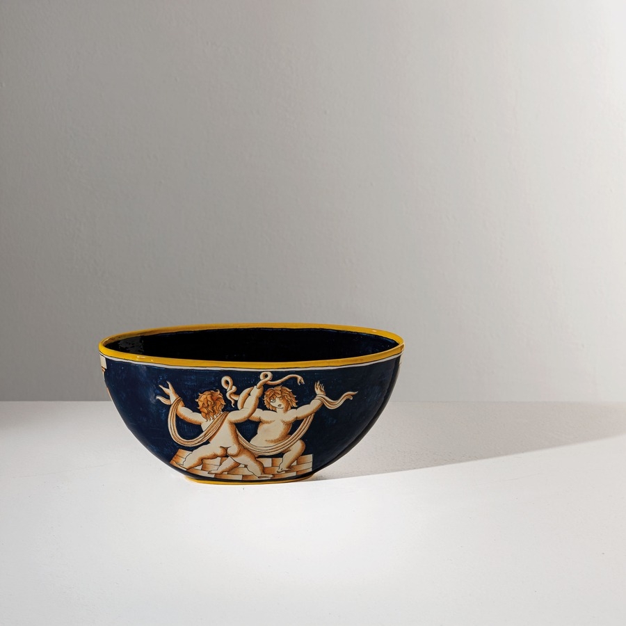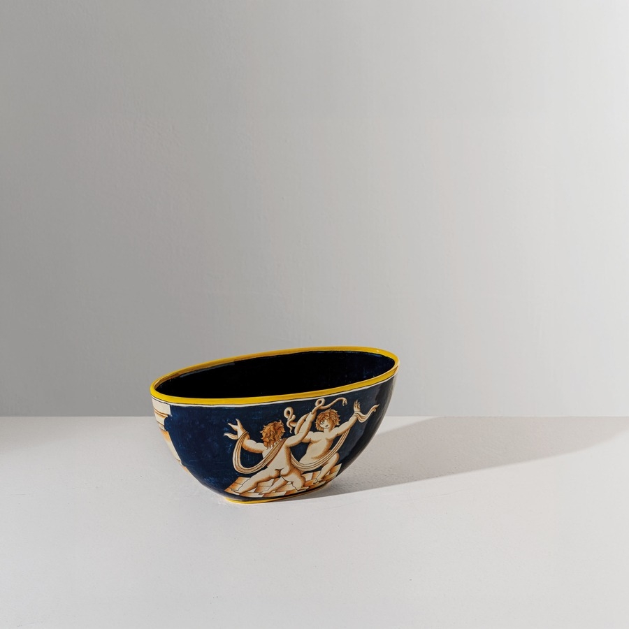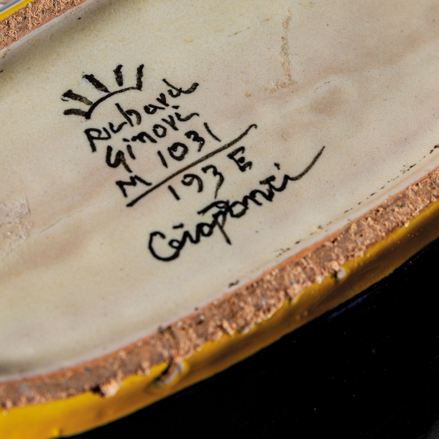 Coppa Donatella della serie Le mie donne. Maiolica policroma. Esecuzione Richard Ginori, anni '30. Marchio sotto la base. Perizia Gio Ponti Archives