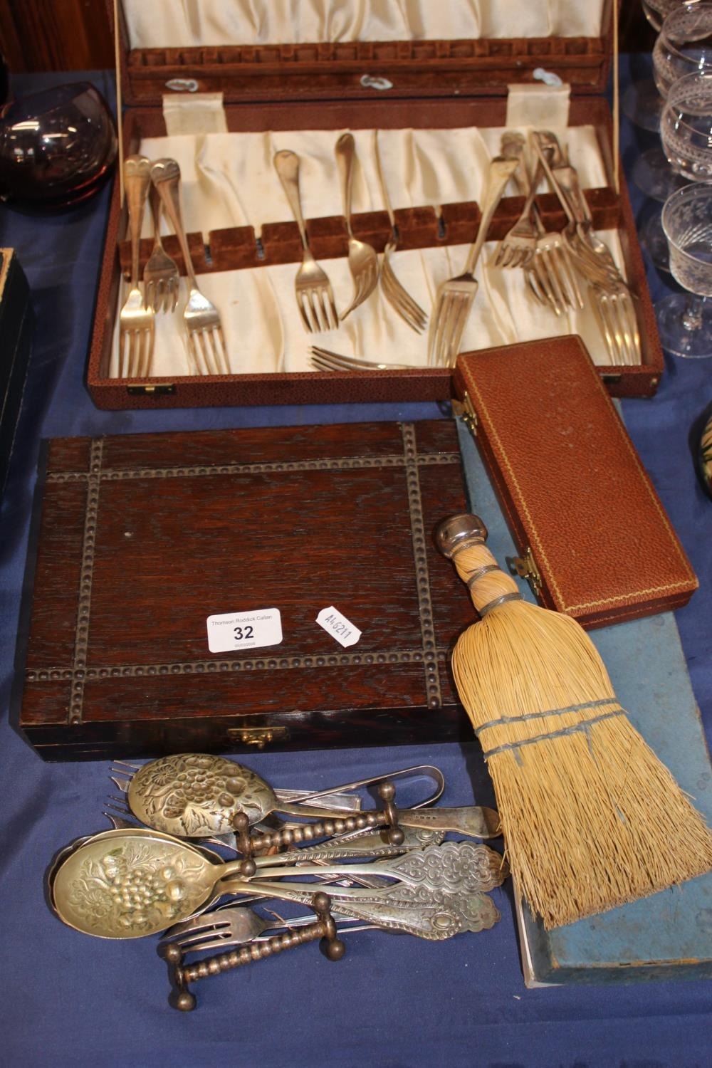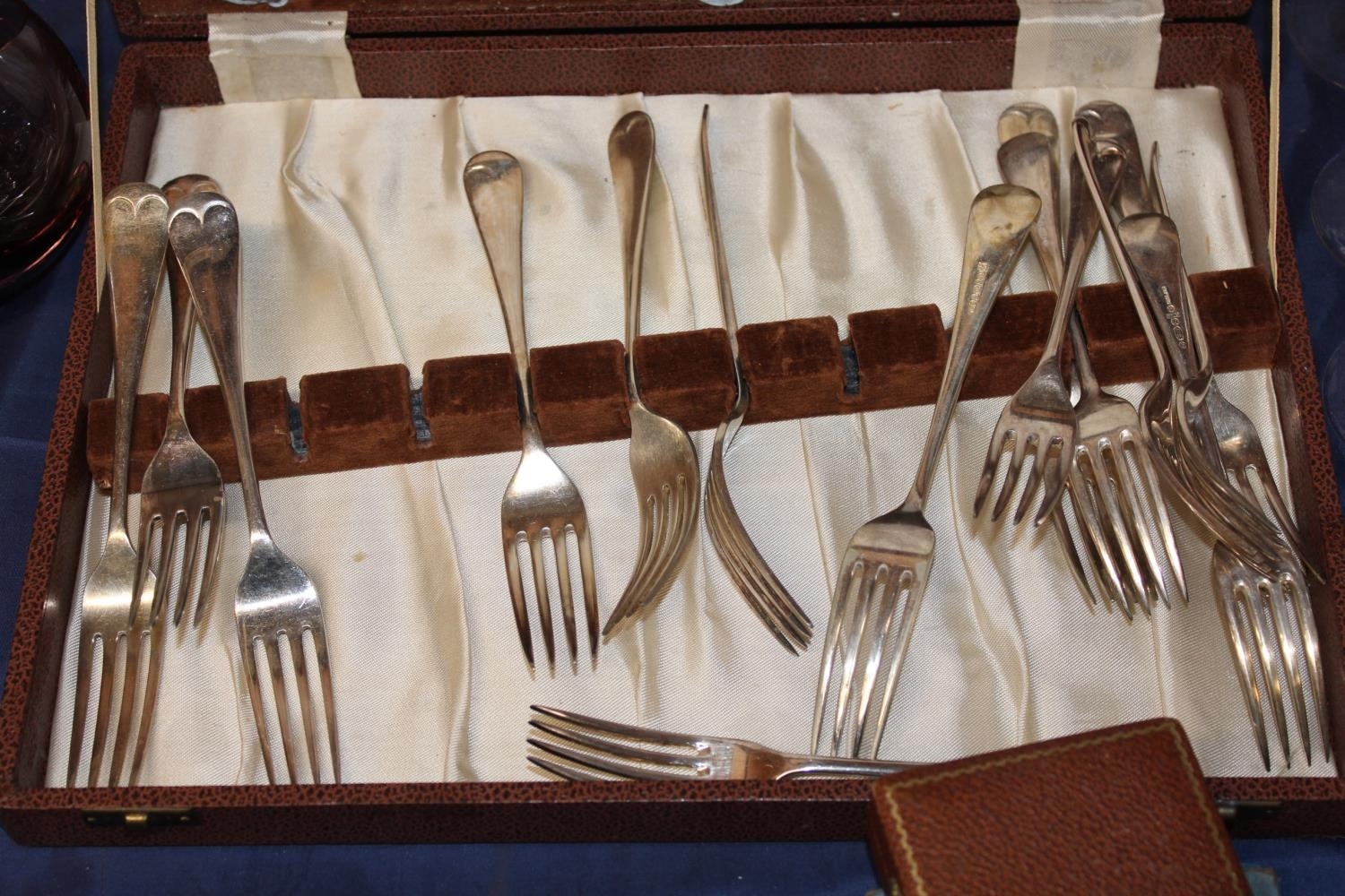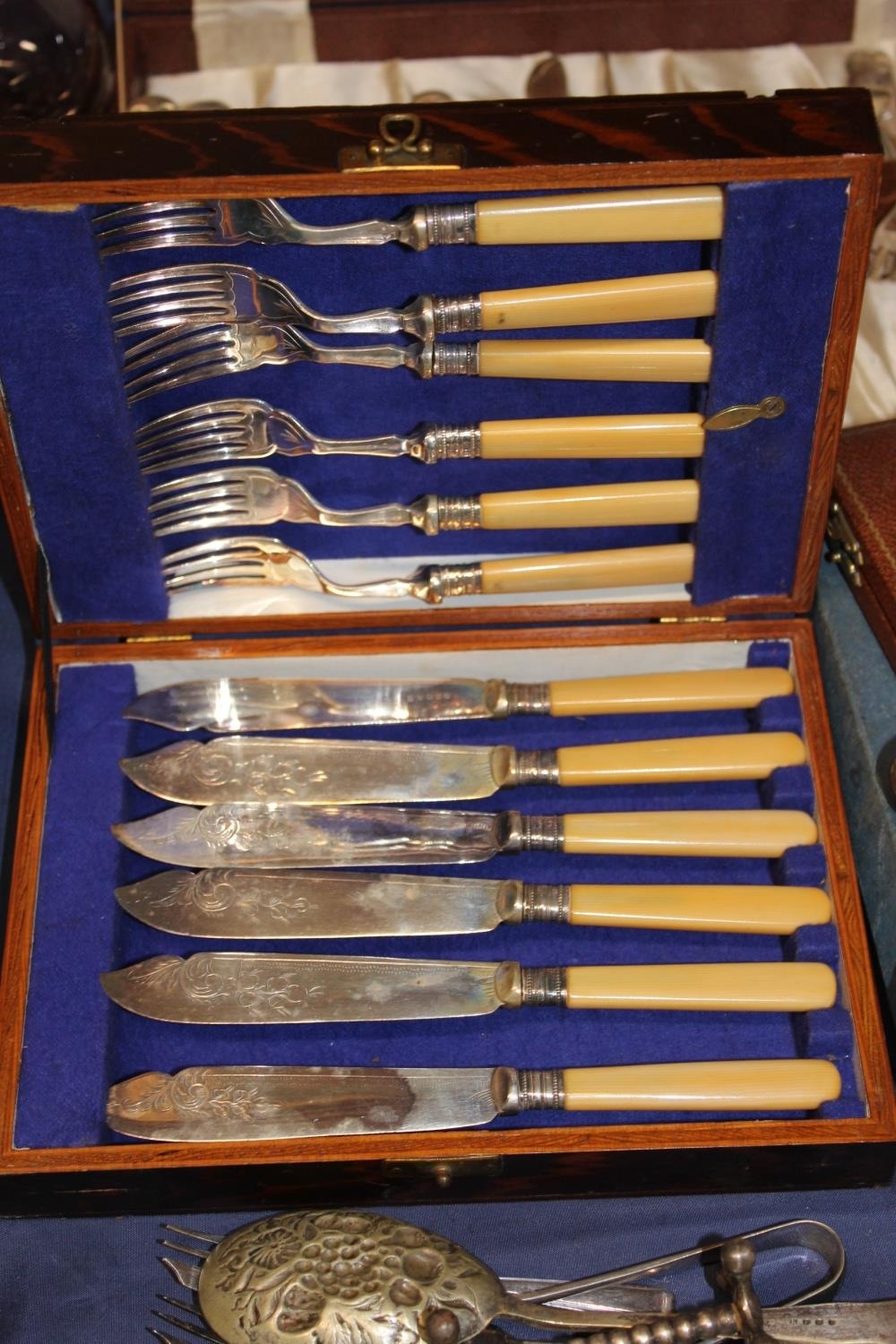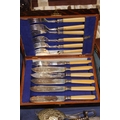 Cased set of fish knives and forks, flatware, a part canteen of cutlery.