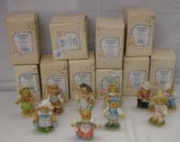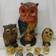 3 Graduated Carved Wood Owls, 3 Cloisonne Owls & 5 Carved Alabaster Owls