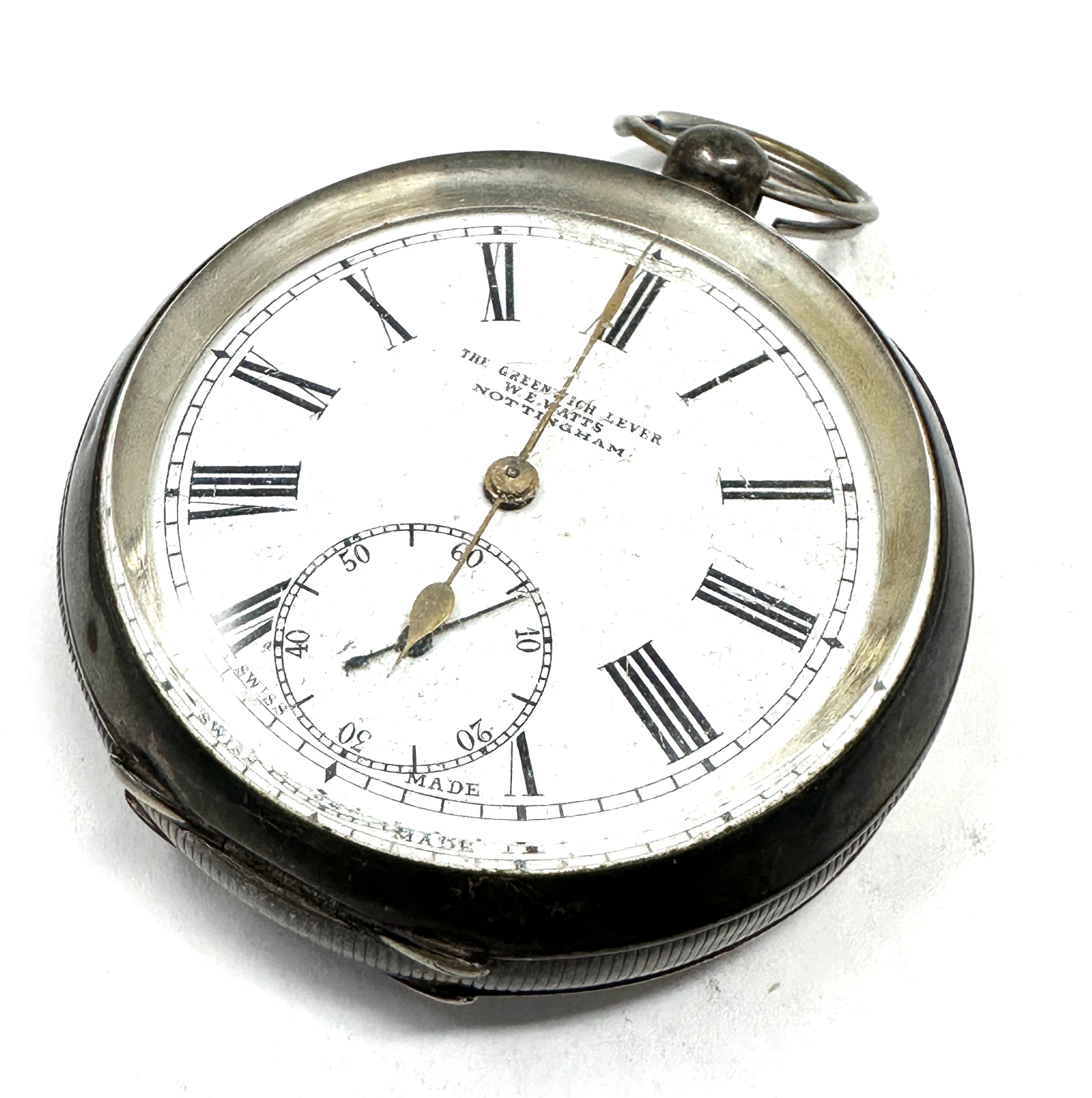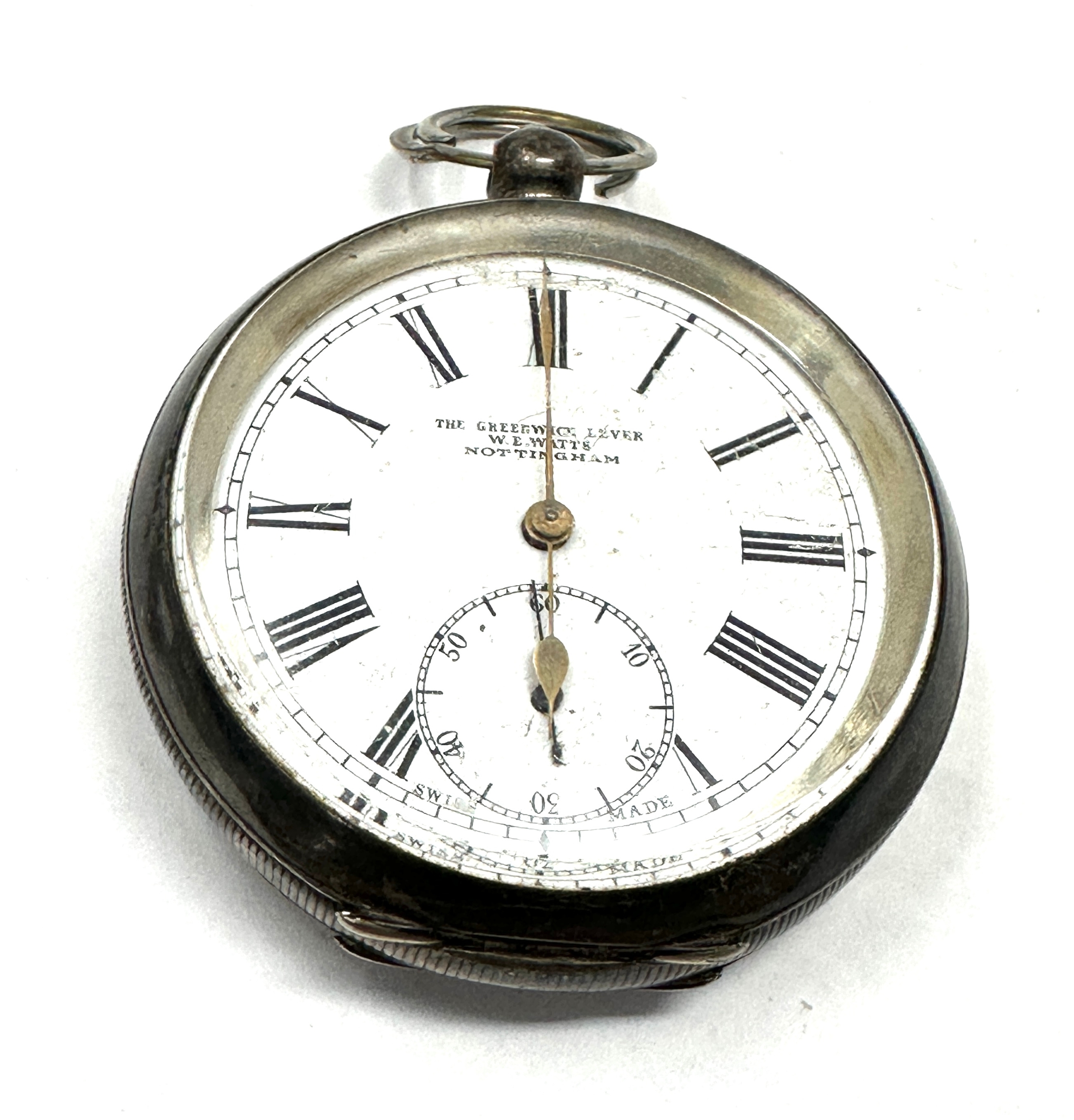Antique silver open face pocket watch the greenwich lever w.e.watts the watch is ticking weight 125g