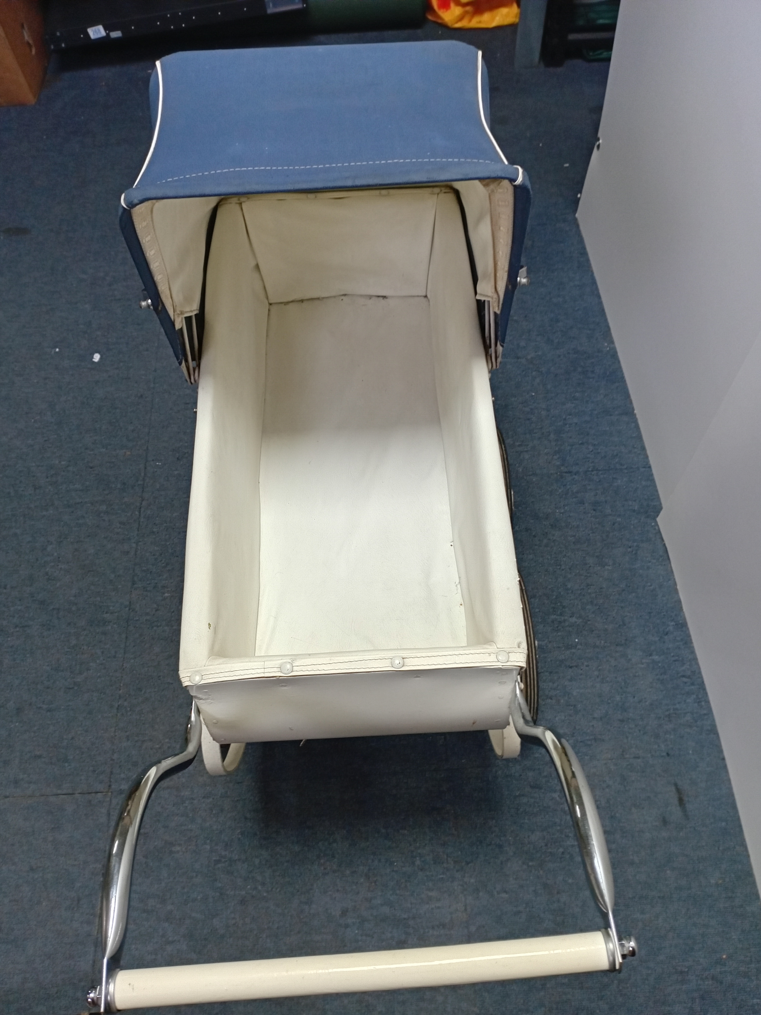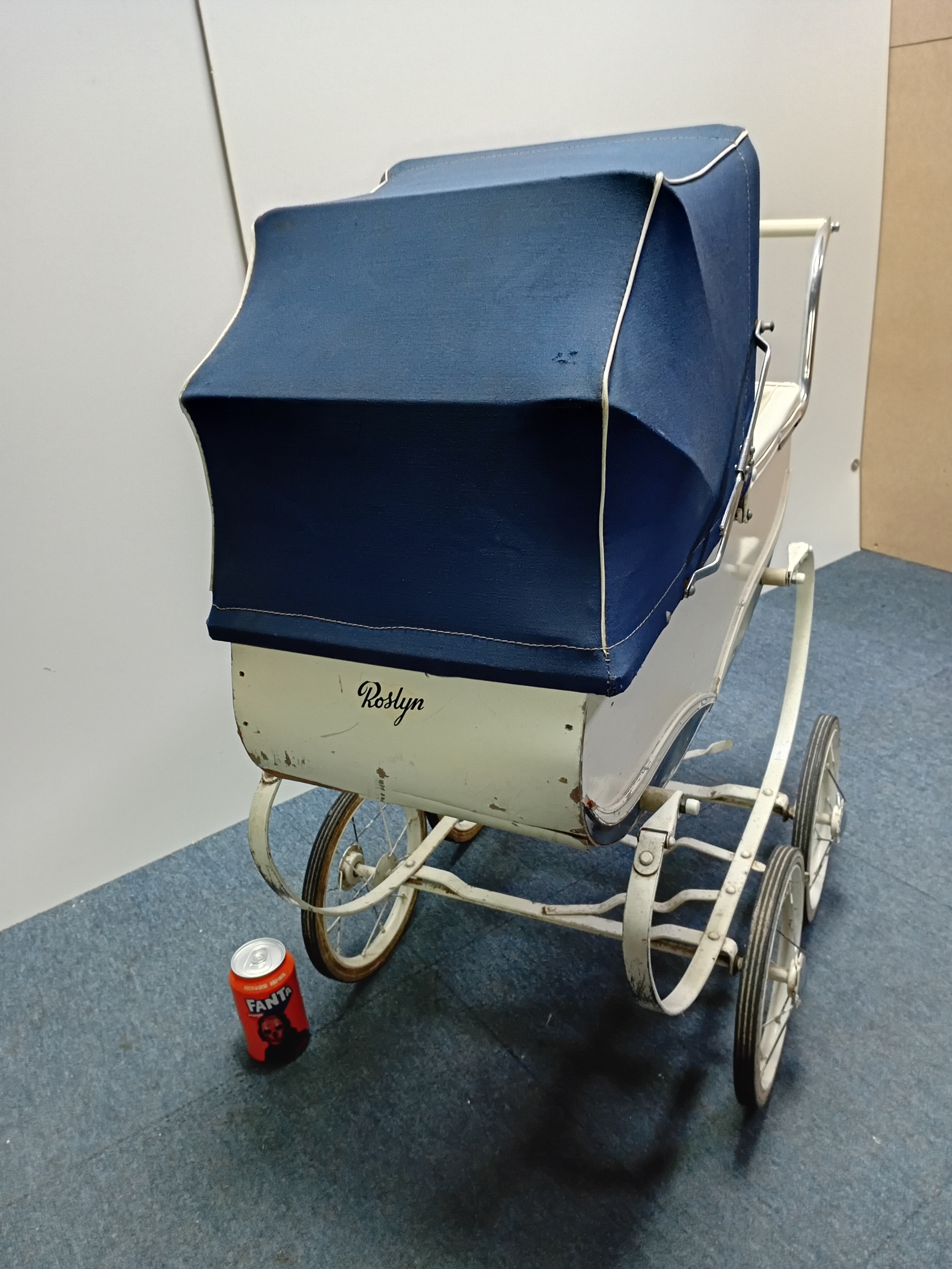 A vintage Roslyn doll stroller , made in the classic "coach-...